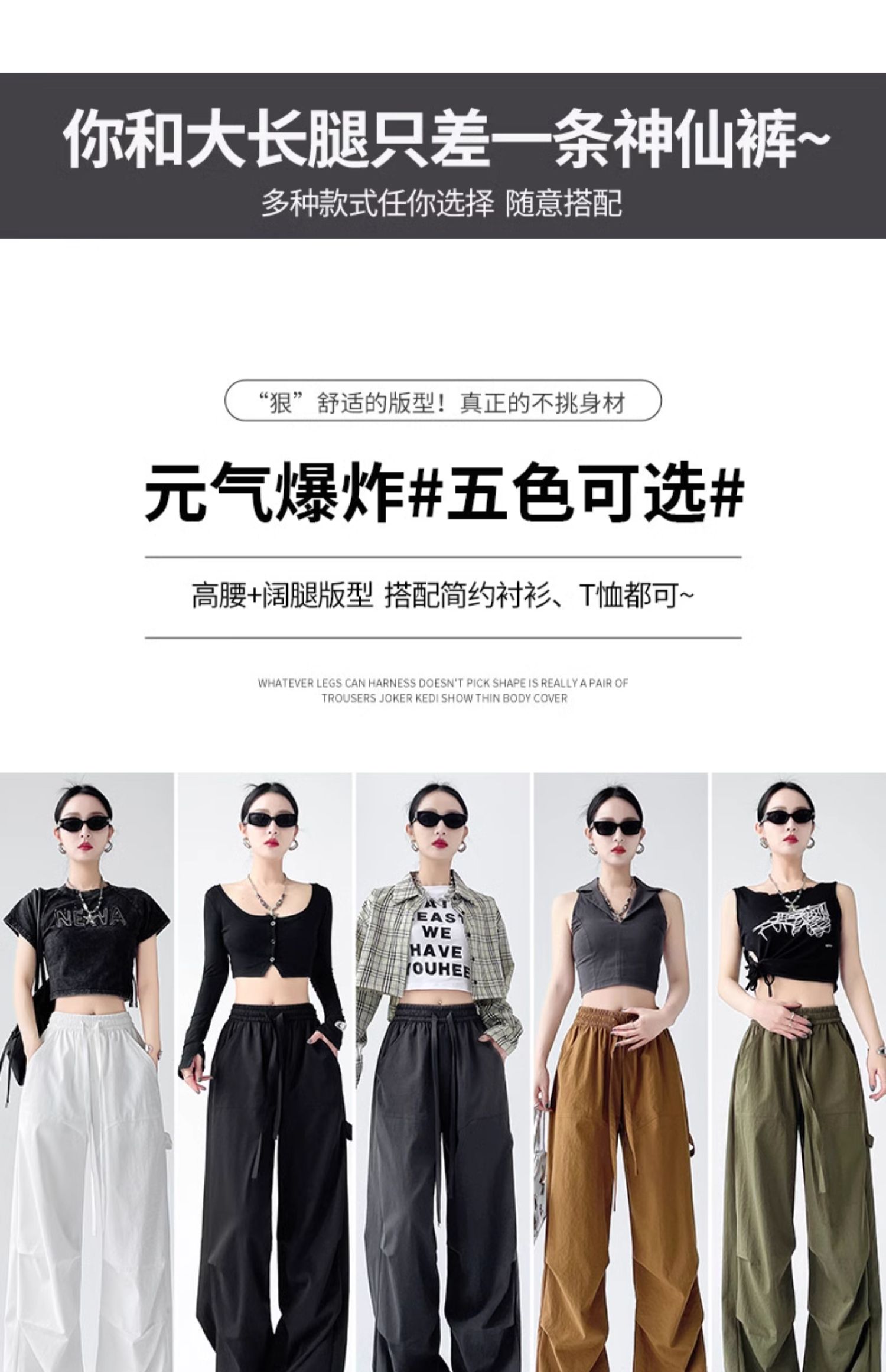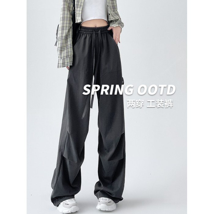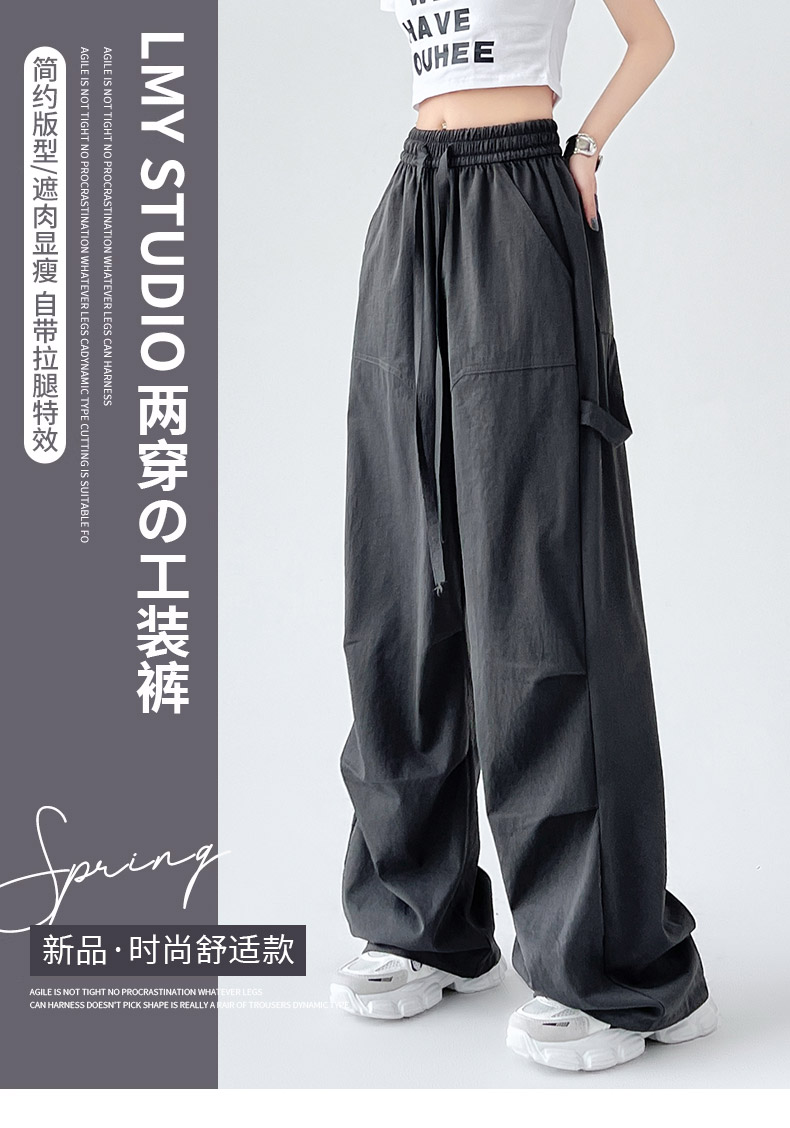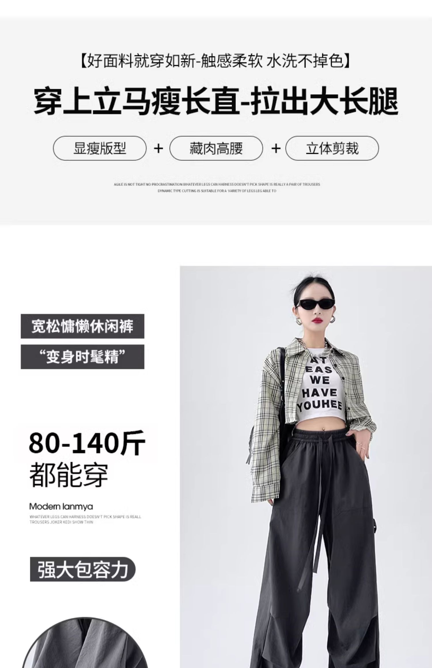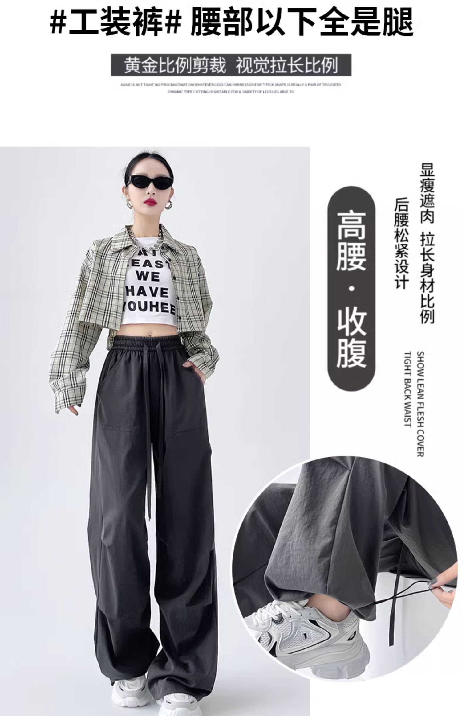 美式工裝褲女款2025新款春秋高腰寬松直筒垂感休閒運動濶腿衛褲子