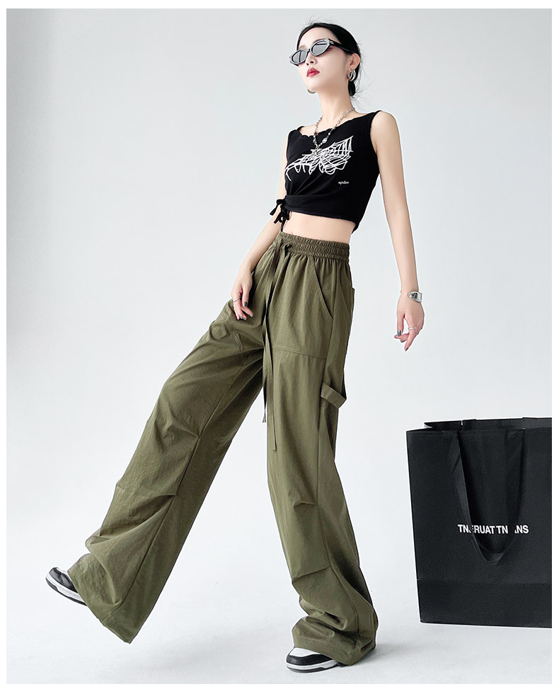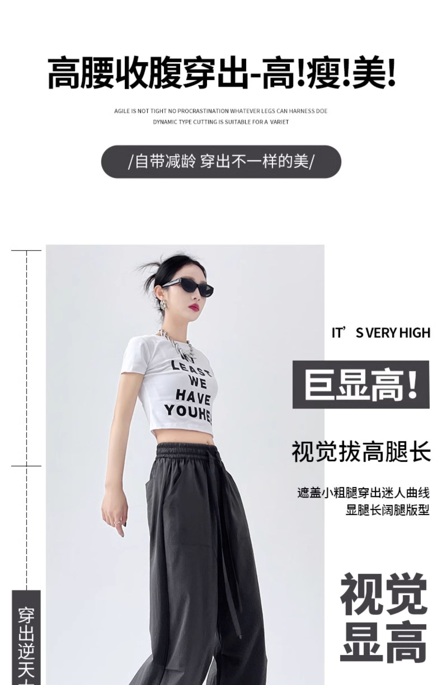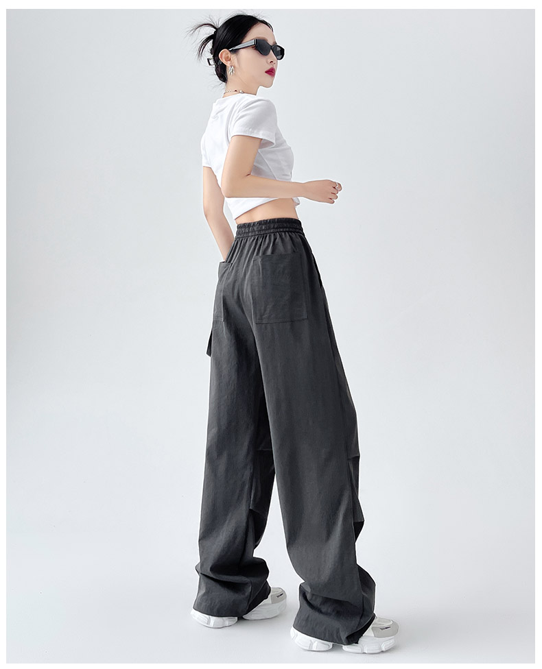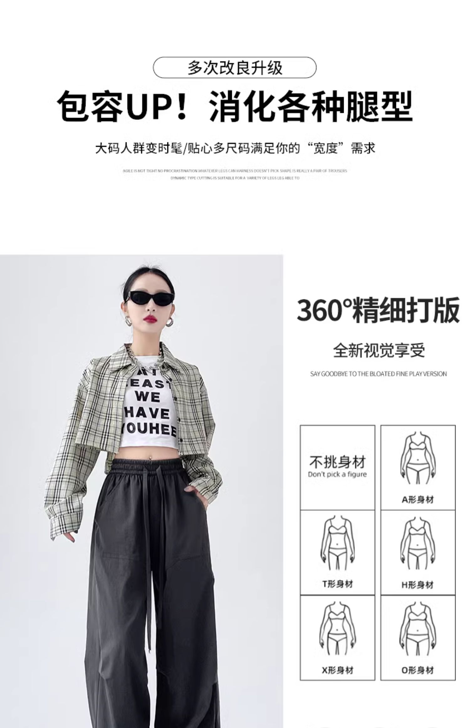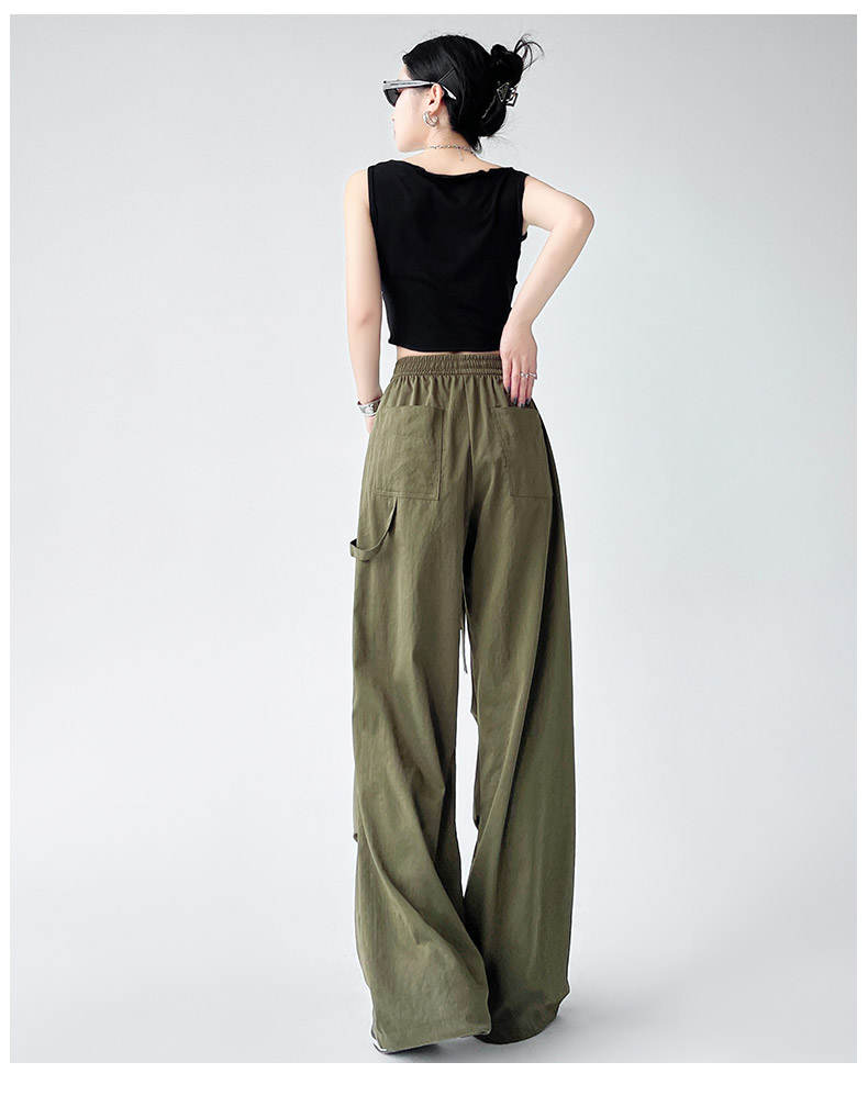 美式工裝褲女款2025新款春秋高腰寬松直筒垂感休閒運動濶腿衛褲子