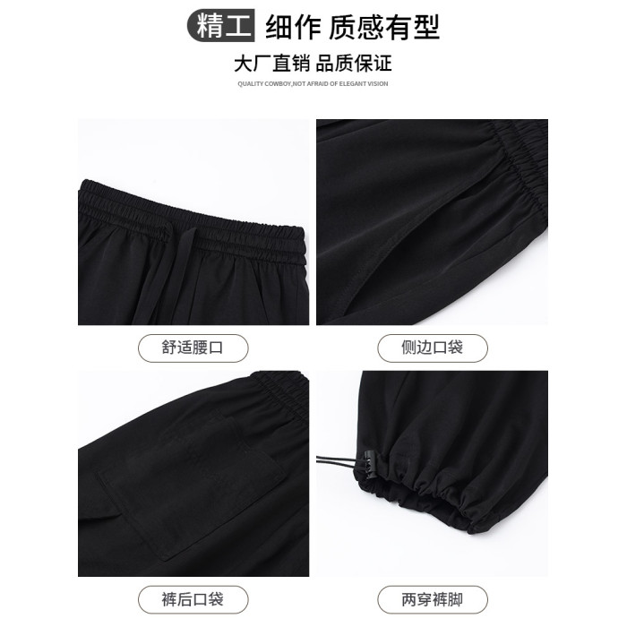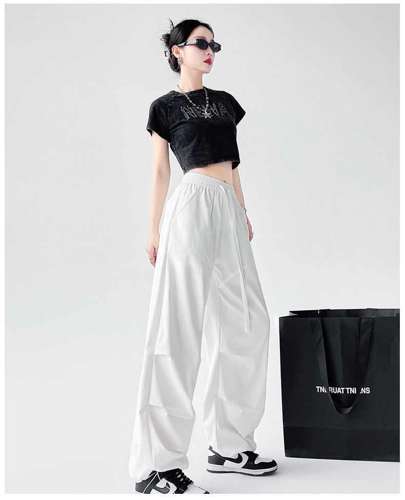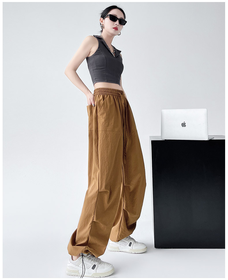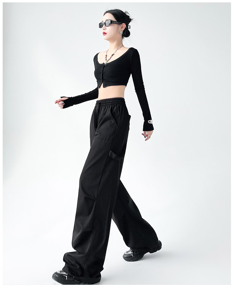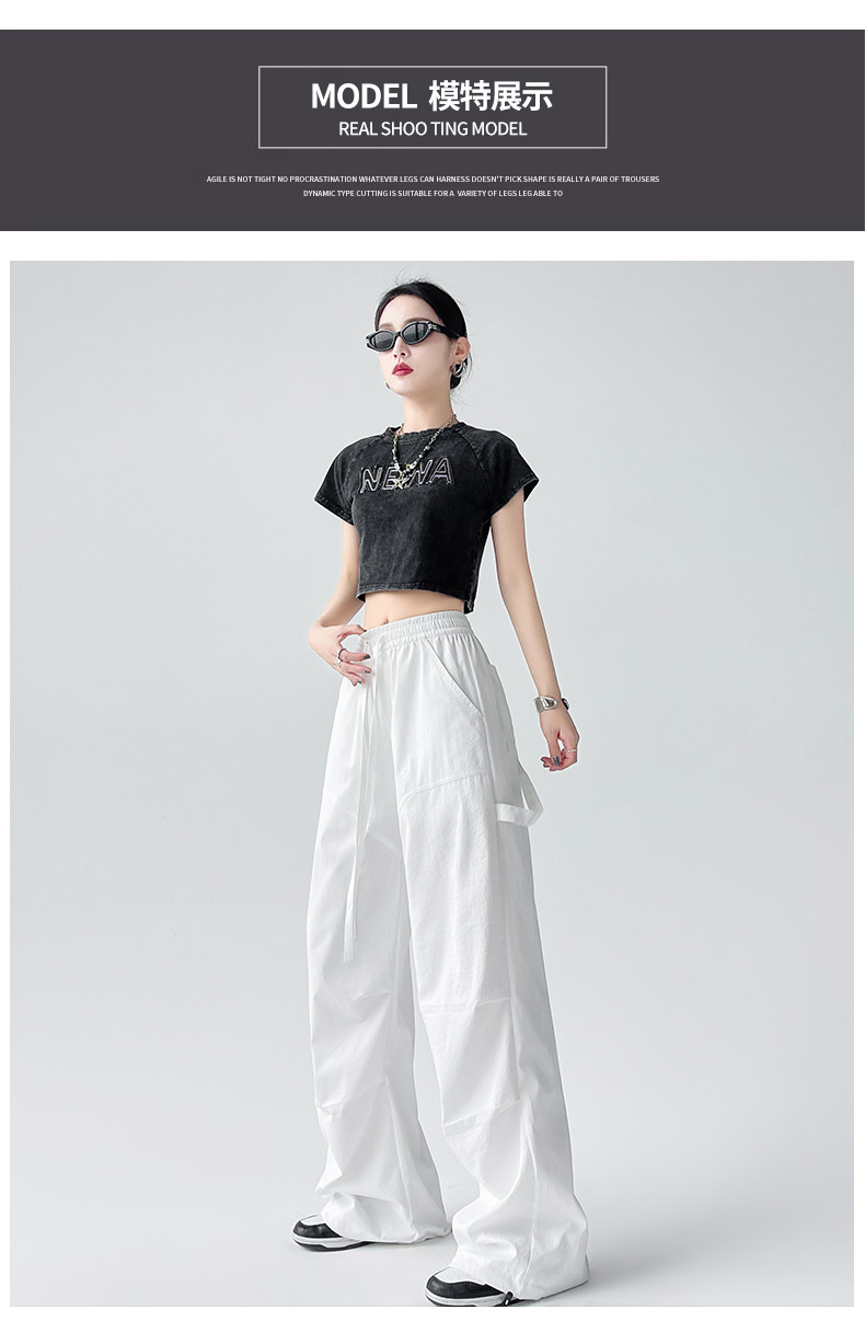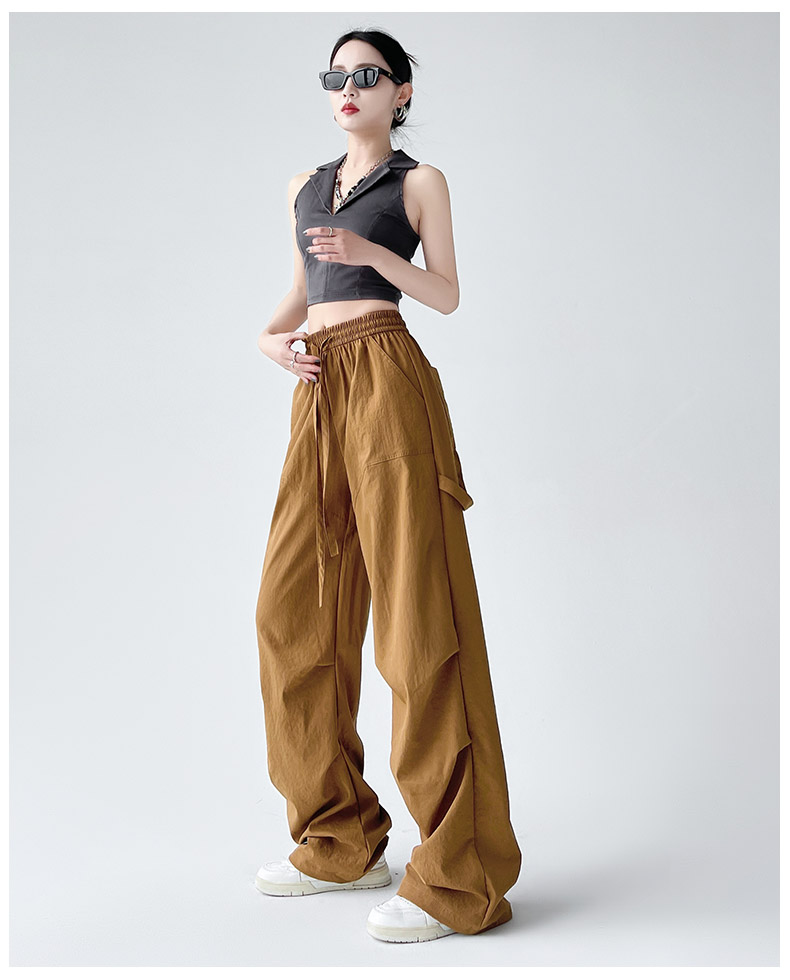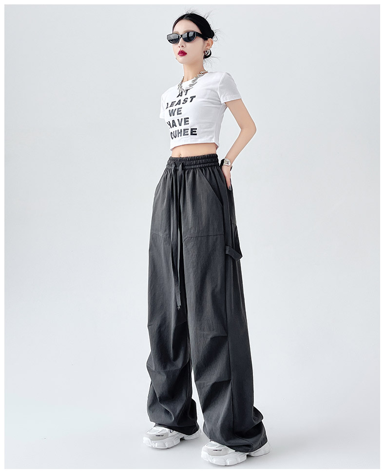美式工裝褲女款2025新款春秋高腰寬松直筒垂感休閒運動濶腿衛褲子