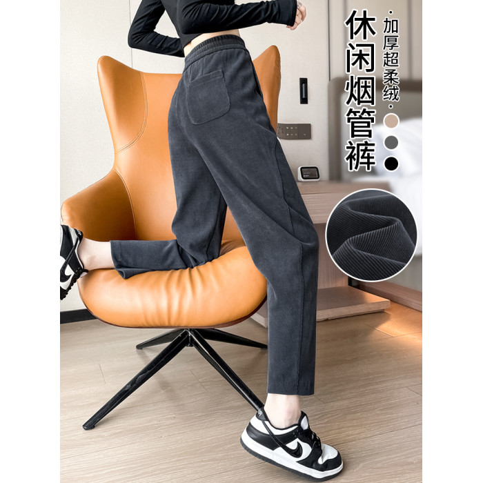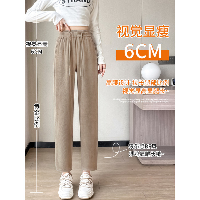 九分菸管褲女春秋薄款2024新款小個子褲子顯瘦雪尼爾休閒直筒衛褲