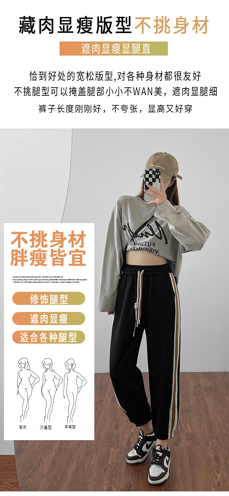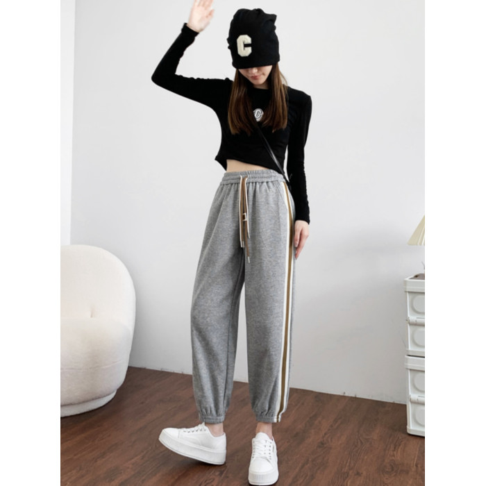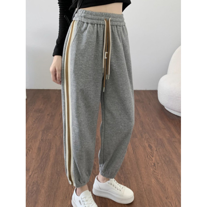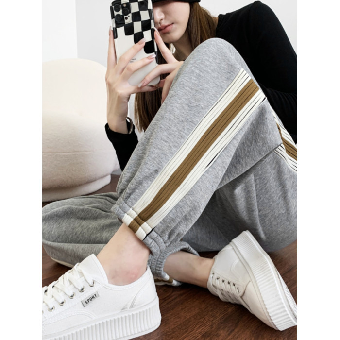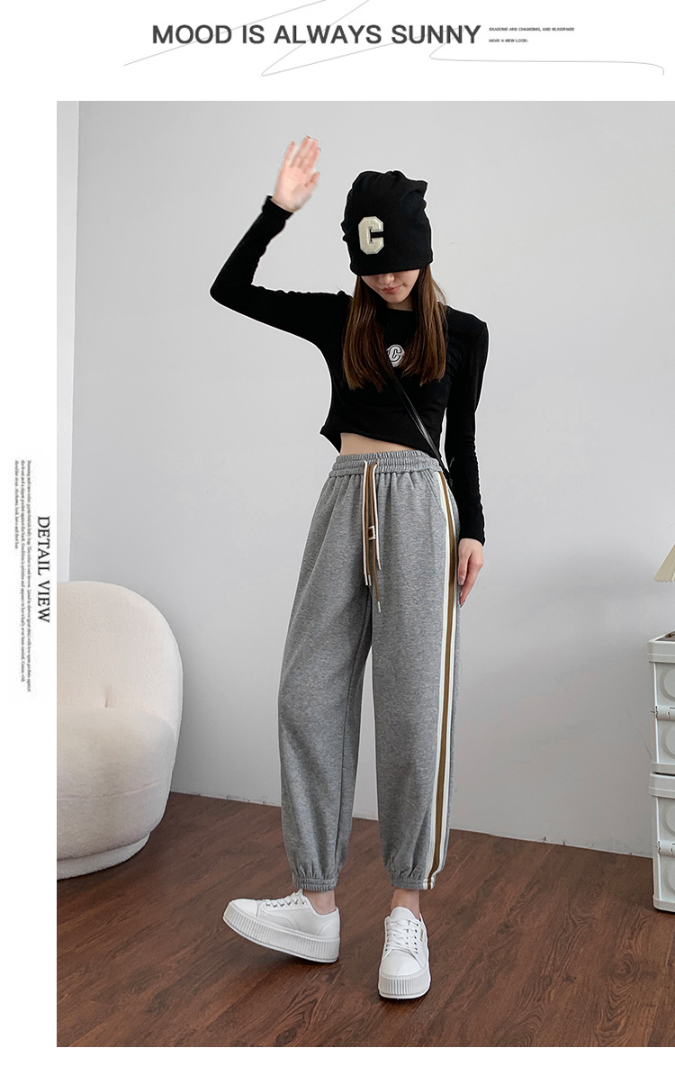 運動褲女春秋款束腳2025新款秋冬灰色拼接寬松顯瘦小個子休閒衛褲