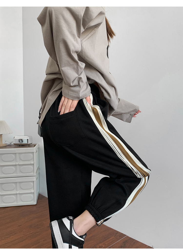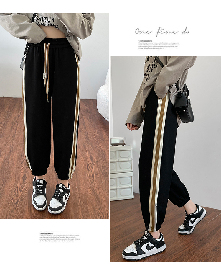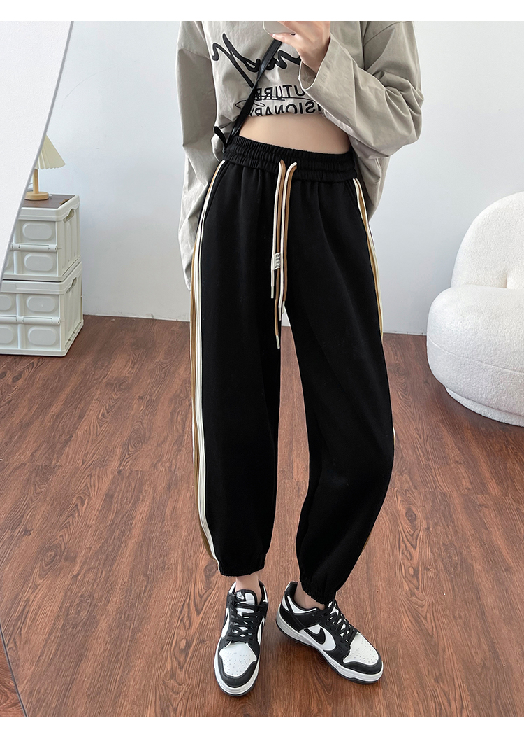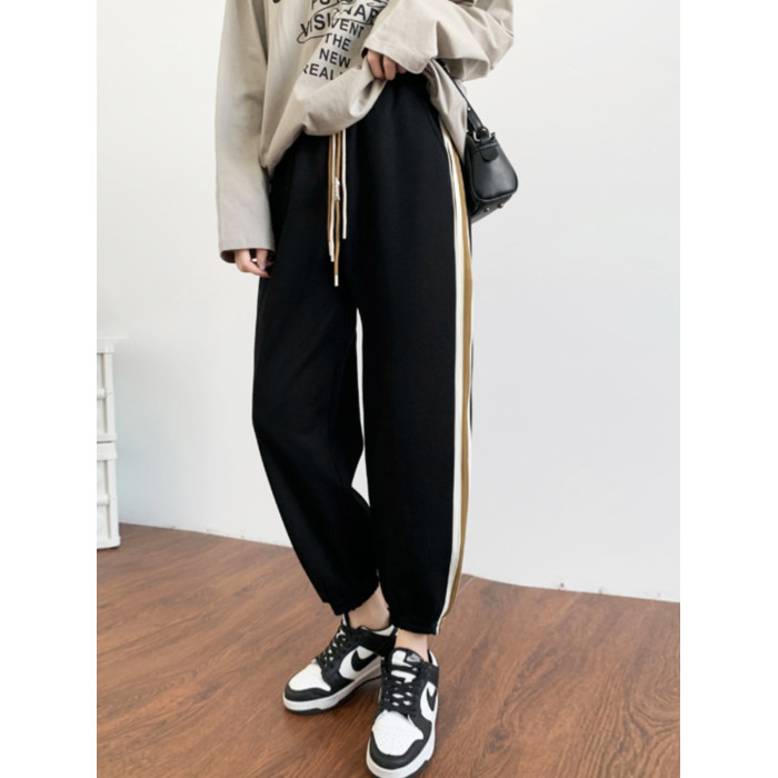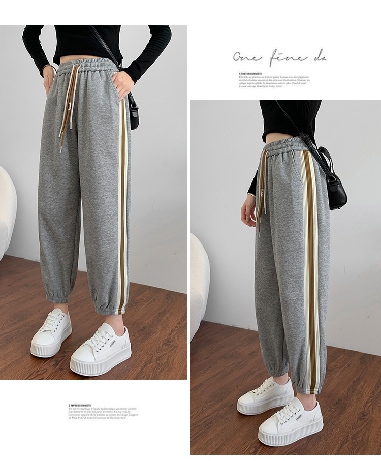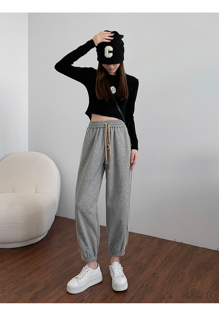 運動褲女春秋款束腳2025新款秋冬灰色拼接寬松顯瘦小個子休閒衛褲
