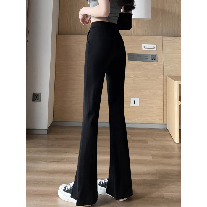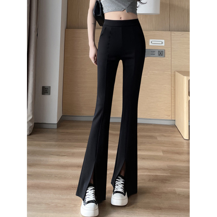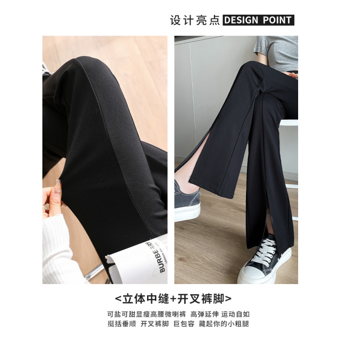 前開叉微喇褲子女春秋高腰顯瘦大碼胖mm秋冬加絨西褲垂感喇叭長褲