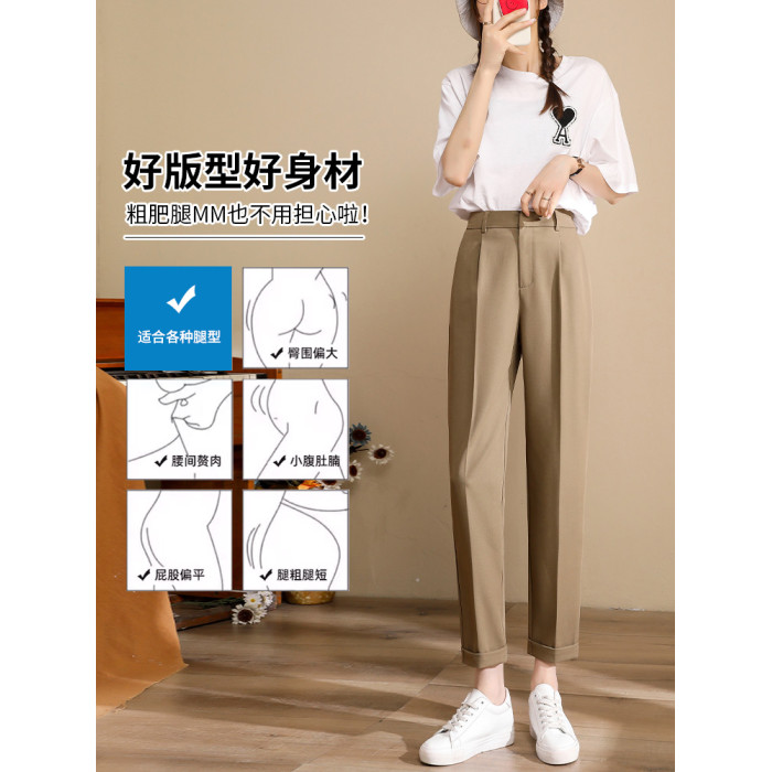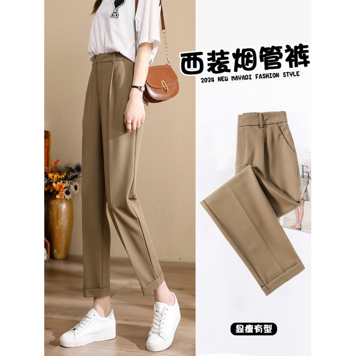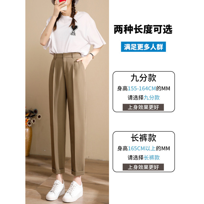 九分西裝褲女夏季薄款2025冰絲菸管褲小個子咖色小腳褲卡其色西褲