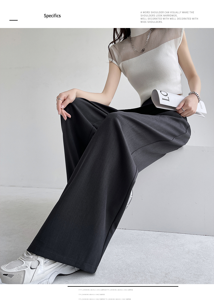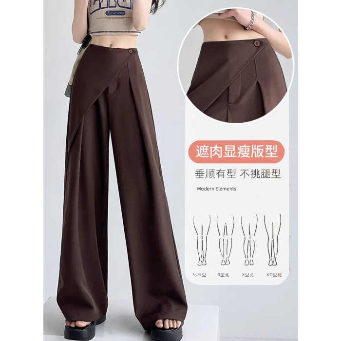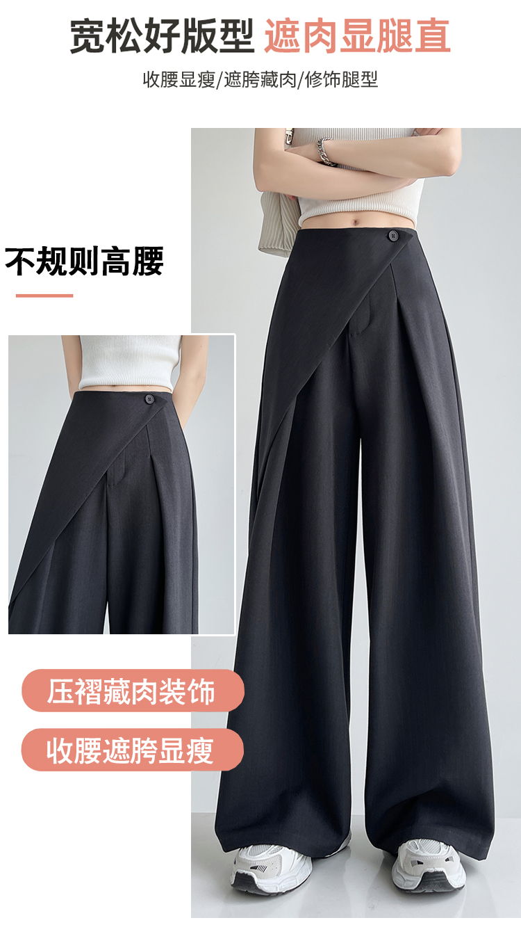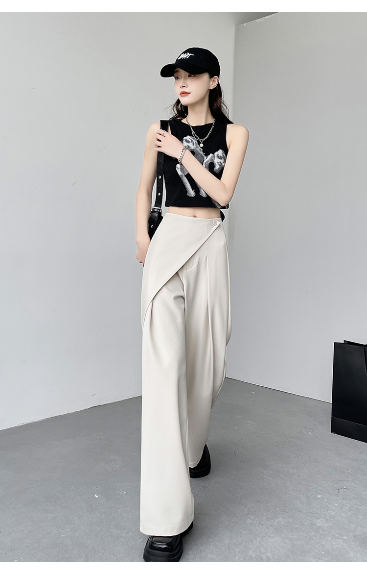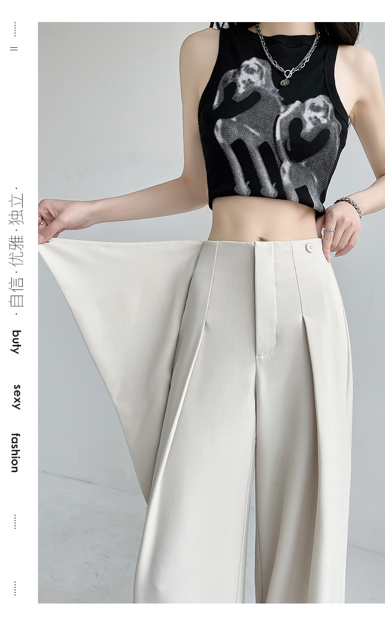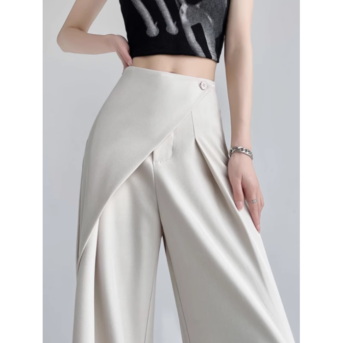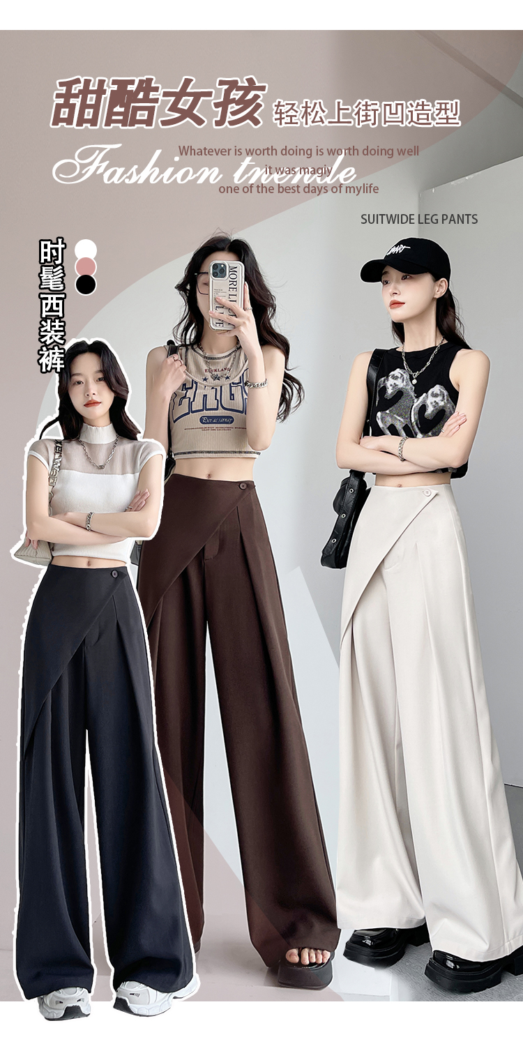 白色兩片式設計西裝褲女夏新款高腰垂感直筒休閒褲寬松濶腿拖地褲