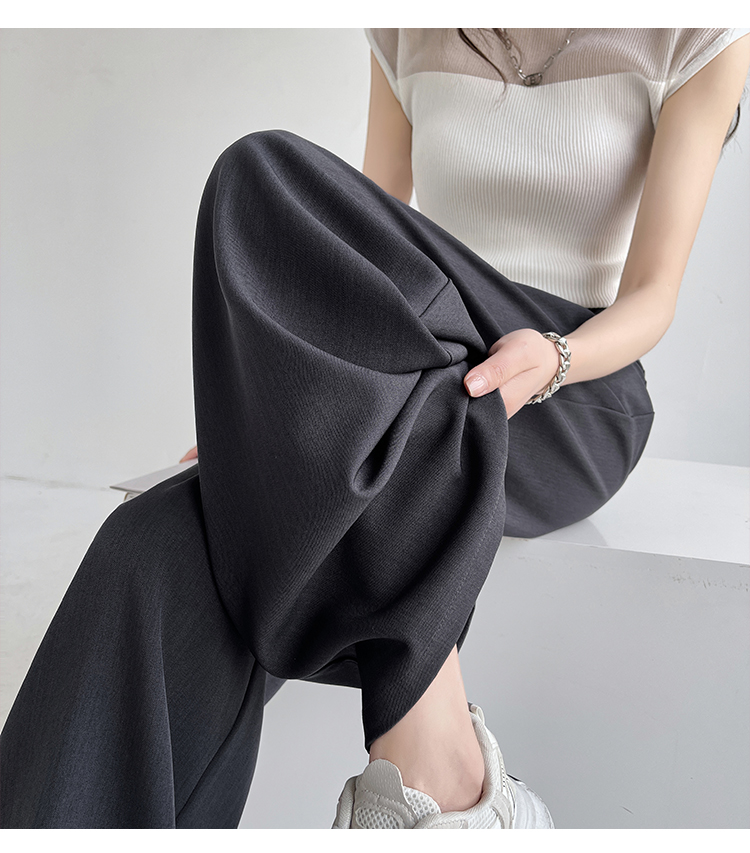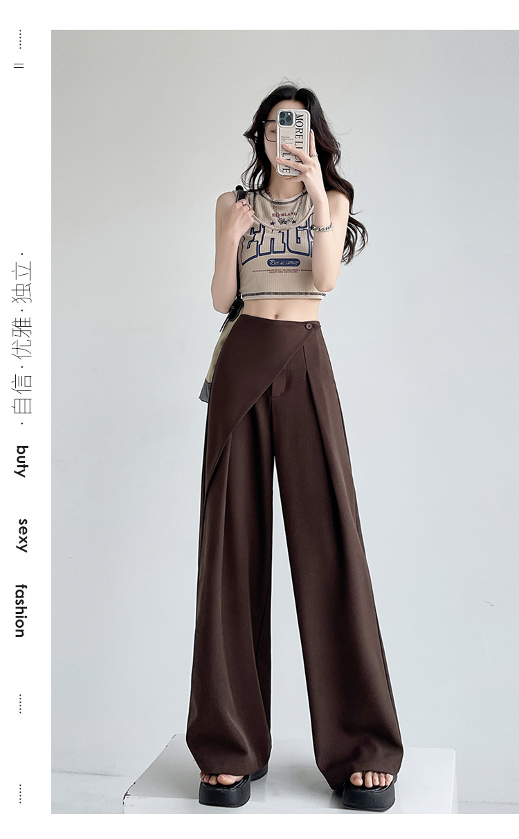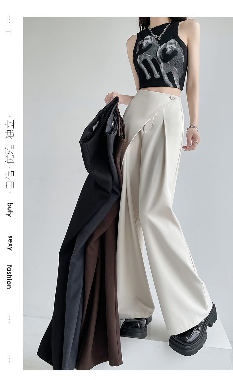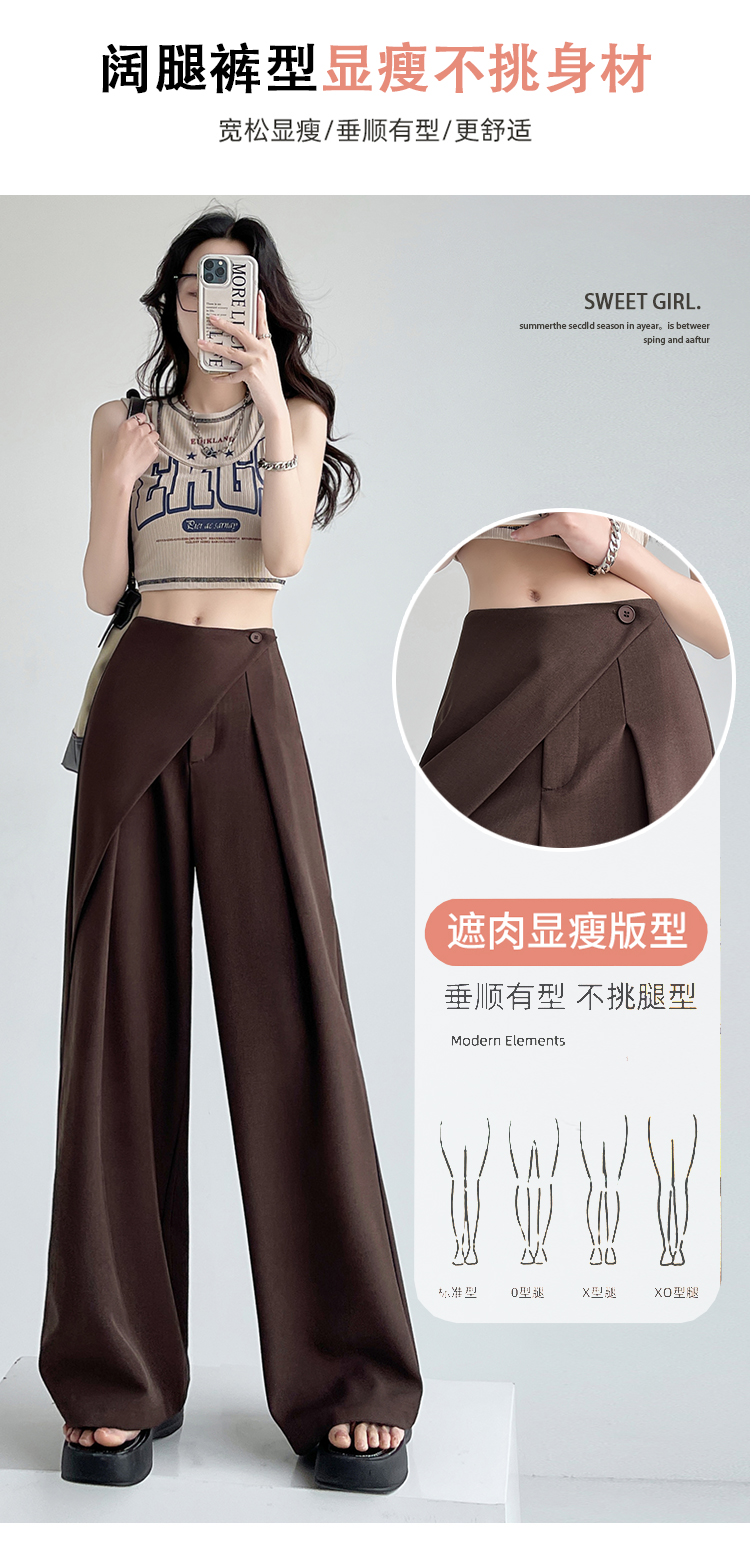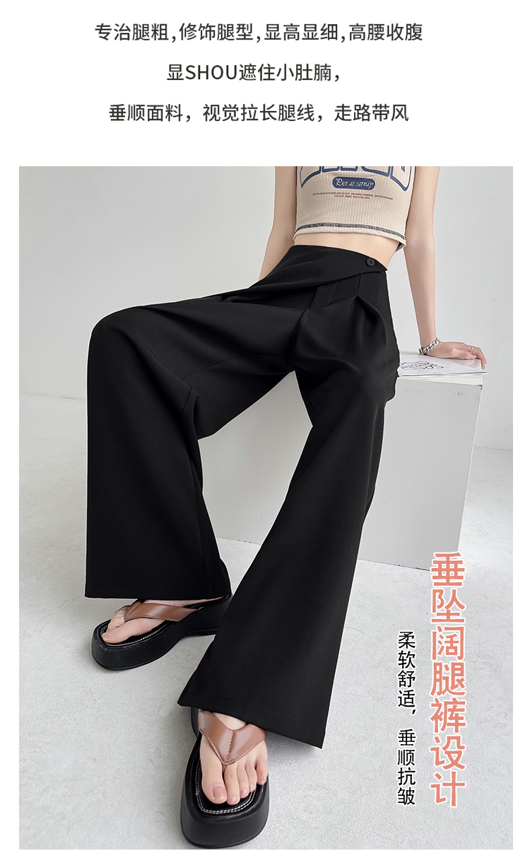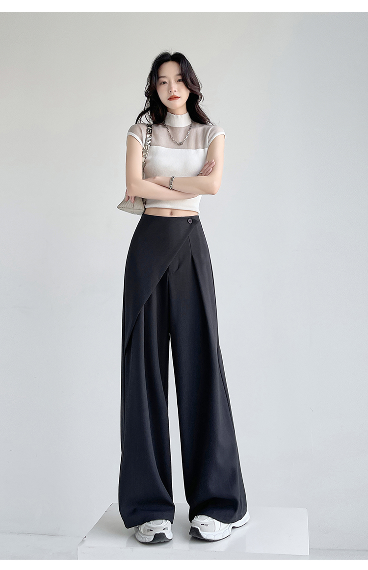 白色兩片式設計西裝褲女夏新款高腰垂感直筒休閒褲寬松濶腿拖地褲