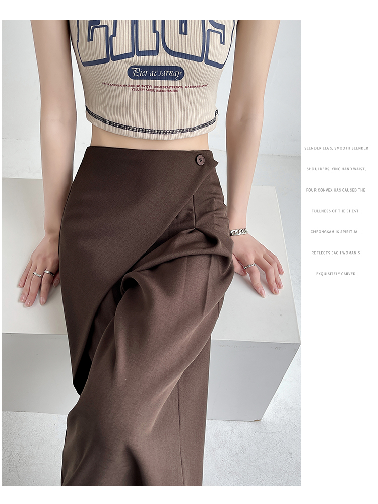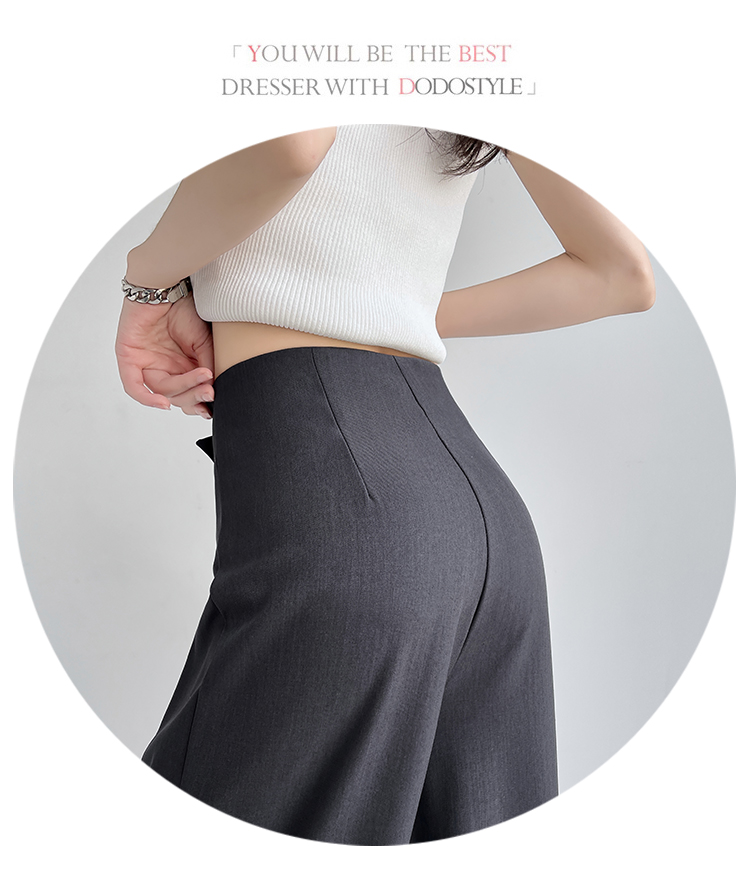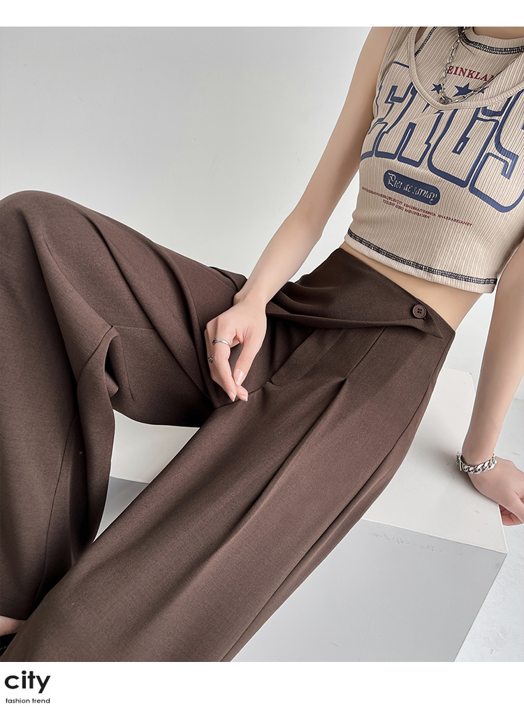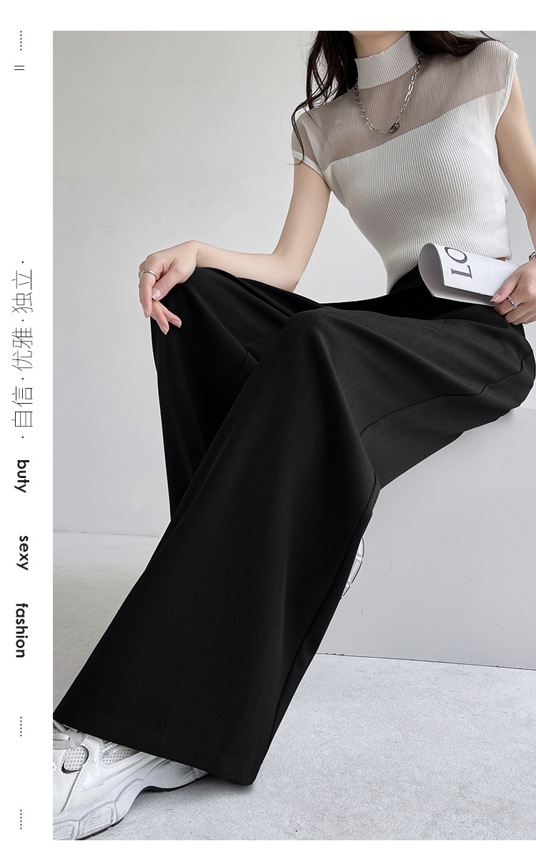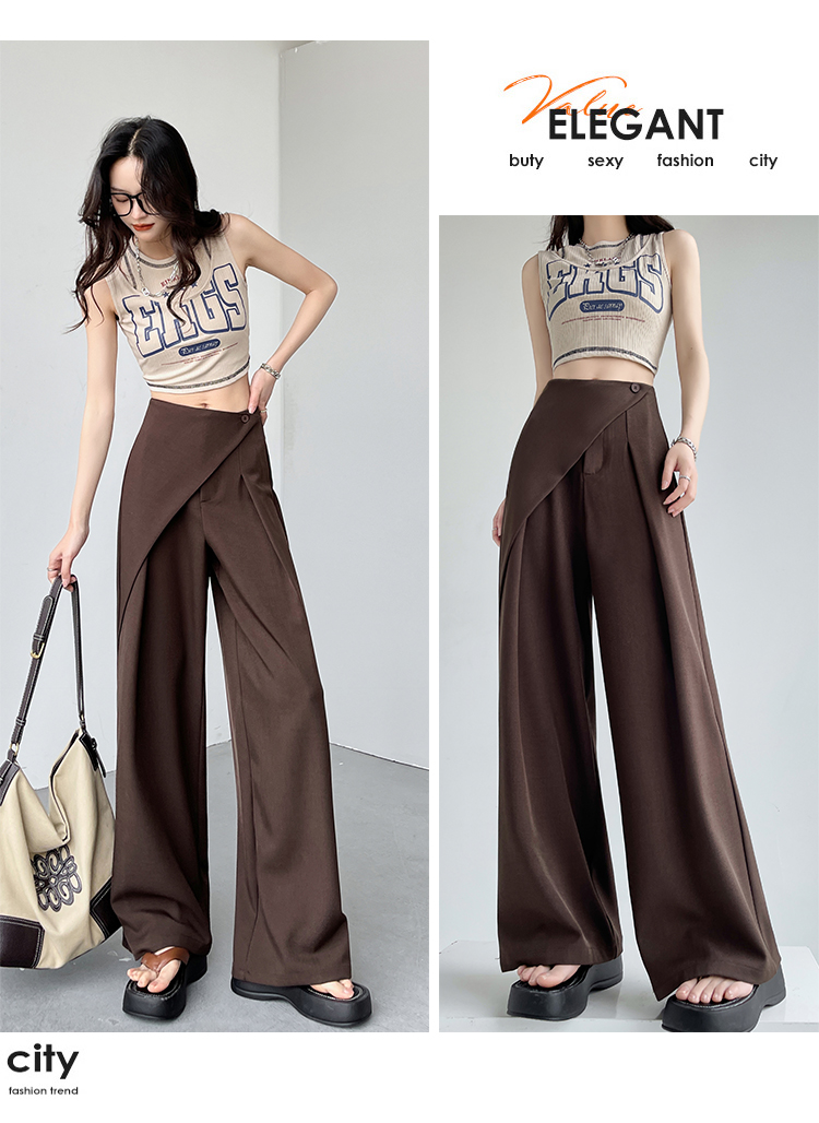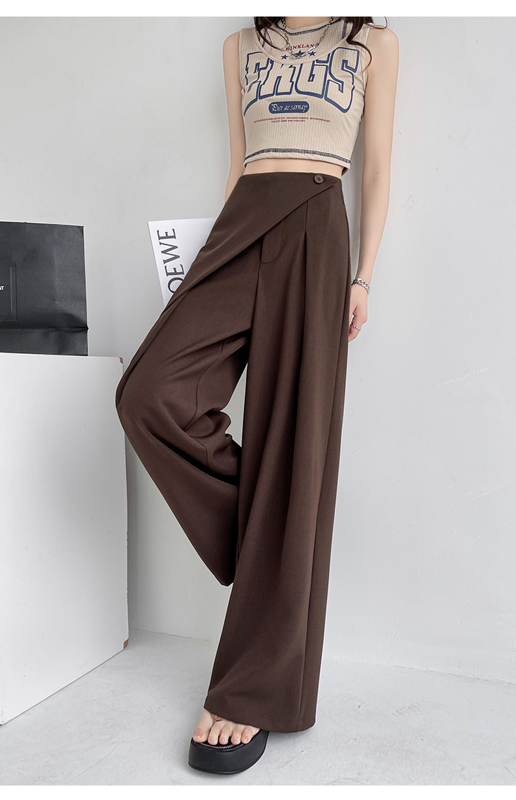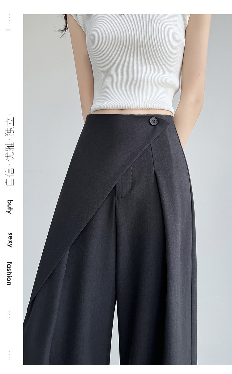 白色兩片式設計西裝褲女夏新款高腰垂感直筒休閒褲寬松濶腿拖地褲