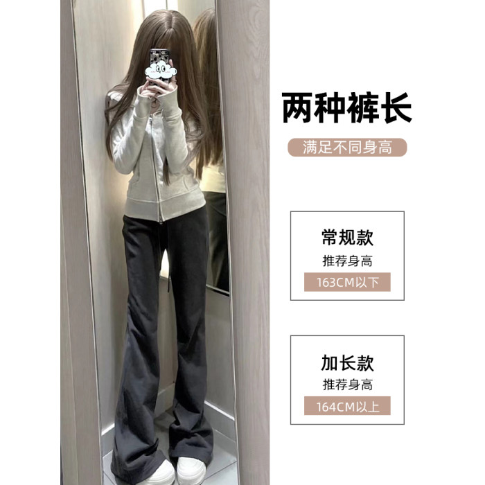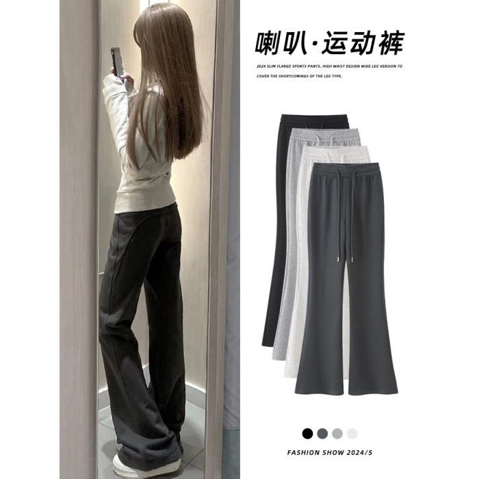 灰色運動褲女秋季2025新款高腰顯瘦直筒褲夏季美式休閒微喇衛褲子