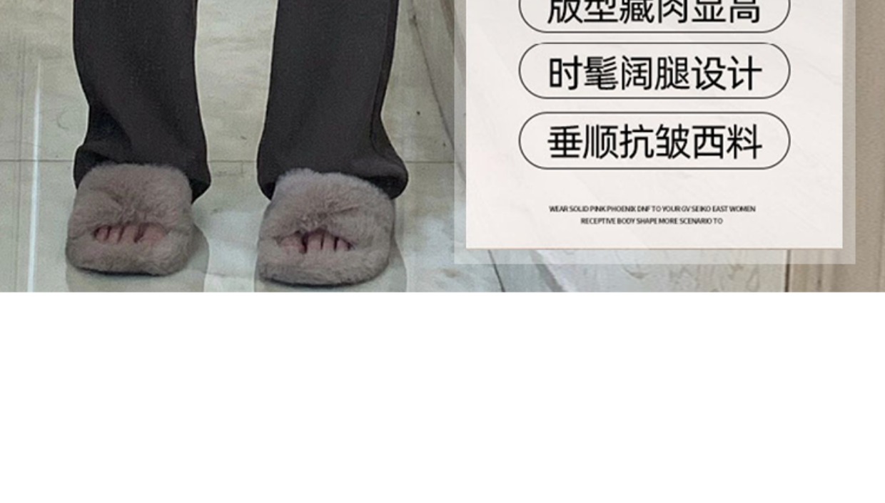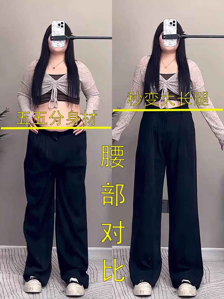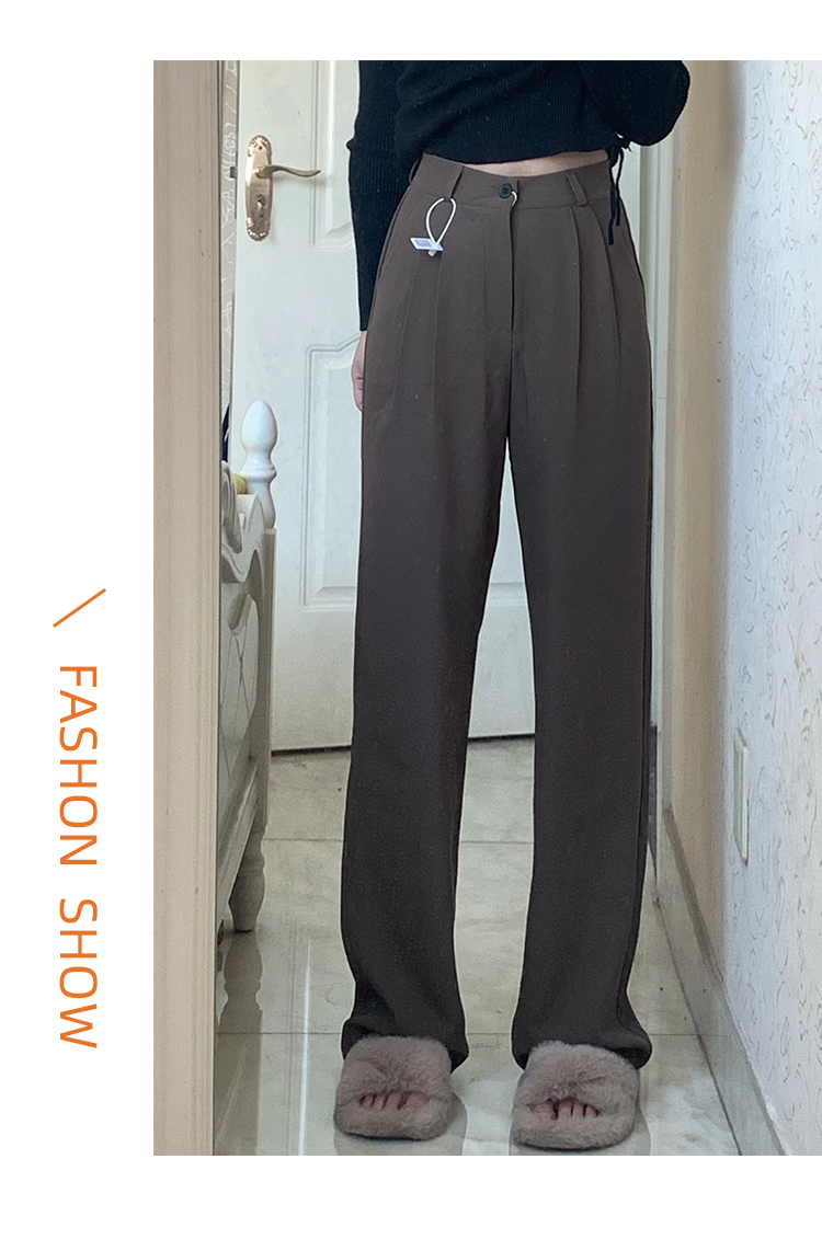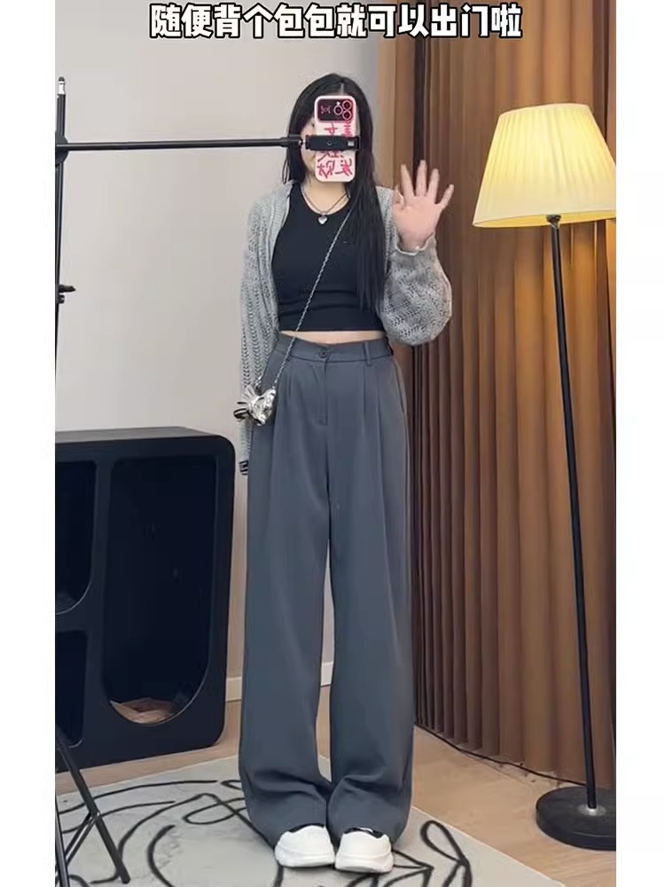 灰色西裝褲秋季大碼女褲子胖mm梨形身材不顯胯高腰垂感休閒濶腿褲