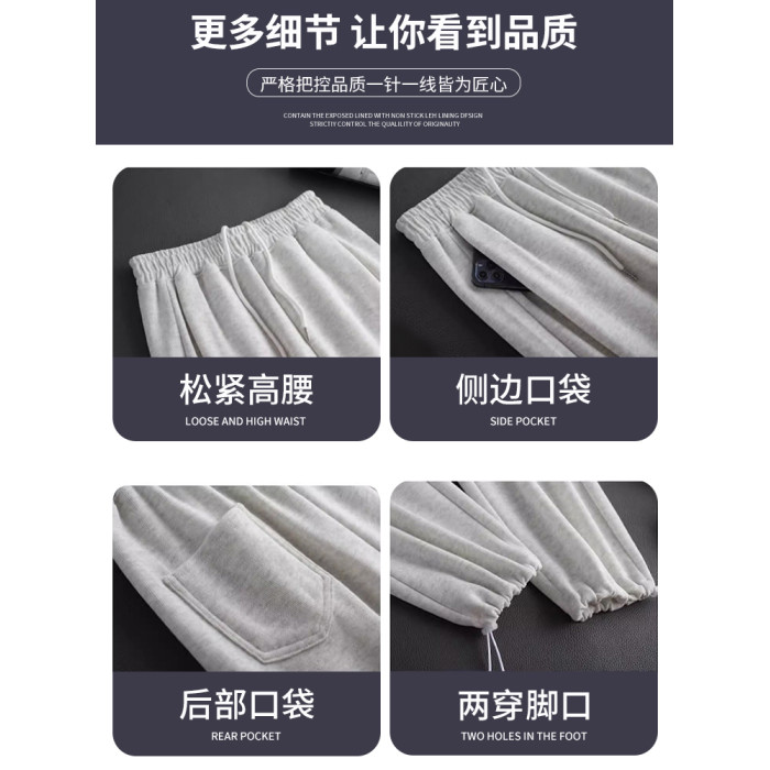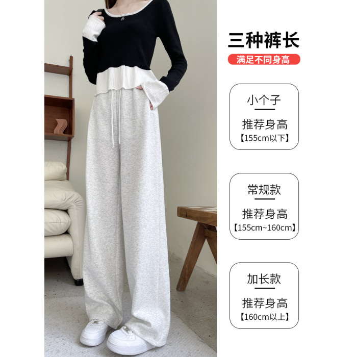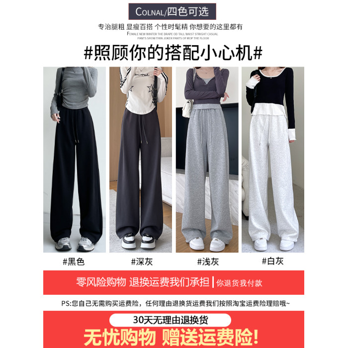 粉色運動褲子女春秋款2024新款寬松直筒濶腿褲小個子束腳休閒衛褲