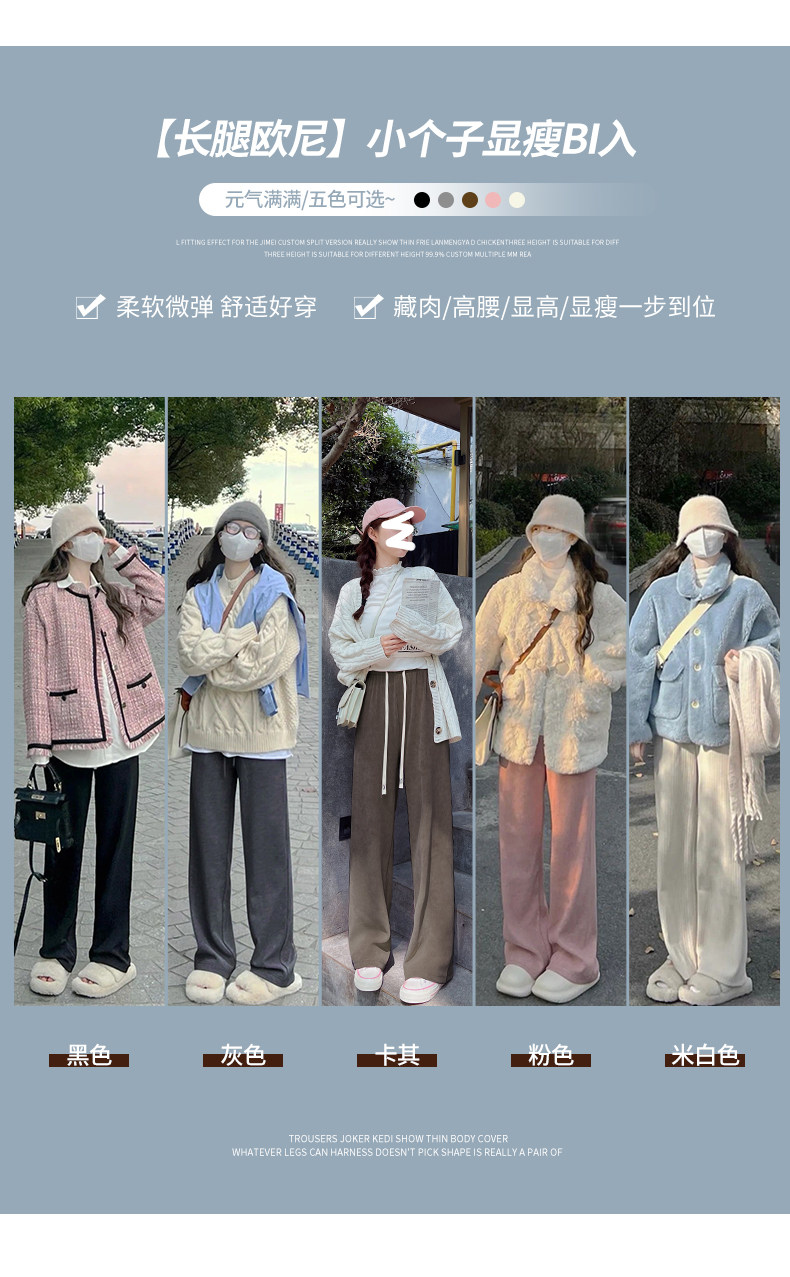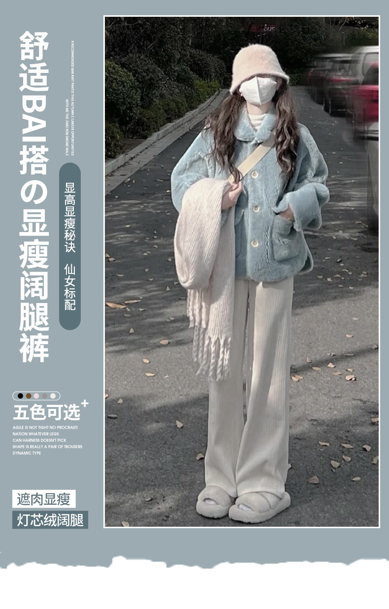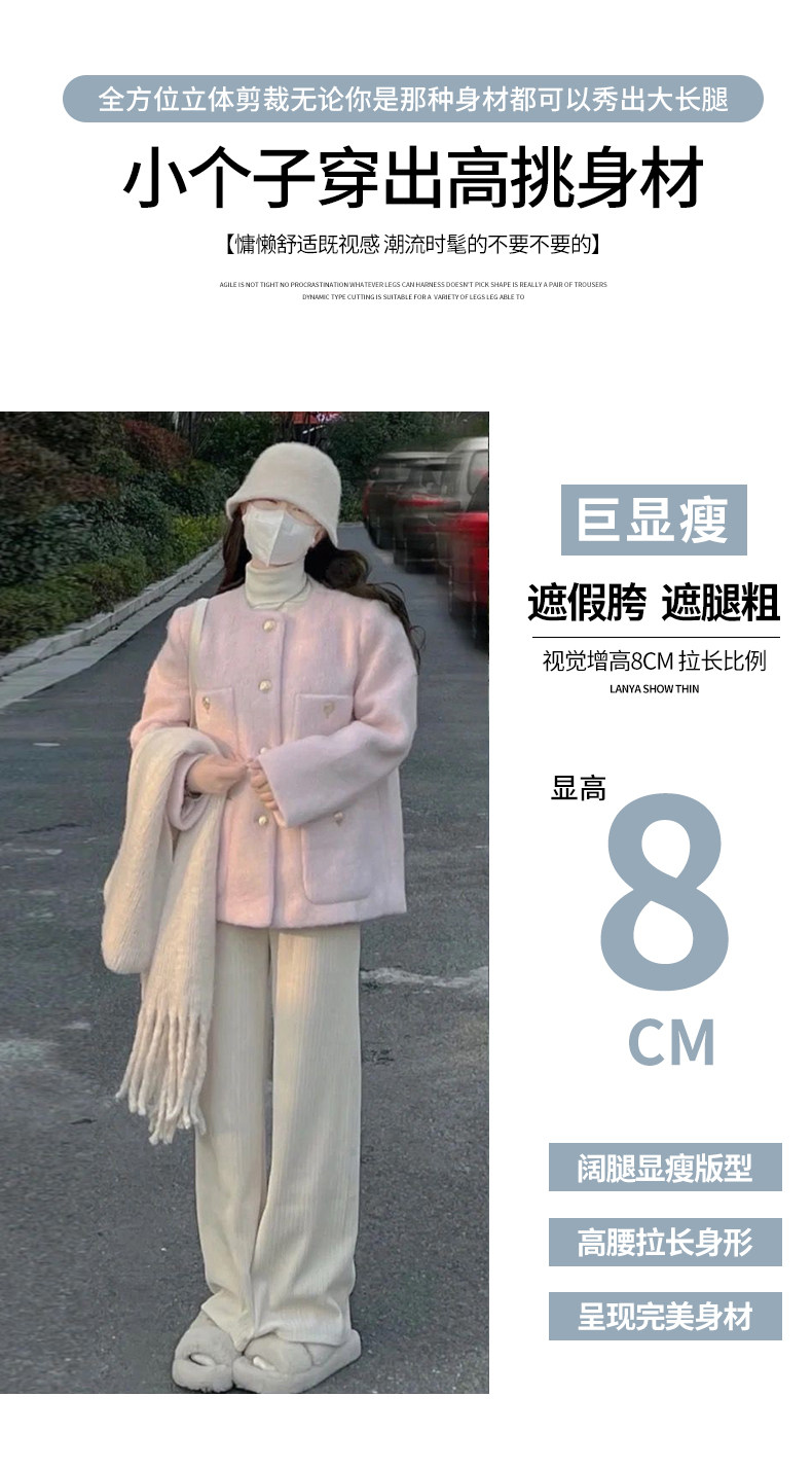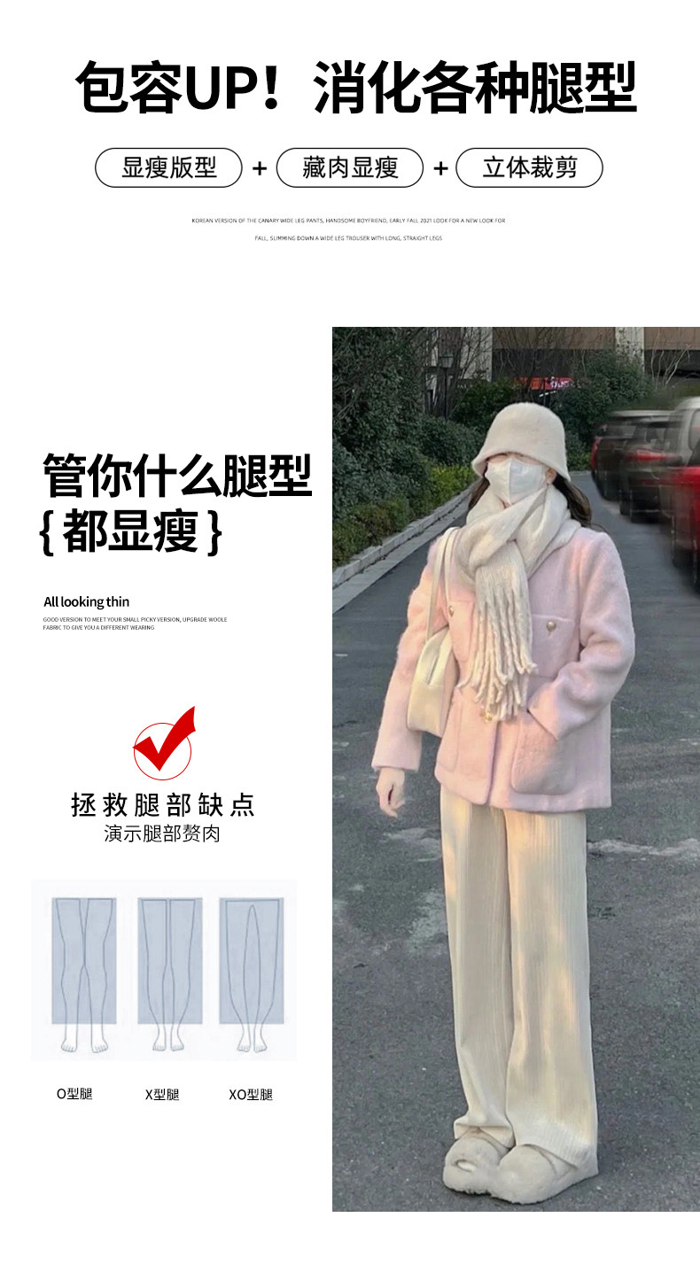 米白色燈芯絨濶腿褲女春秋冬2025新款垂感加絨小個子雪尼爾直筒褲