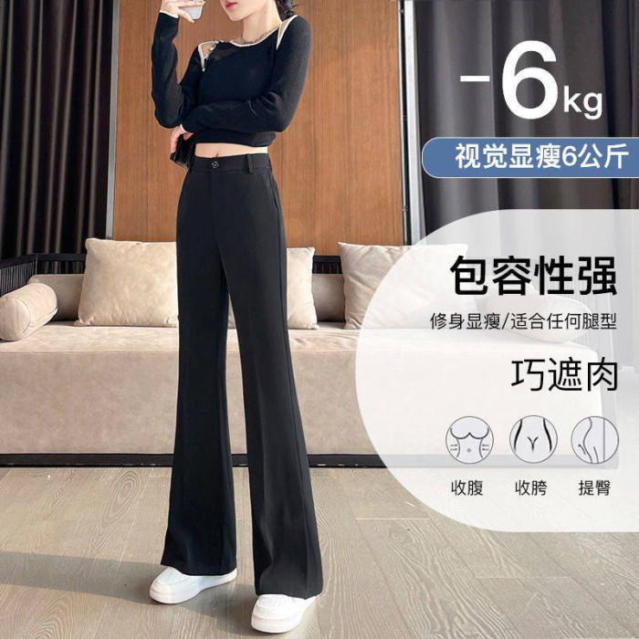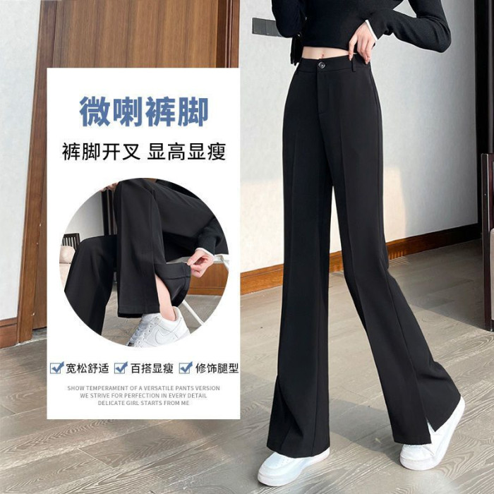 大碼胖妹妹開叉微喇褲女2025春夏季新款高腰寬松百搭休閒西裝褲子