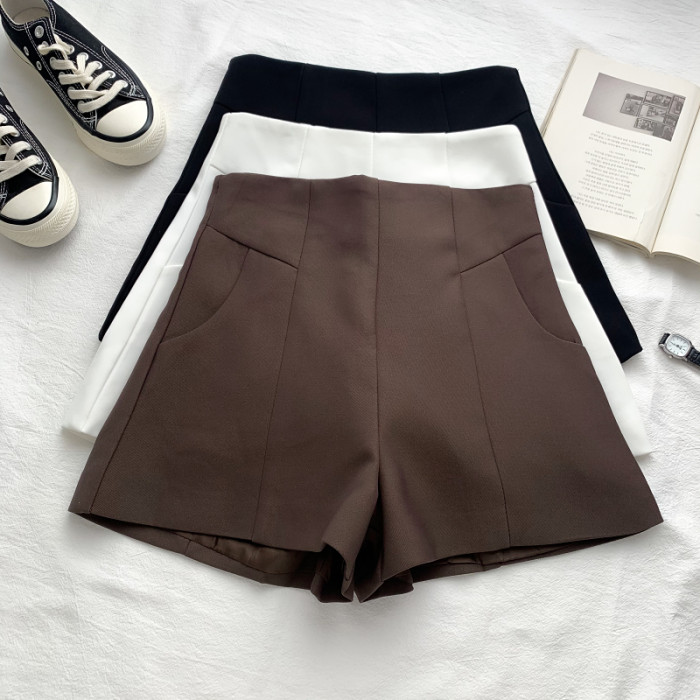 2025夏季新款韓版氣質簡約百搭高腰顯瘦西裝短褲濶腿褲休閒褲女