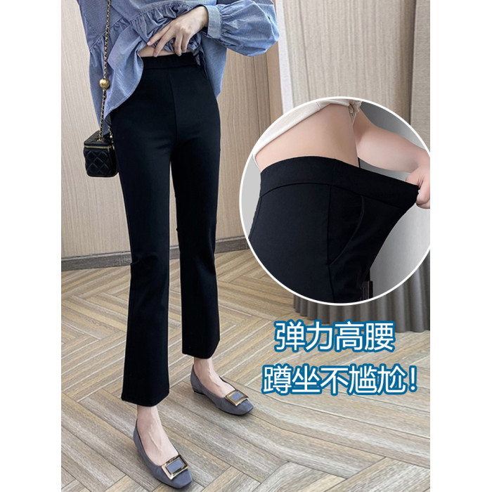 高腰顯瘦喇叭褲女黑色秋冬加絨松緊腰女褲垂感修身微喇九分西裝褲