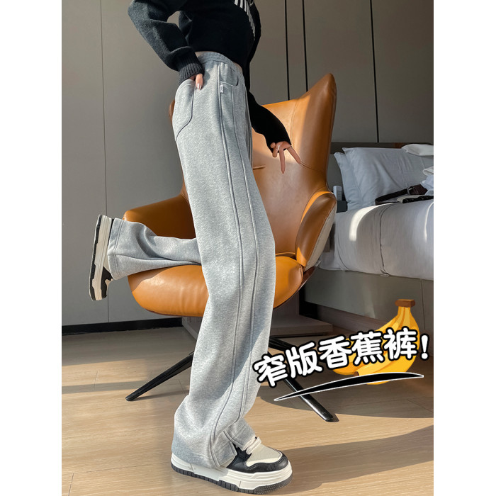 窄版香蕉濶腿褲女夏季薄款衛褲休閒2025新款高個子加長直筒運動褲