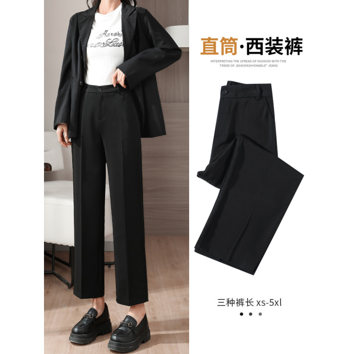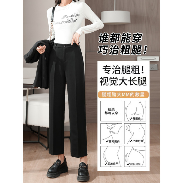直筒西裝褲女秋冬寬松高腰顯瘦垂感小個子九分黑色褲子職業菸管褲