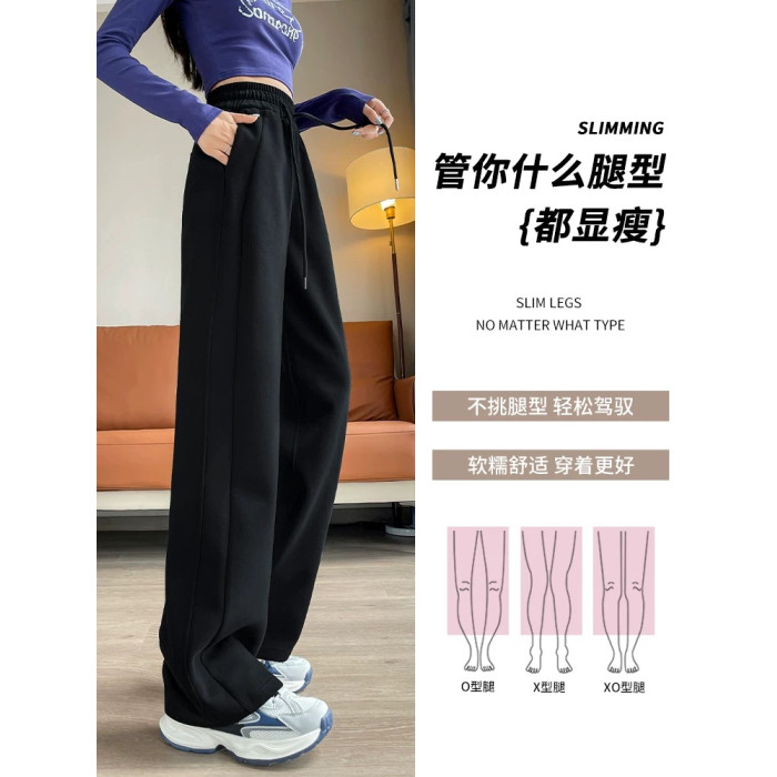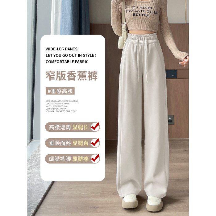 運動褲女春秋冬季加絨2025新款直筒香蕉衛褲窄版休閒加厚濶腿褲子