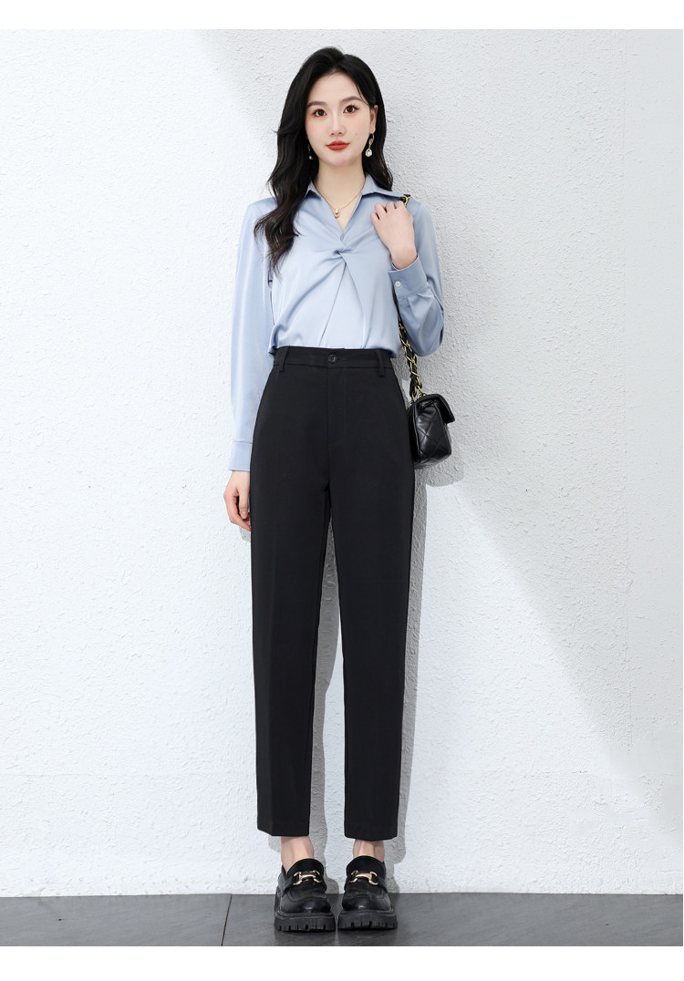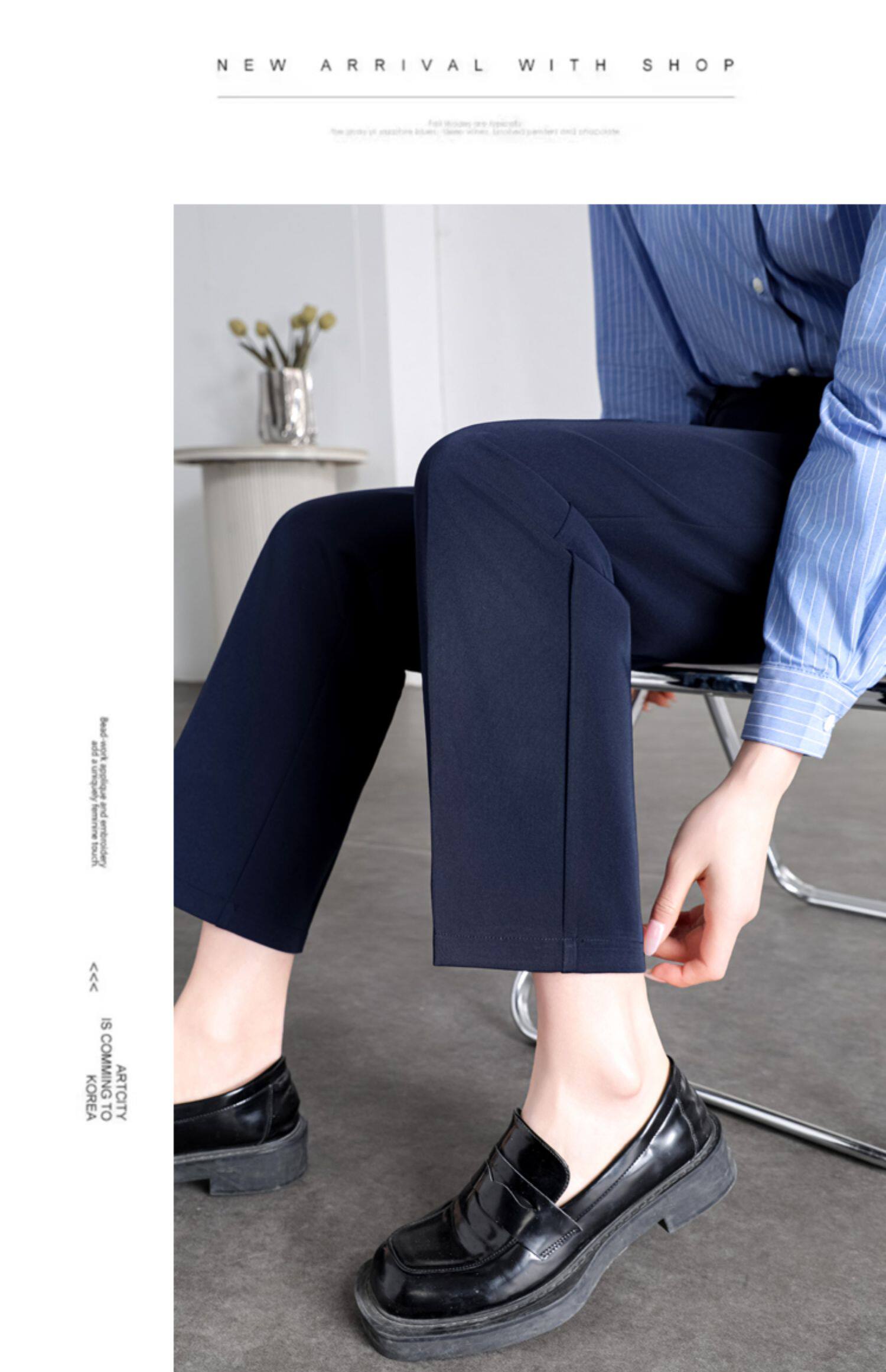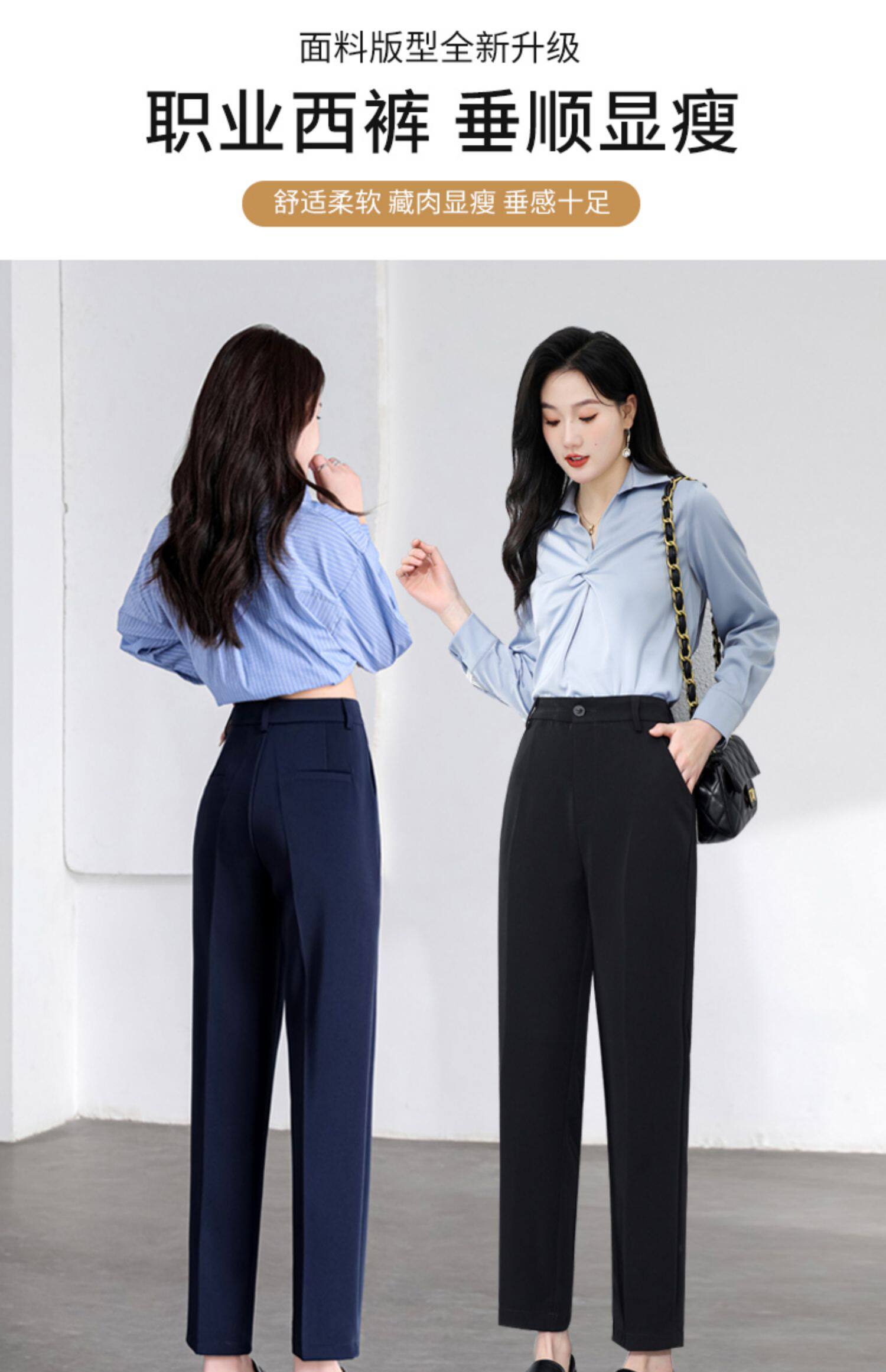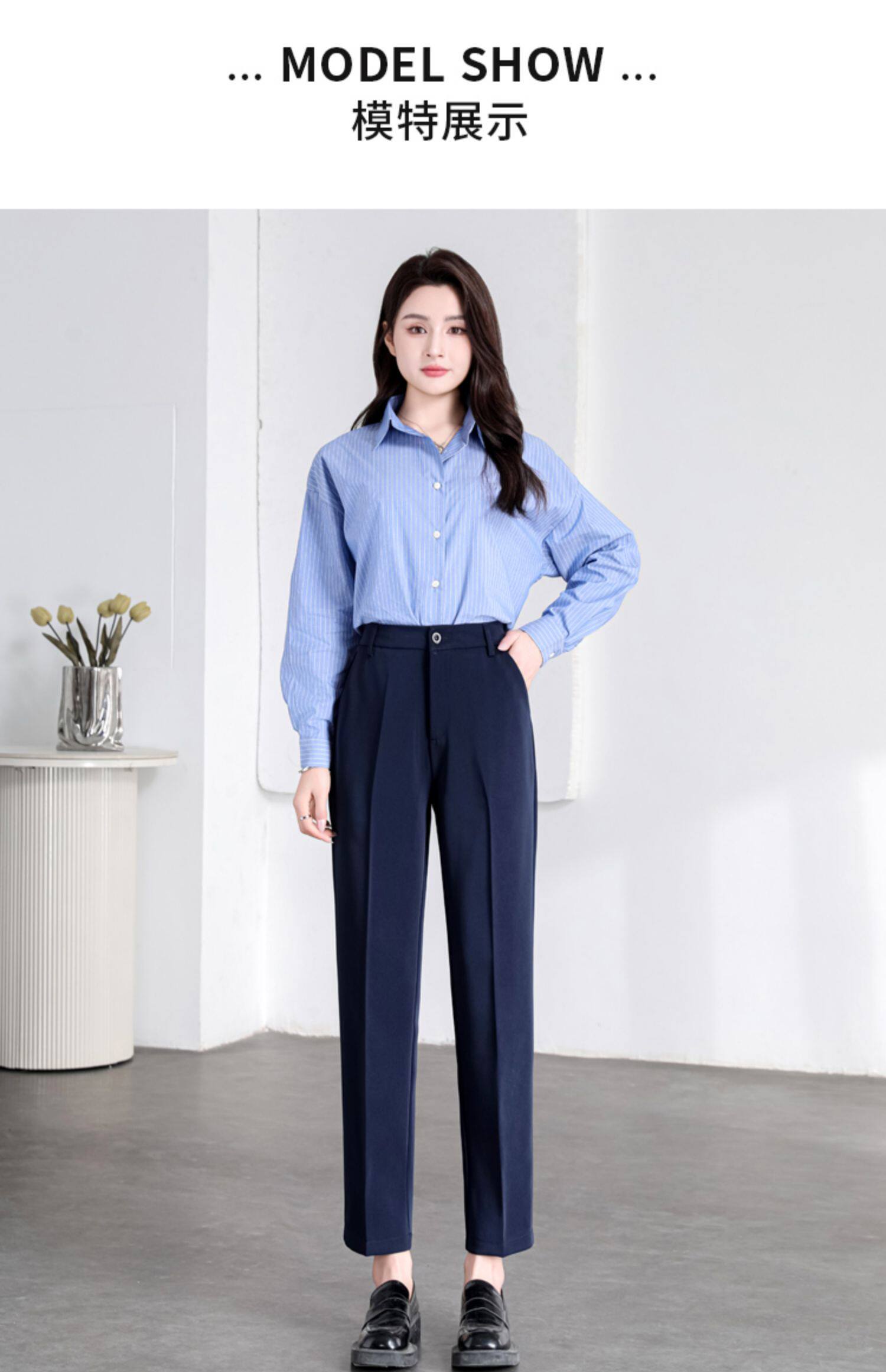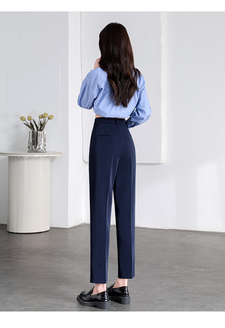 職業正裝西裝褲女春秋冬藏青藏藍黑色工作小個子九分休閒菸管西褲