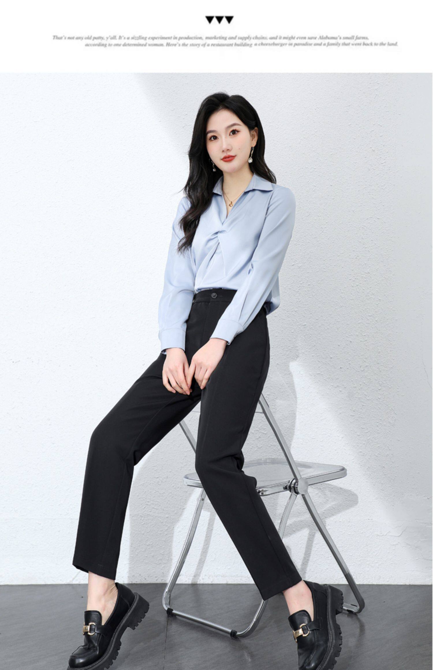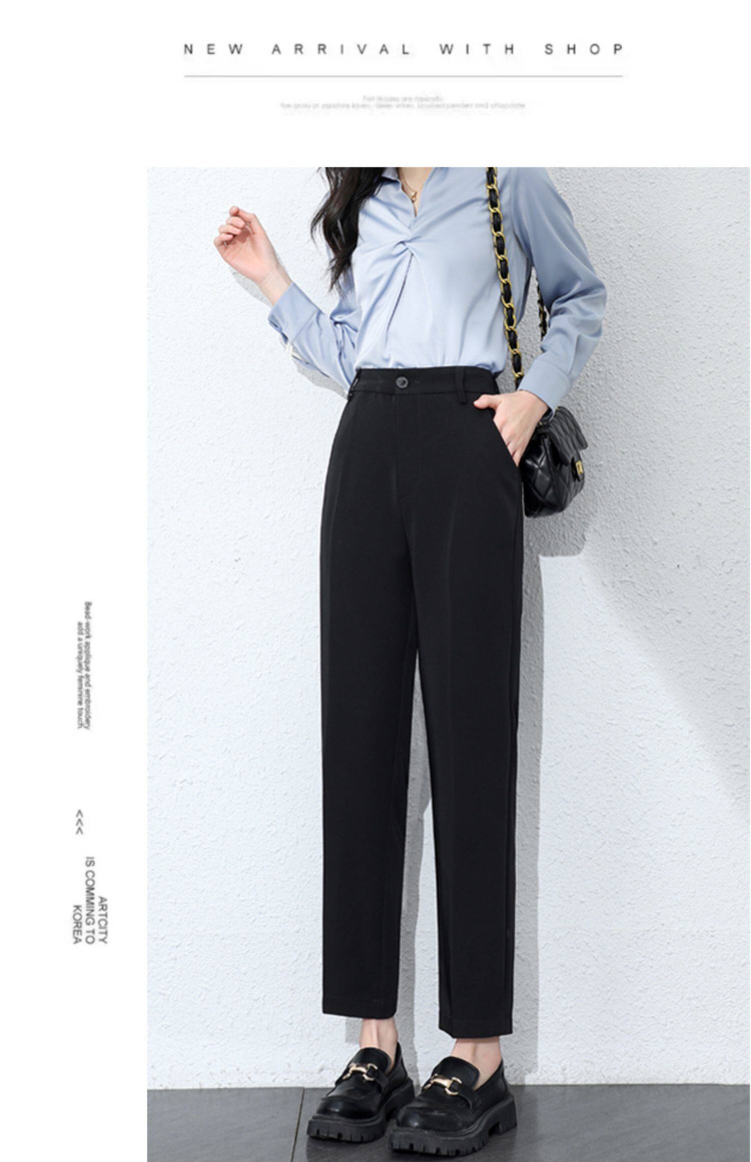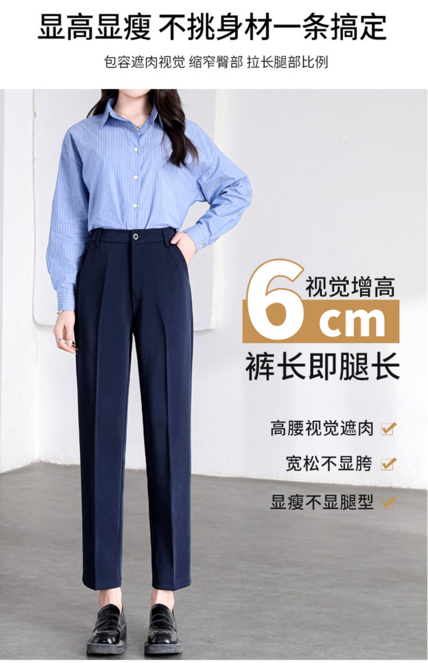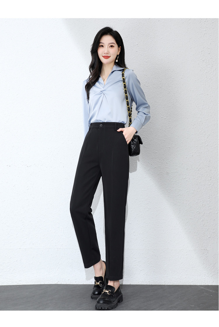 職業正裝西裝褲女春秋冬藏青藏藍黑色工作小個子九分休閒菸管西褲