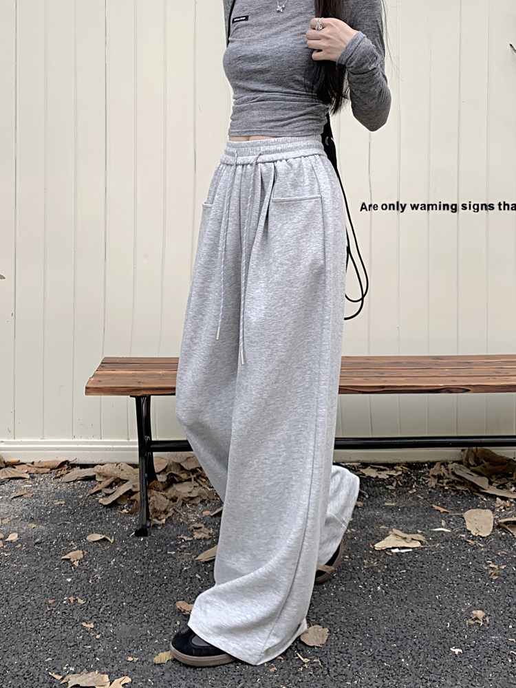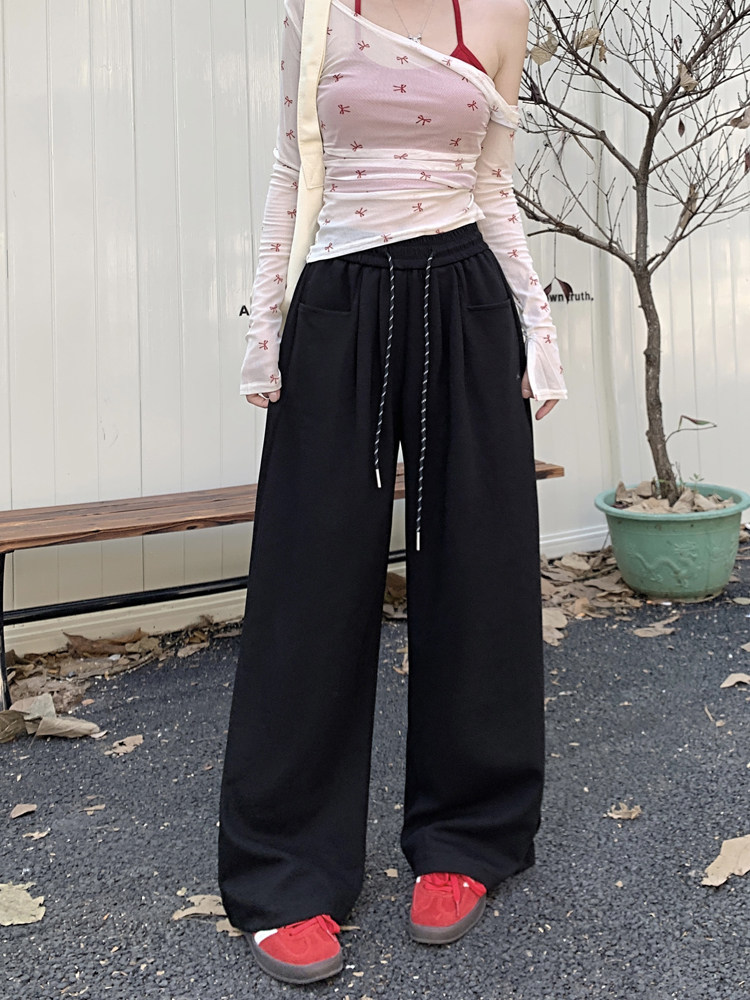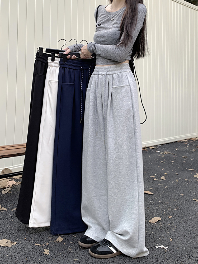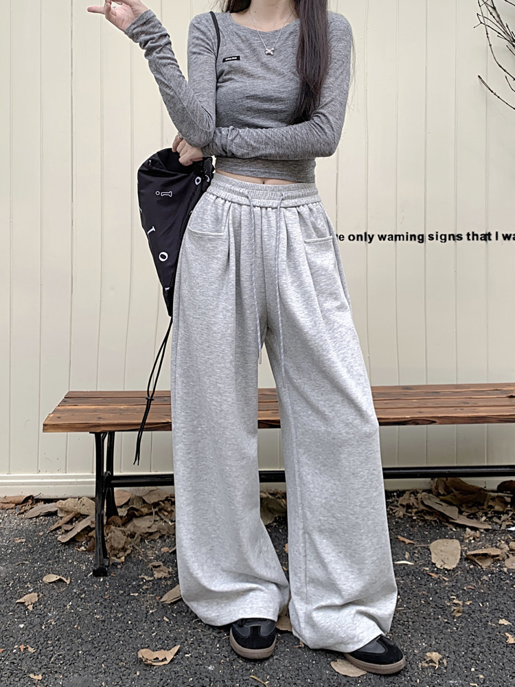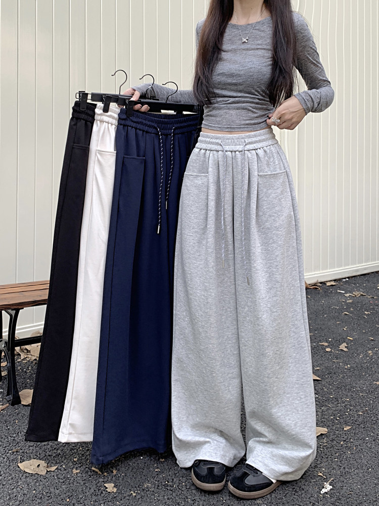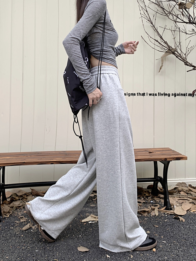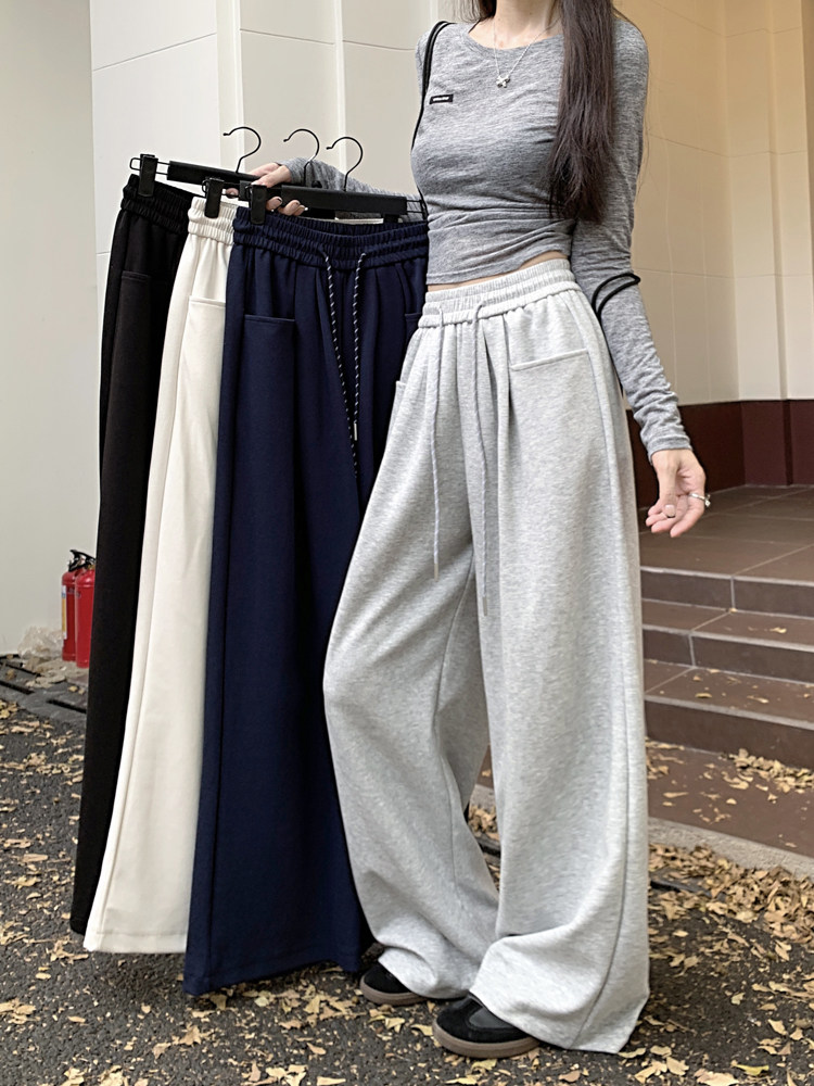 145小矮個子慵懶風休閒褲秋衛褲女150顯高直筒高腰濶腿拖地九分xs