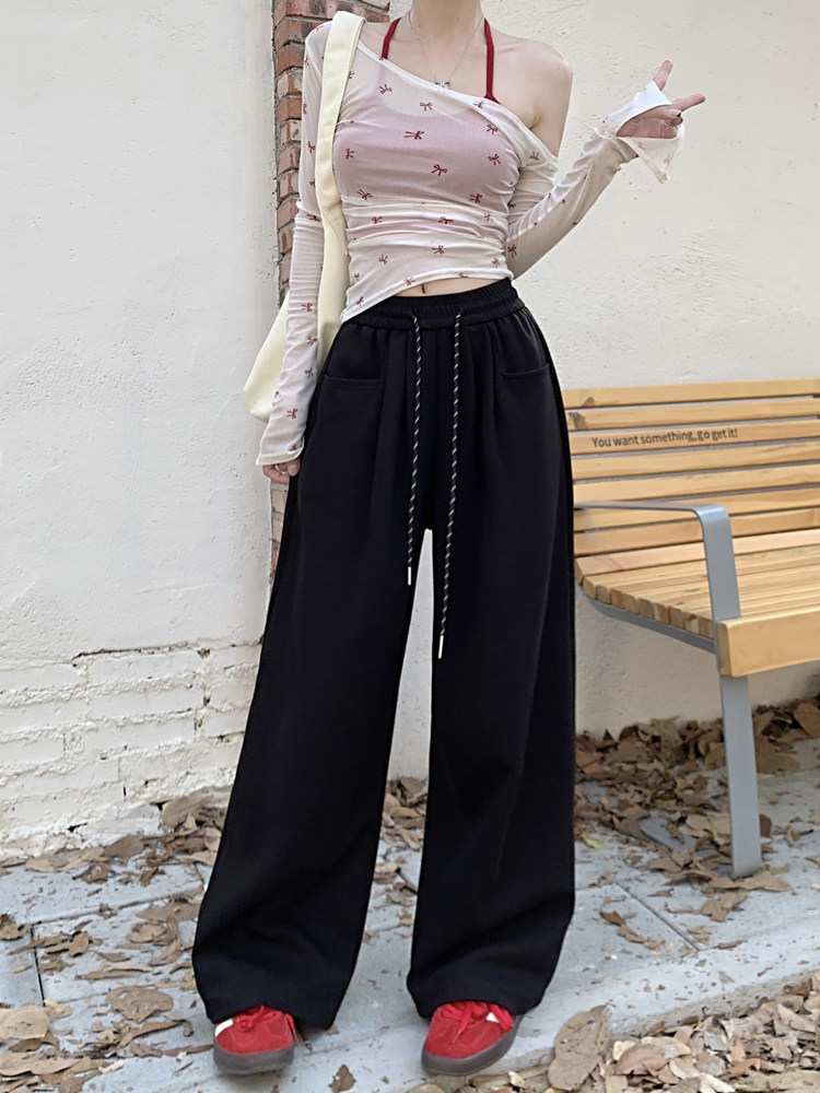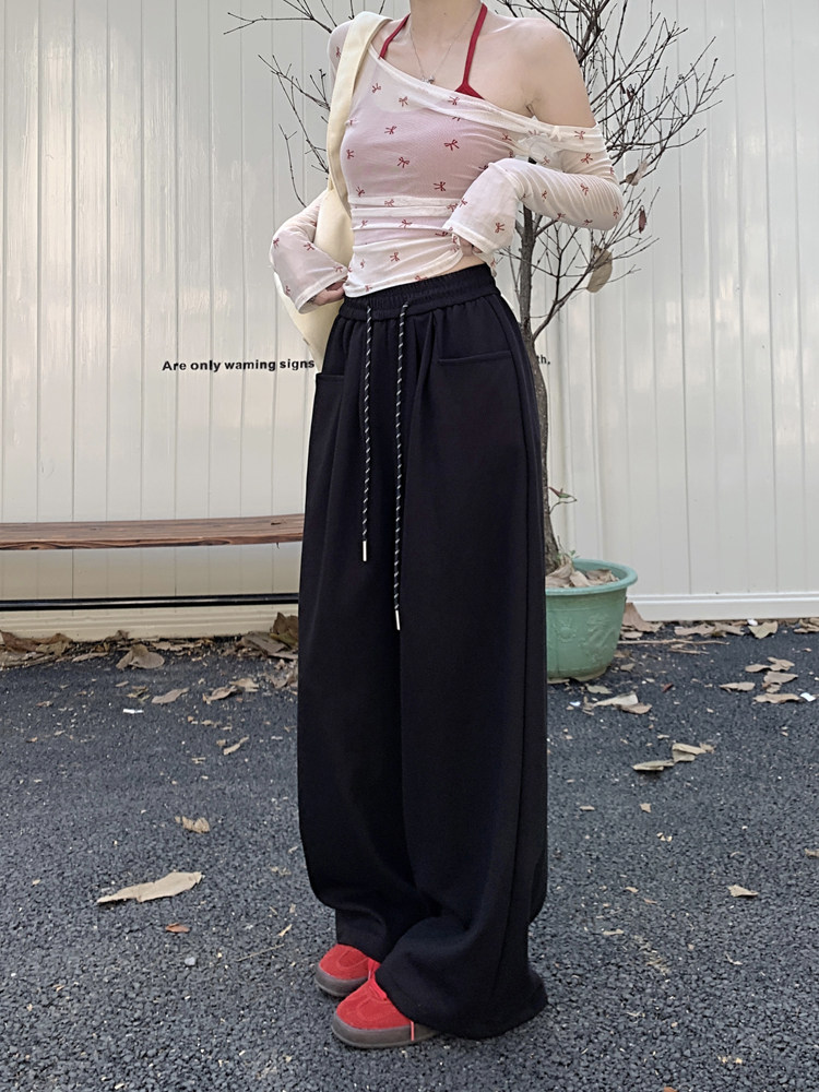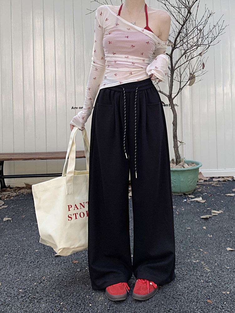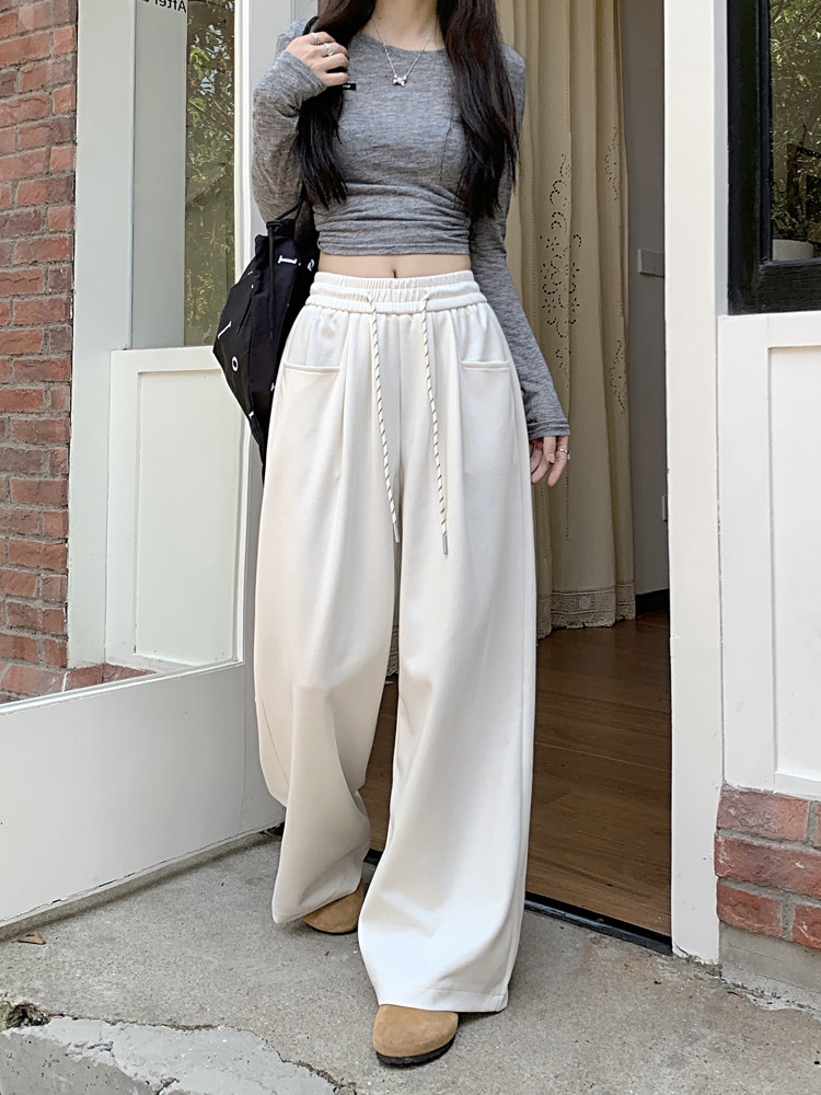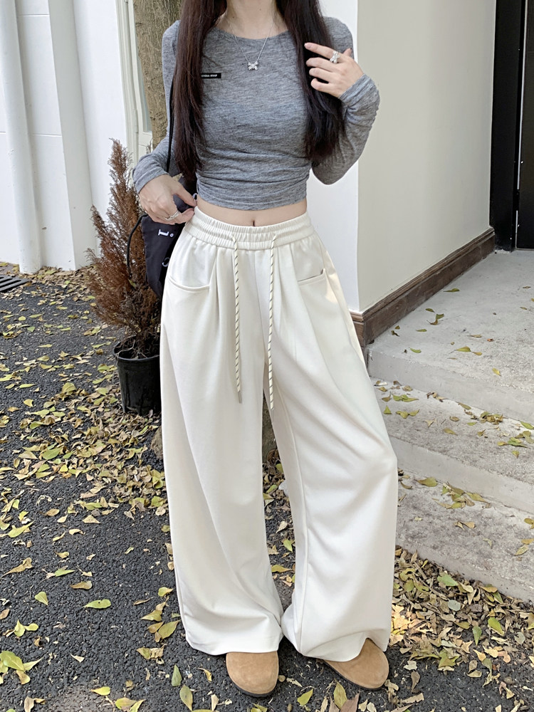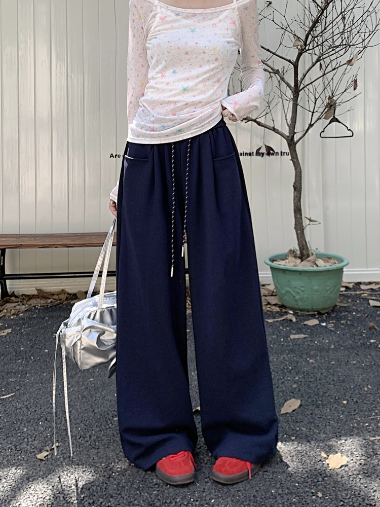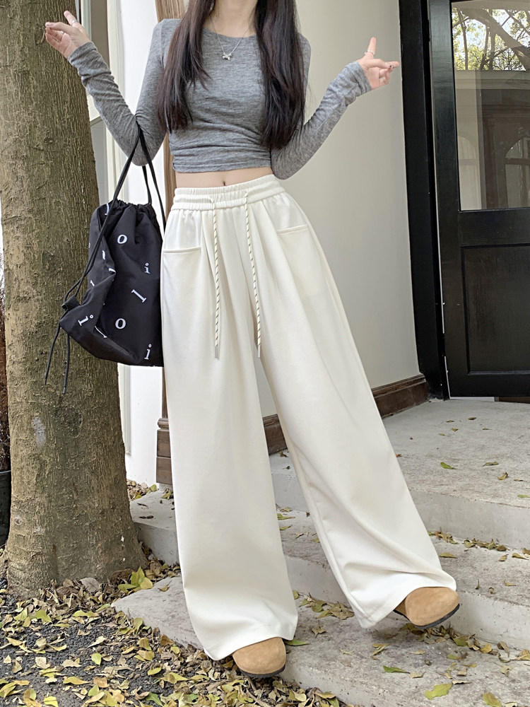 145小矮個子慵懶風休閒褲秋衛褲女150顯高直筒高腰濶腿拖地九分xs