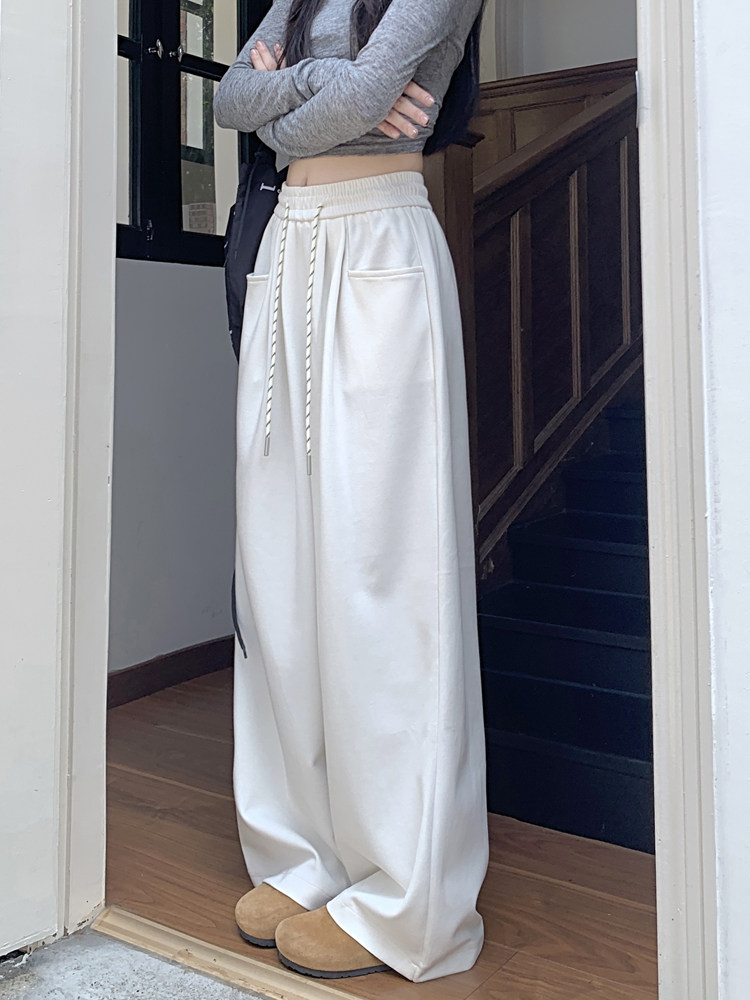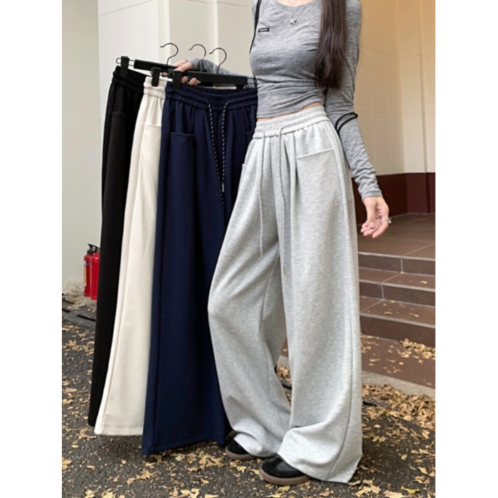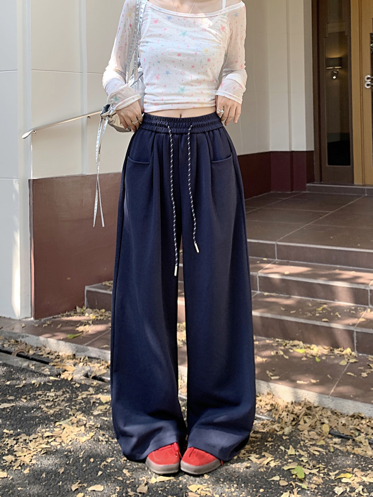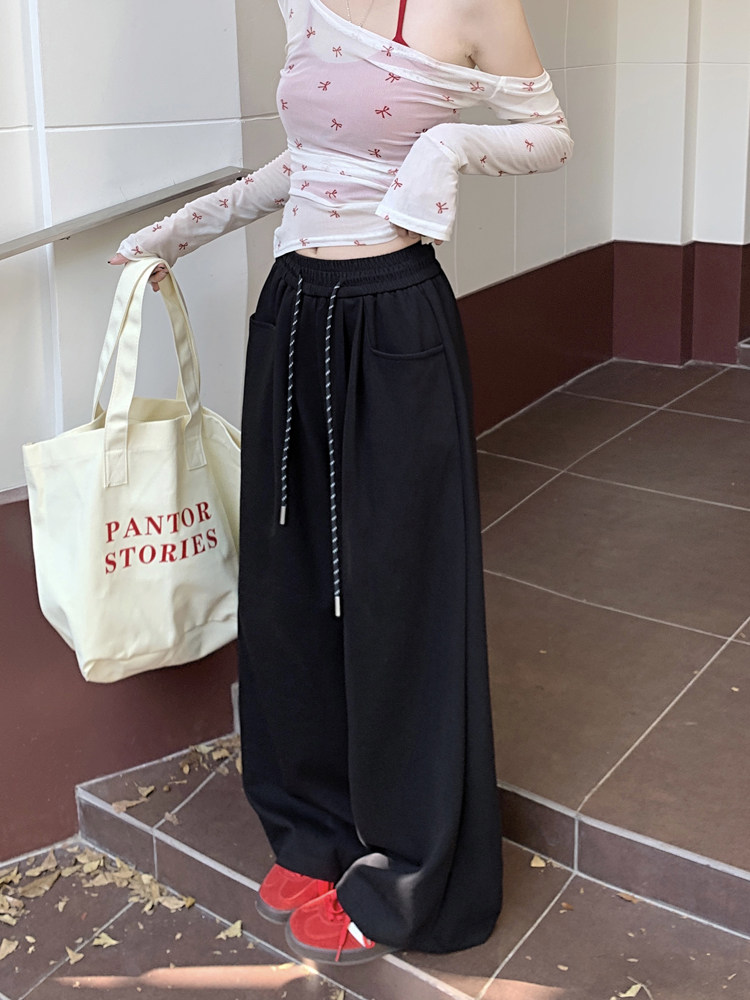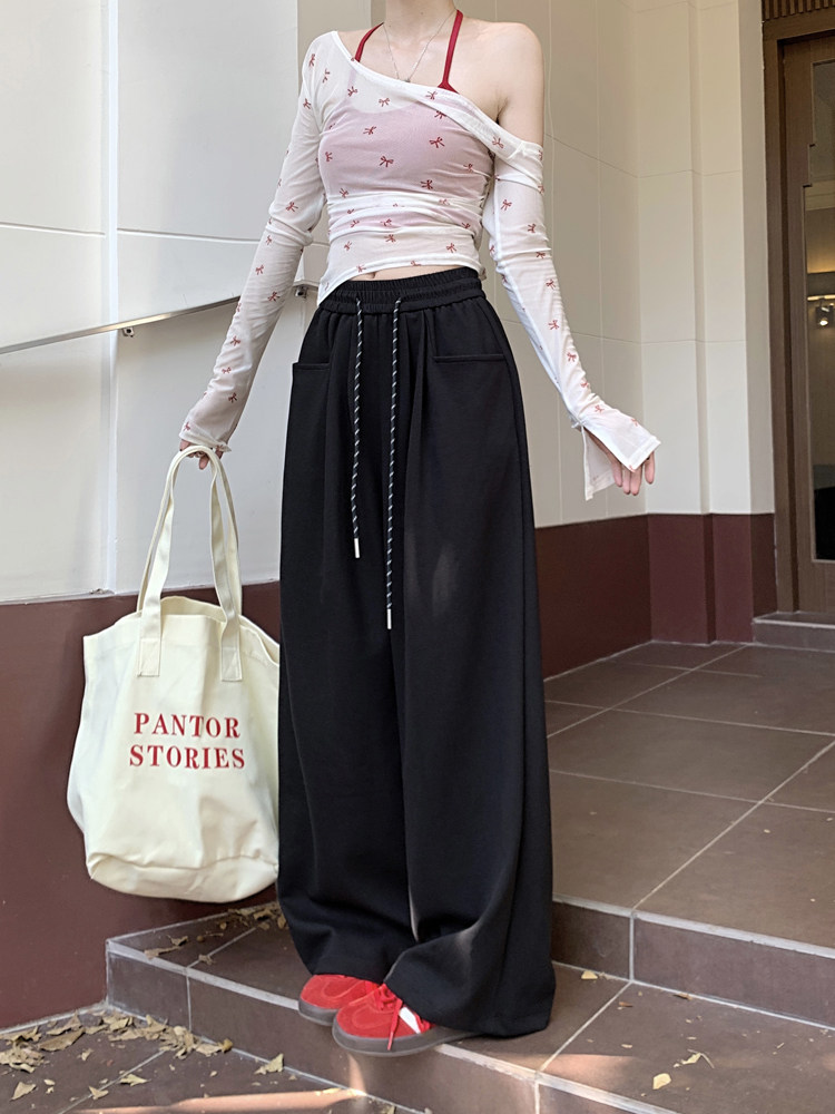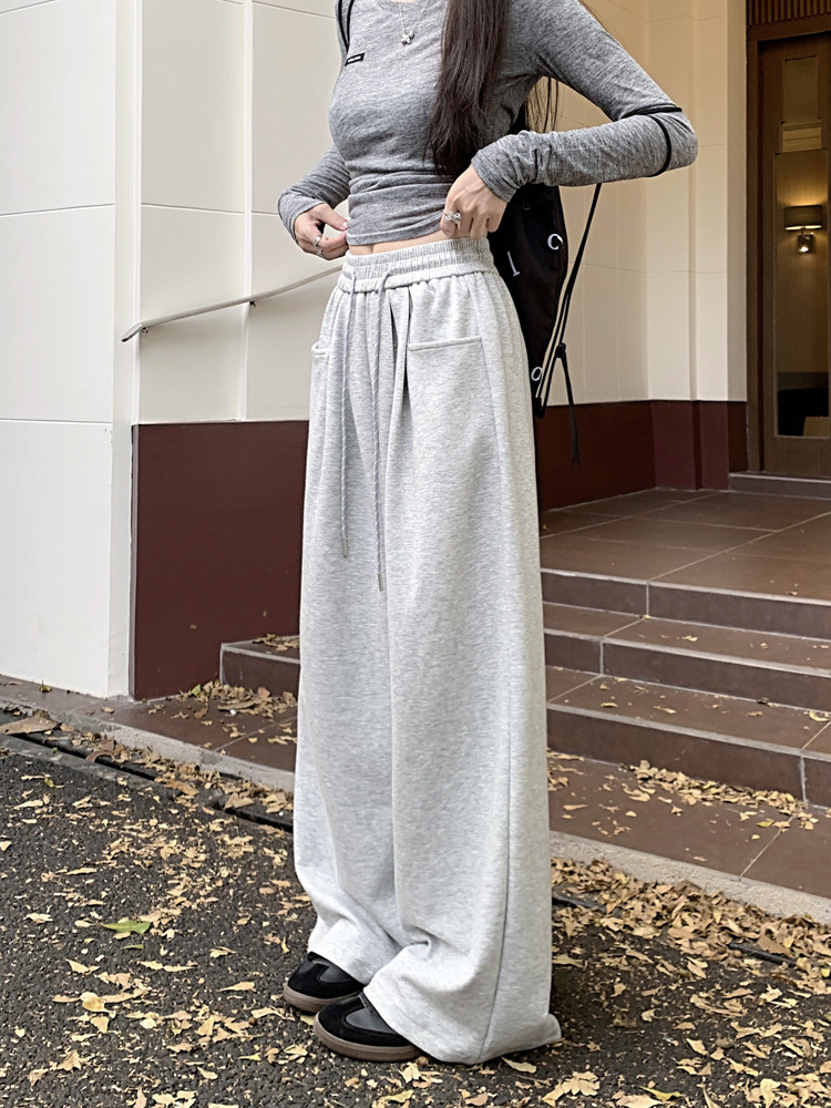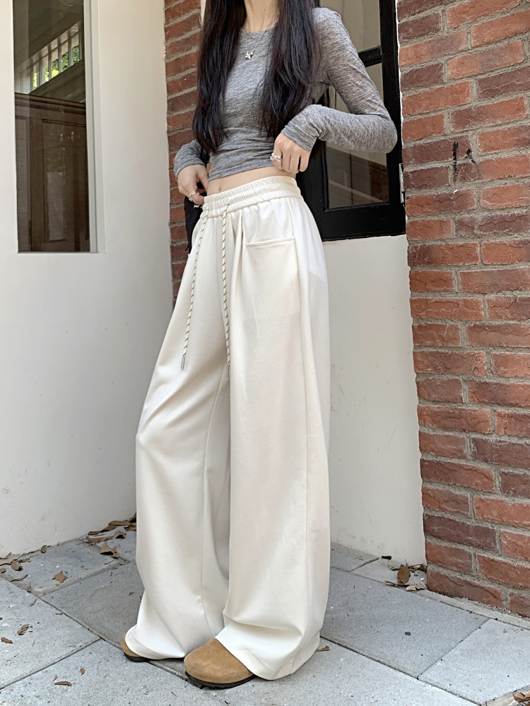 145小矮個子慵懶風休閒褲秋衛褲女150顯高直筒高腰濶腿拖地九分xs