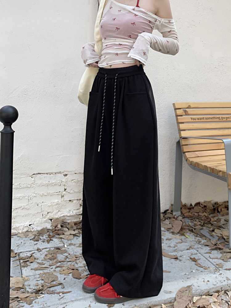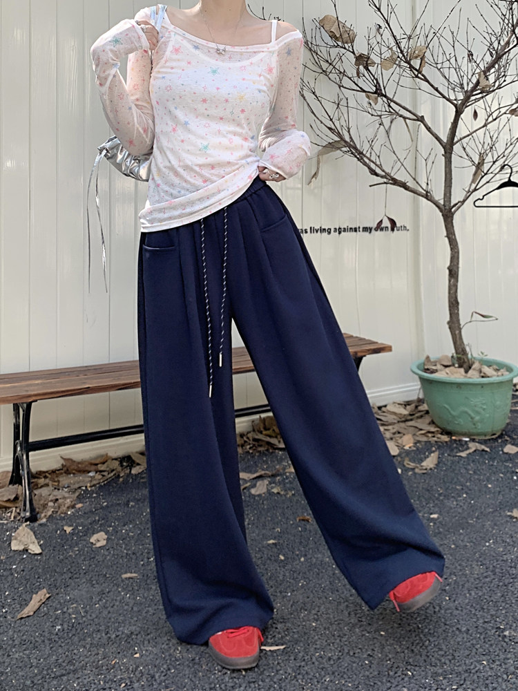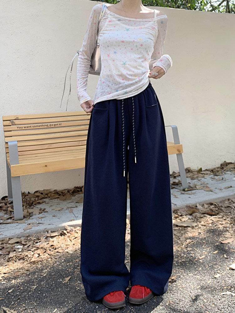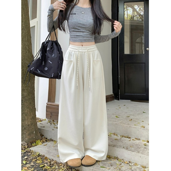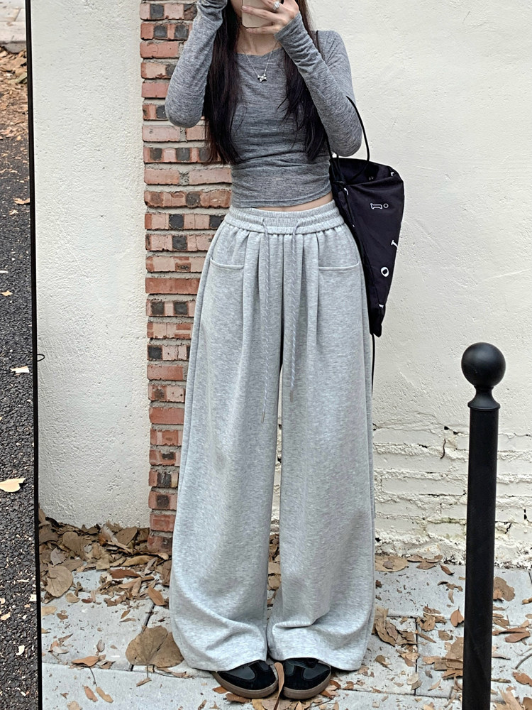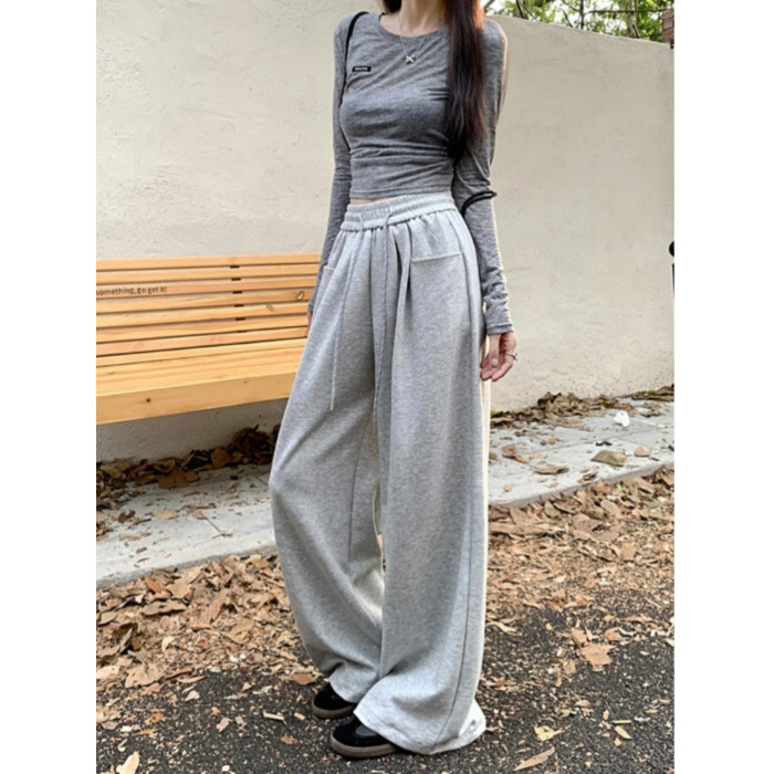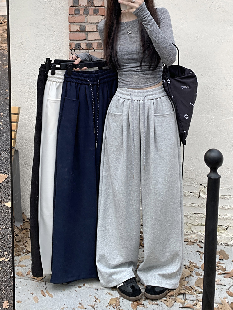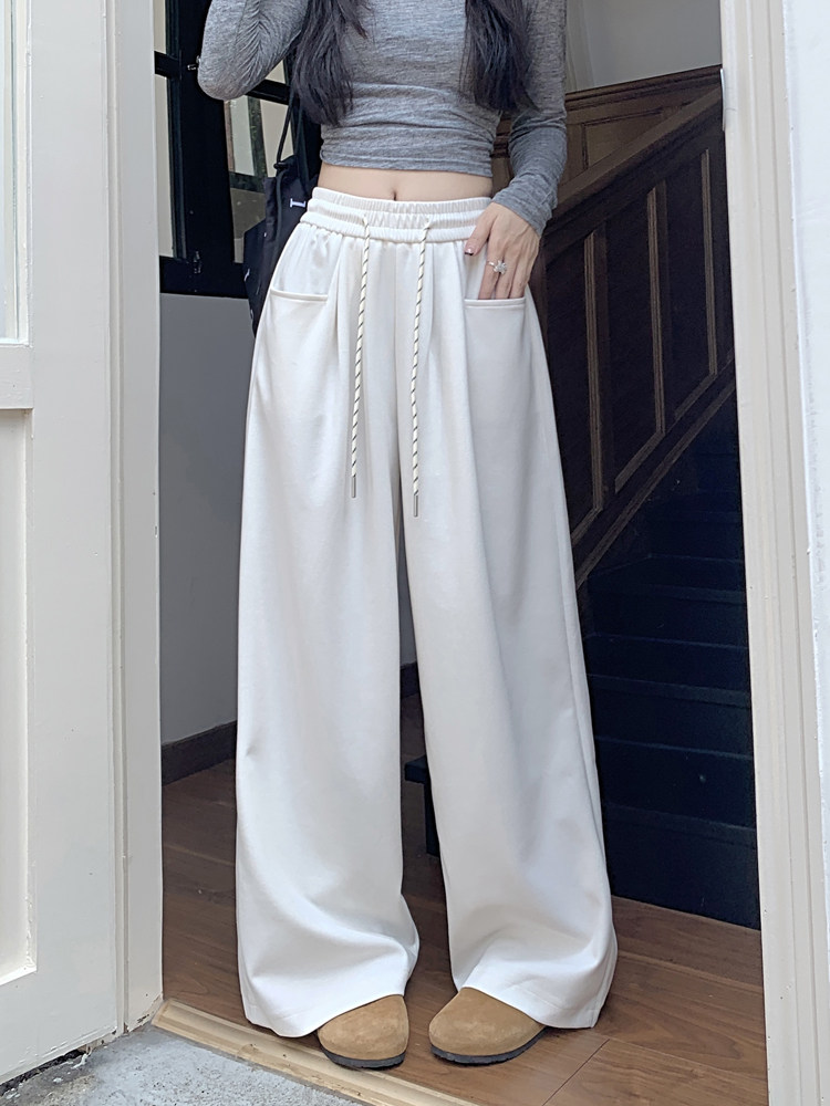 145小矮個子慵懶風休閒褲秋衛褲女150顯高直筒高腰濶腿拖地九分xs