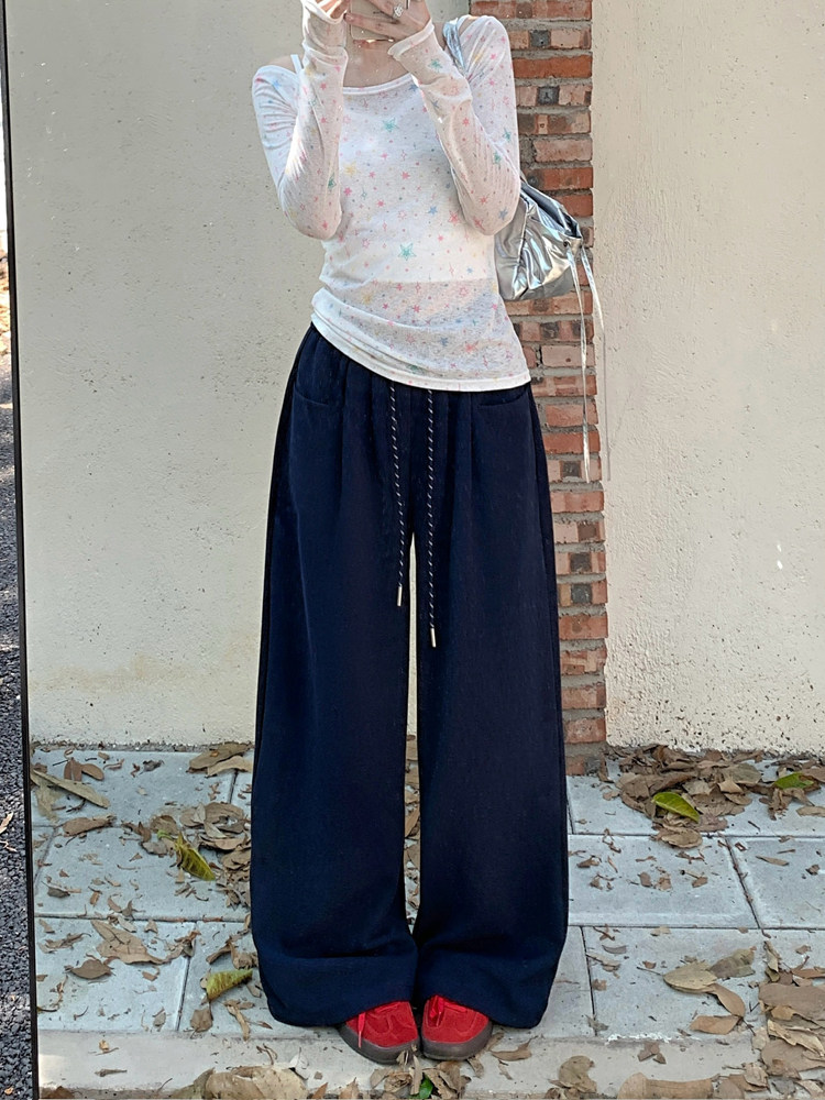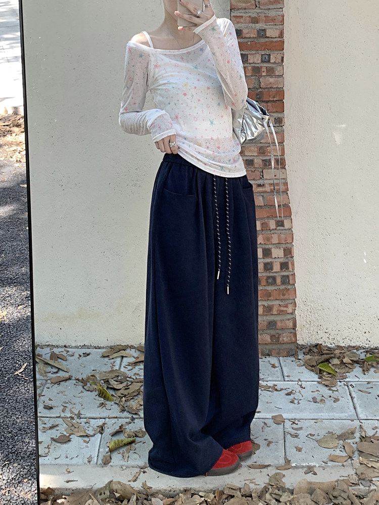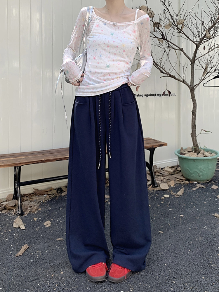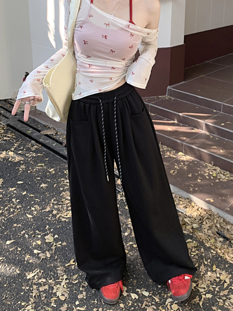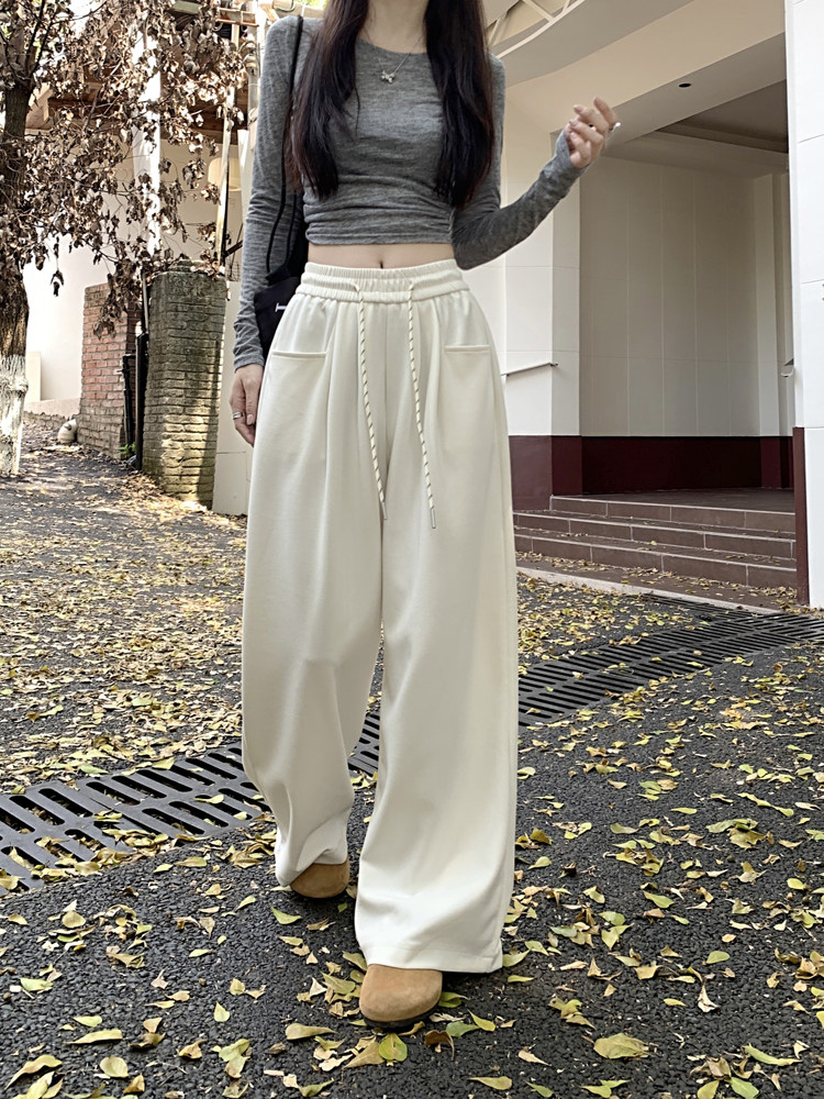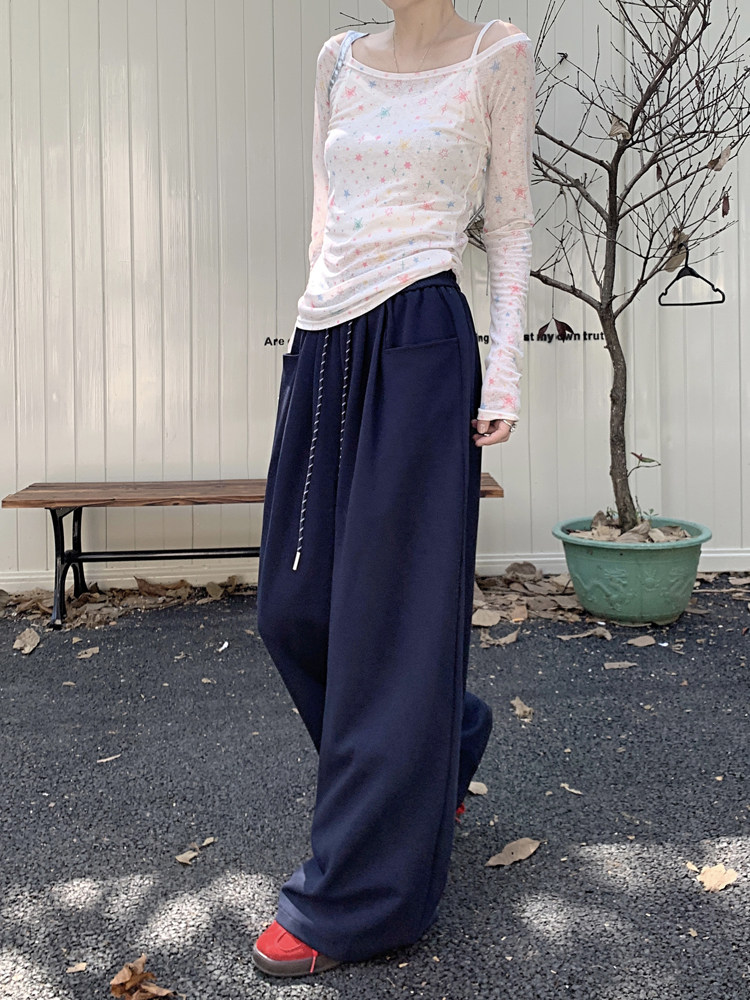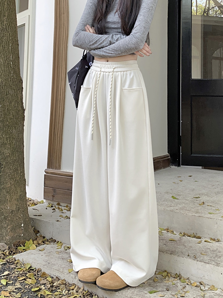 145小矮個子慵懶風休閒褲秋衛褲女150顯高直筒高腰濶腿拖地九分xs
