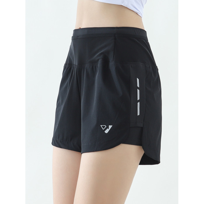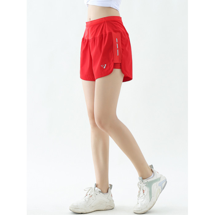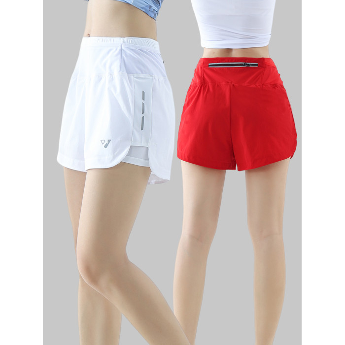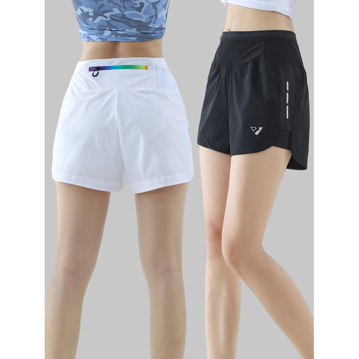 五個口袋冰絲速乾女式運動短褲假兩件夏季寬松薄款跑步休閒三分褲