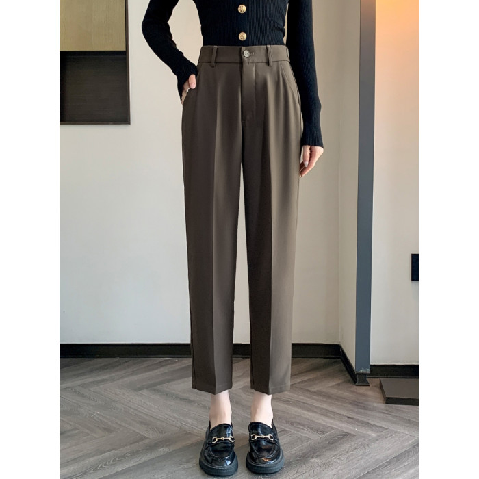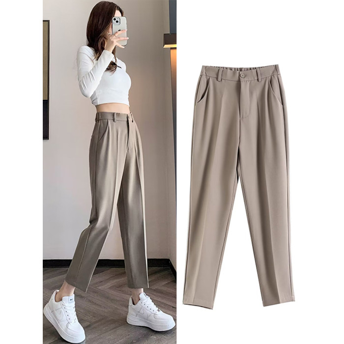 西裝褲女2025新款春秋直筒小腳西褲休閒小個子八九分哈倫菸管褲子