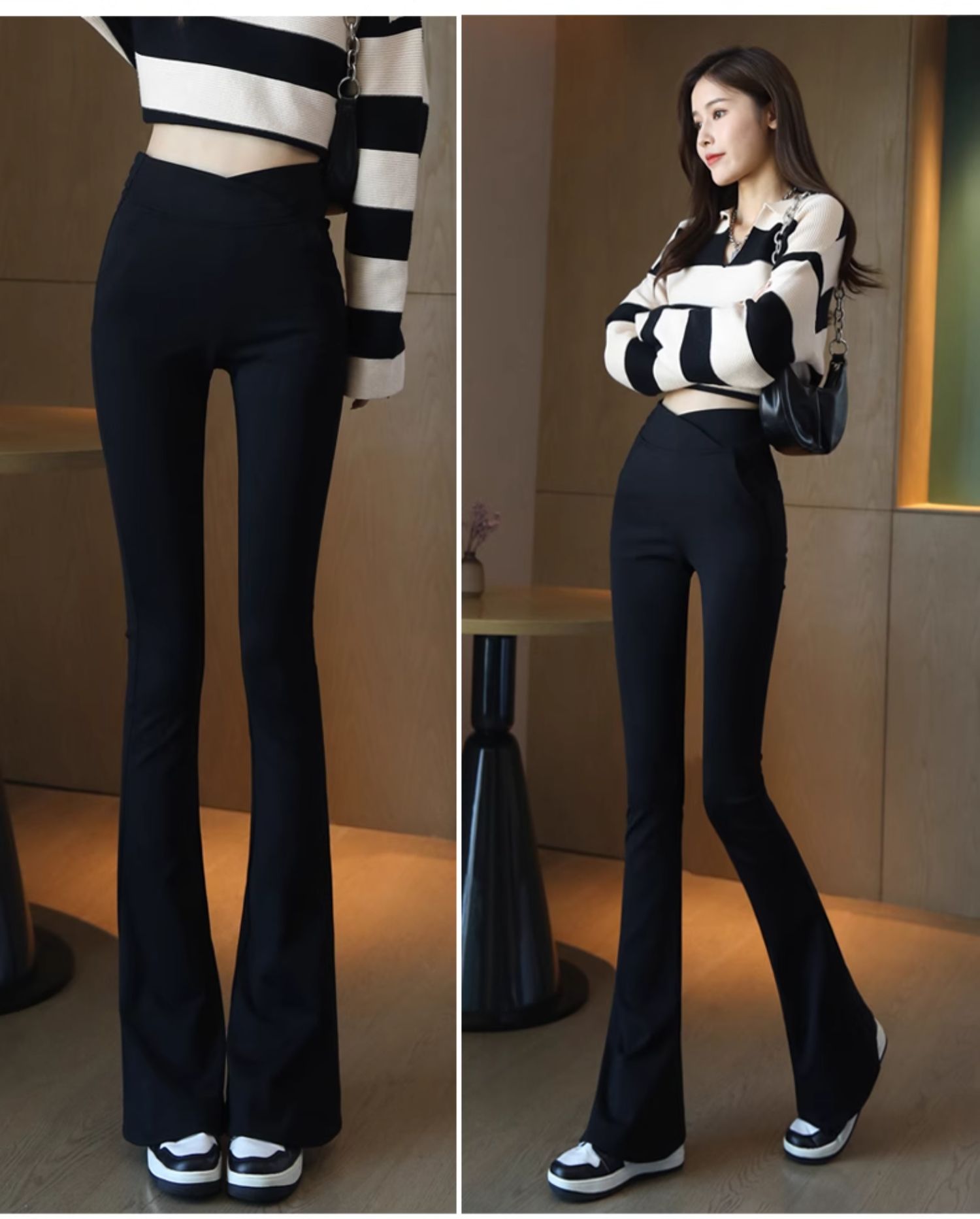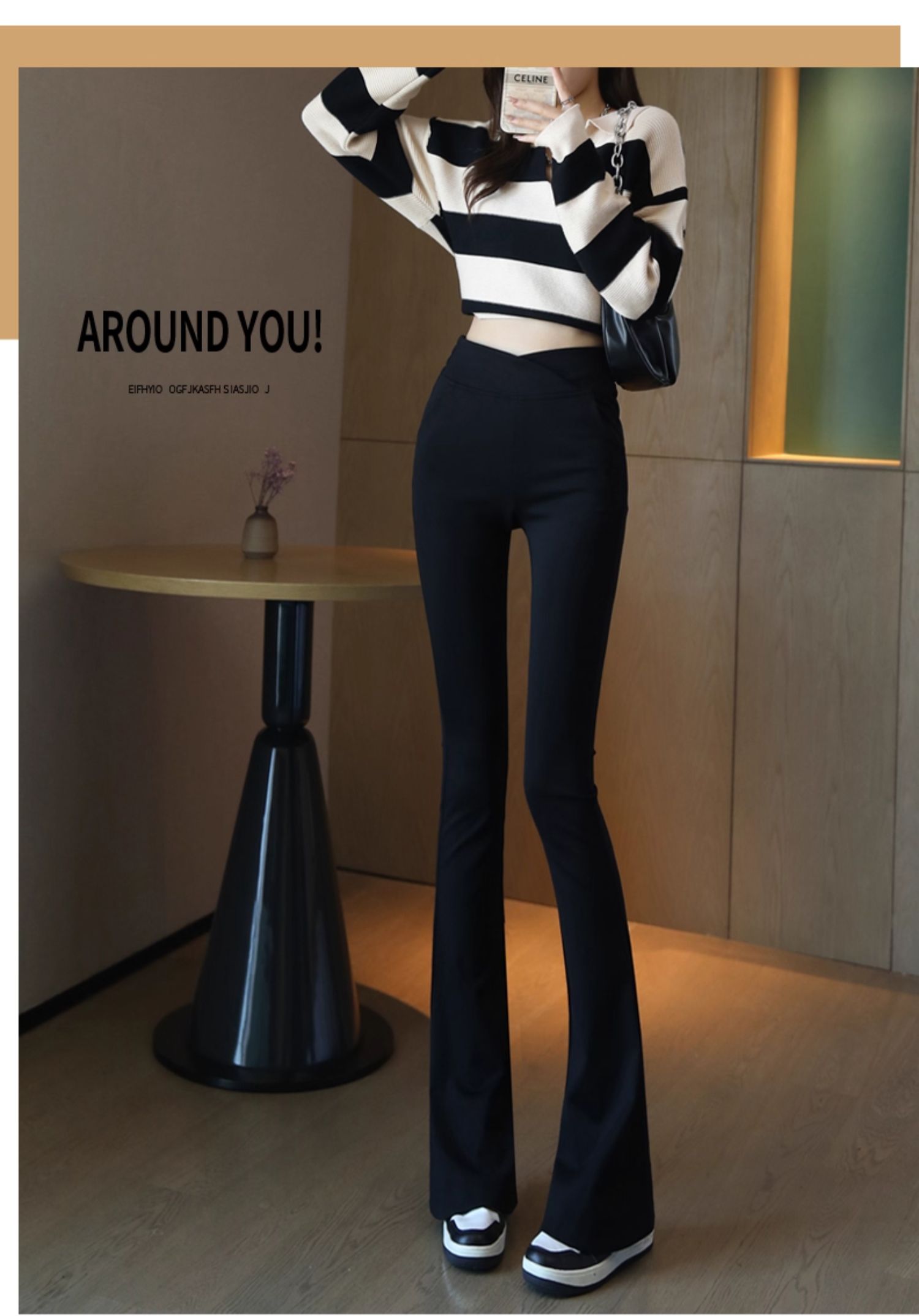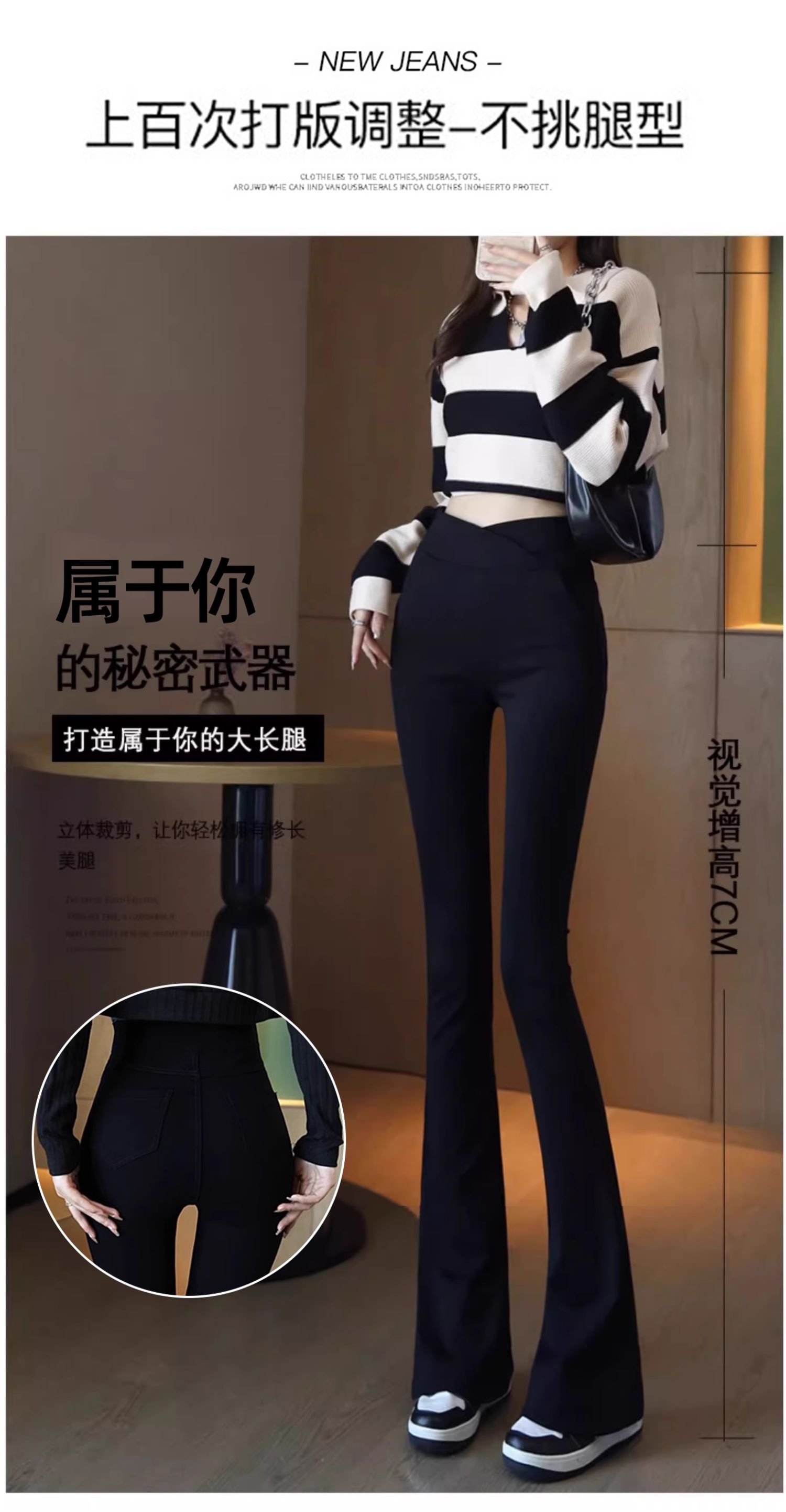 黑色微喇叭褲女秋冬加絨2025新爆款高腰修身顯瘦垂感小個子馬蹄褲