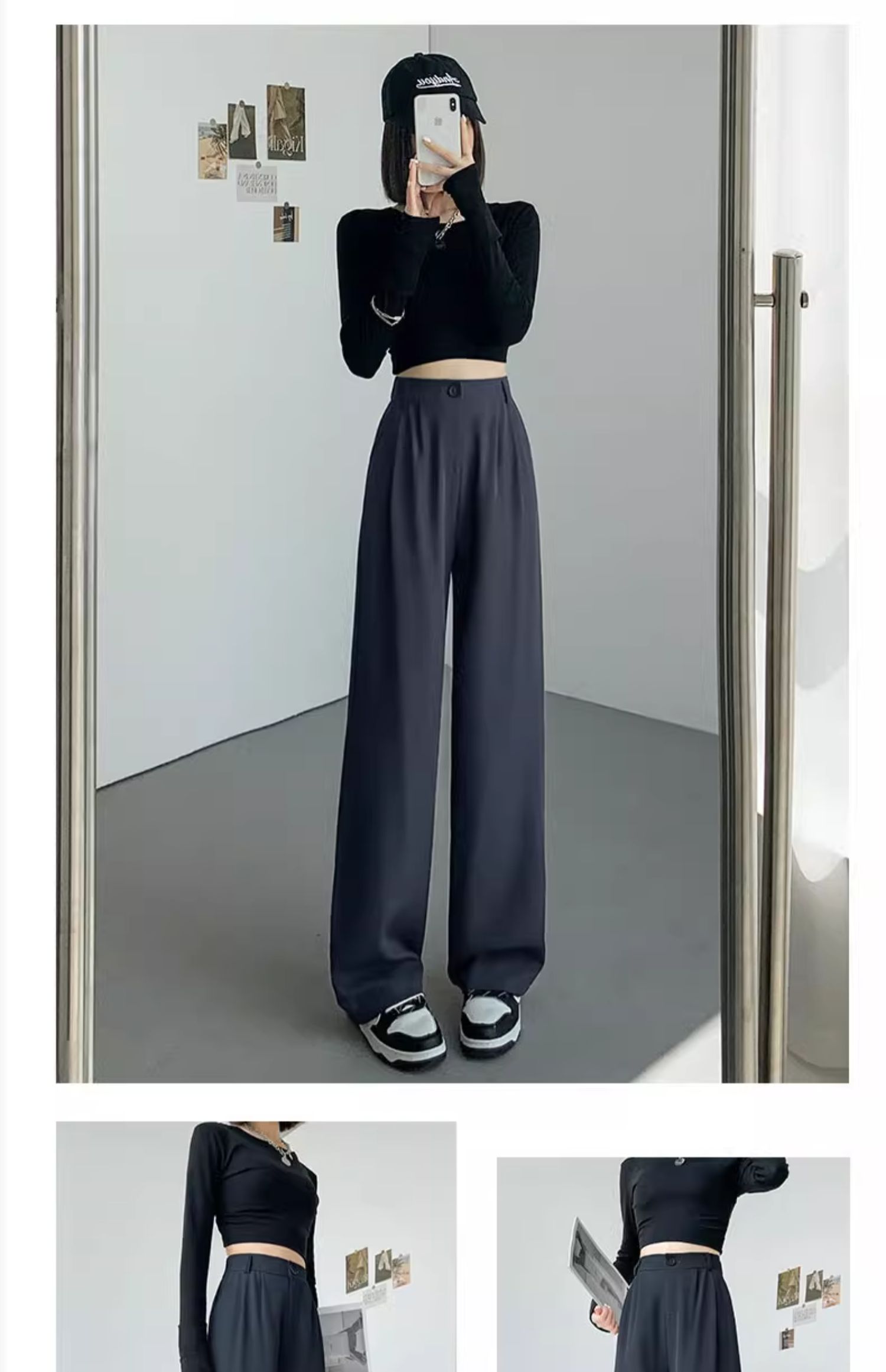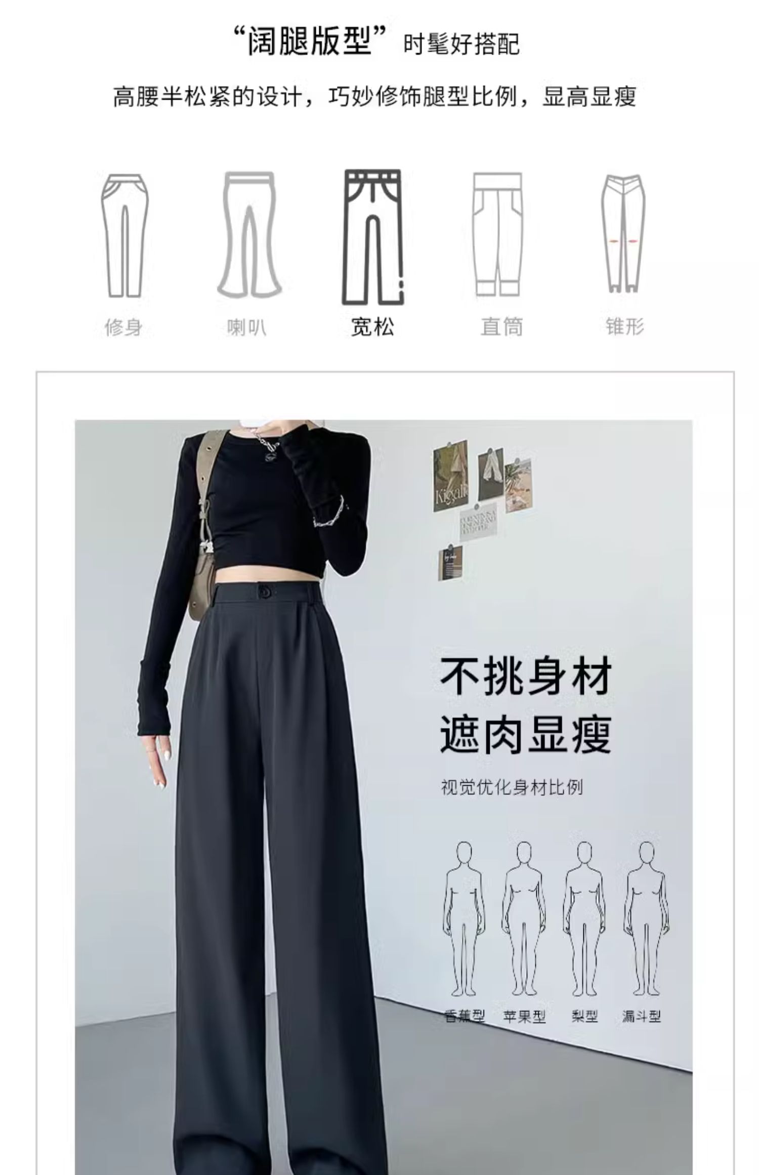 黑色西裝褲女褲子春秋2025新款寬松垂感濶腿褲小個子高級感直筒褲