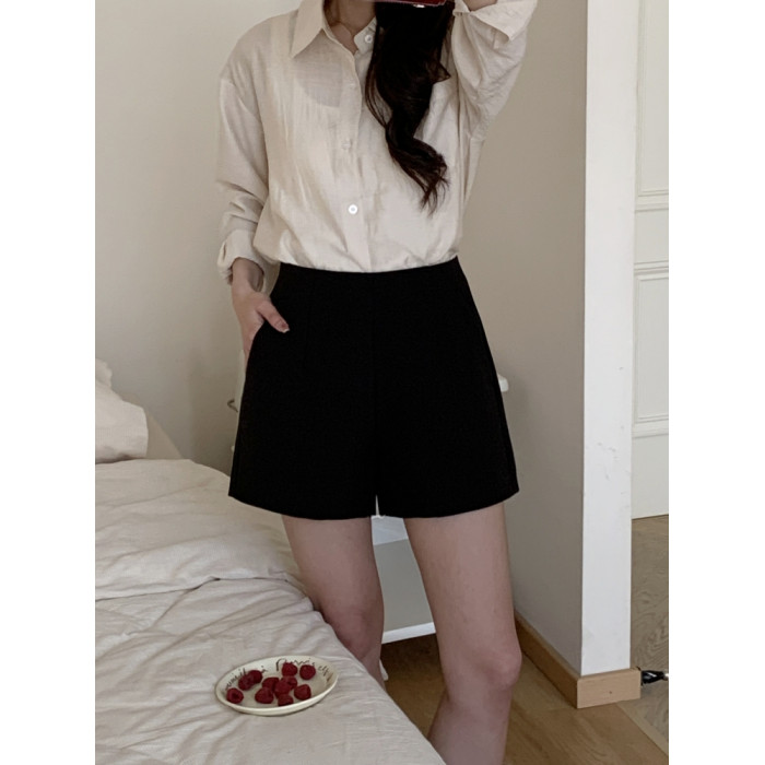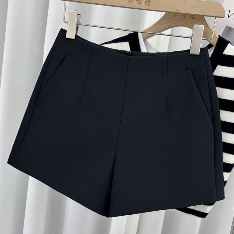春季黑色西裝短褲女2025新款春秋高腰顯瘦顯腿長百搭外穿a字靴褲