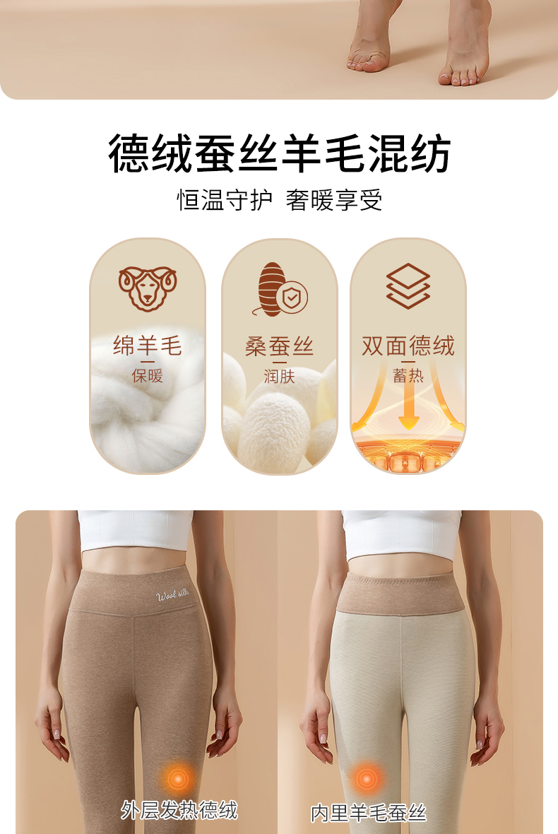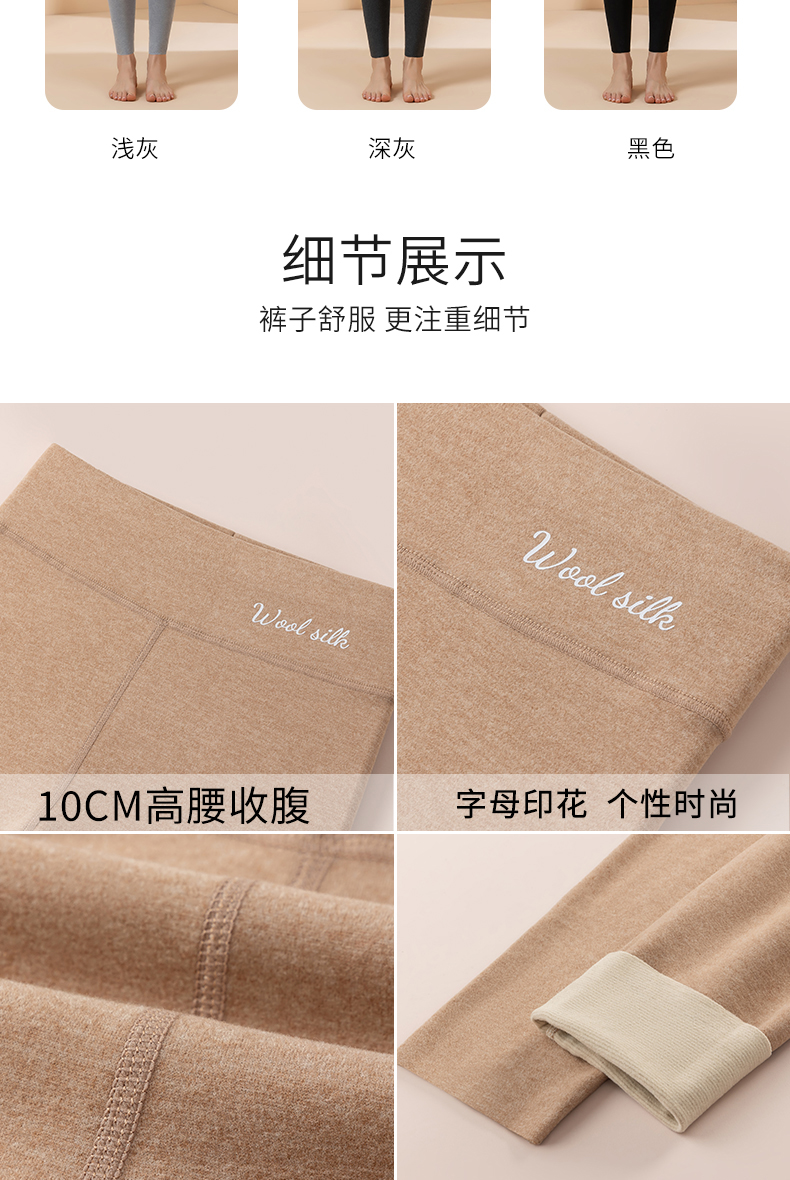 德絨秋褲女內穿秋冬季加絨加厚大碼羊毛蠶絲保暖棉毛褲高腰打底褲