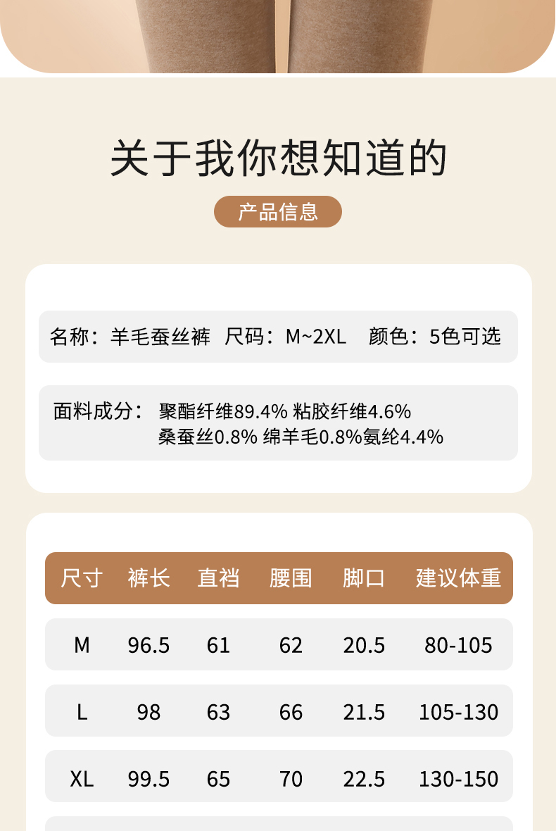 | 材質成分 | 聚酯纖維89.4% 粘膠纖維(粘纖)4.6% 聚氨酯彈性纖維(氨綸)4.4% 綿羊毛0.8% 桑蠶絲0.8% |