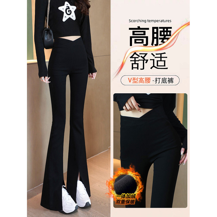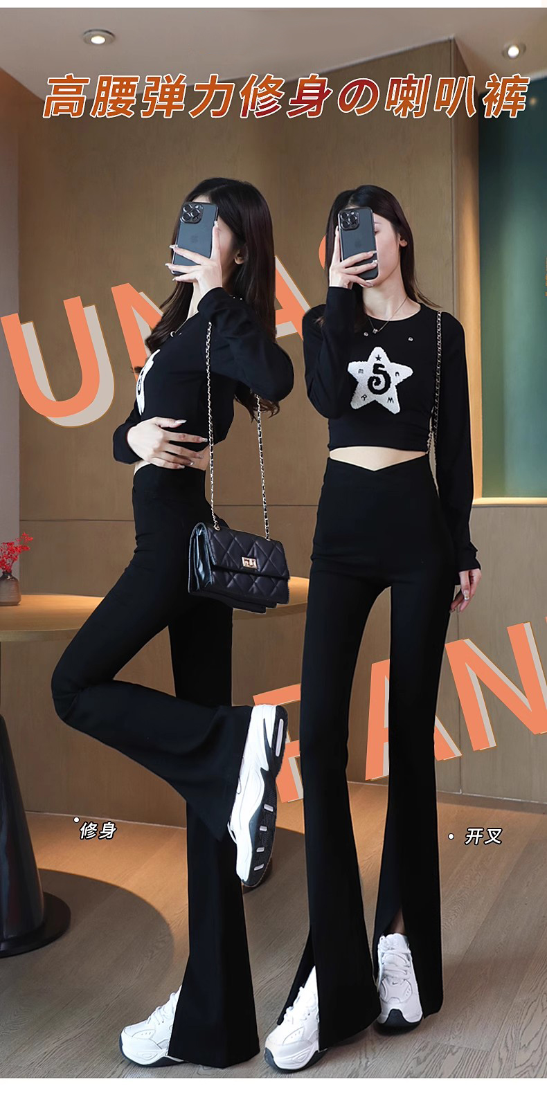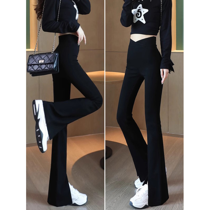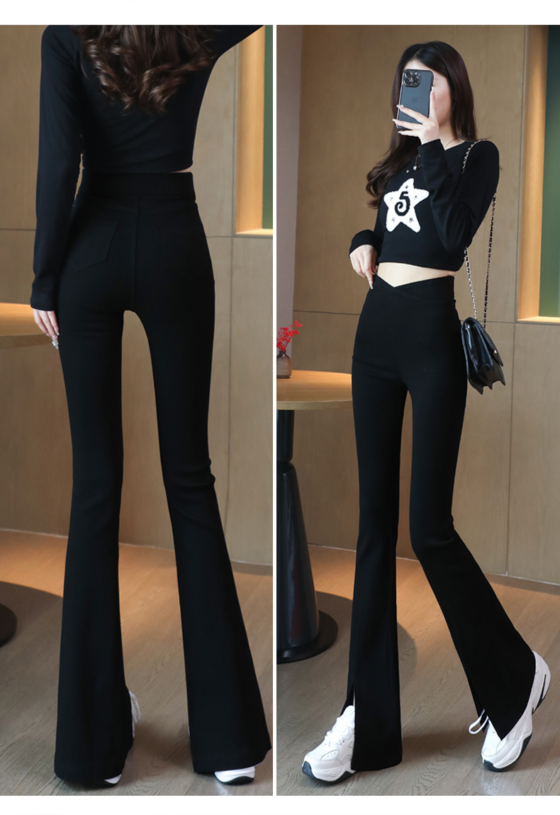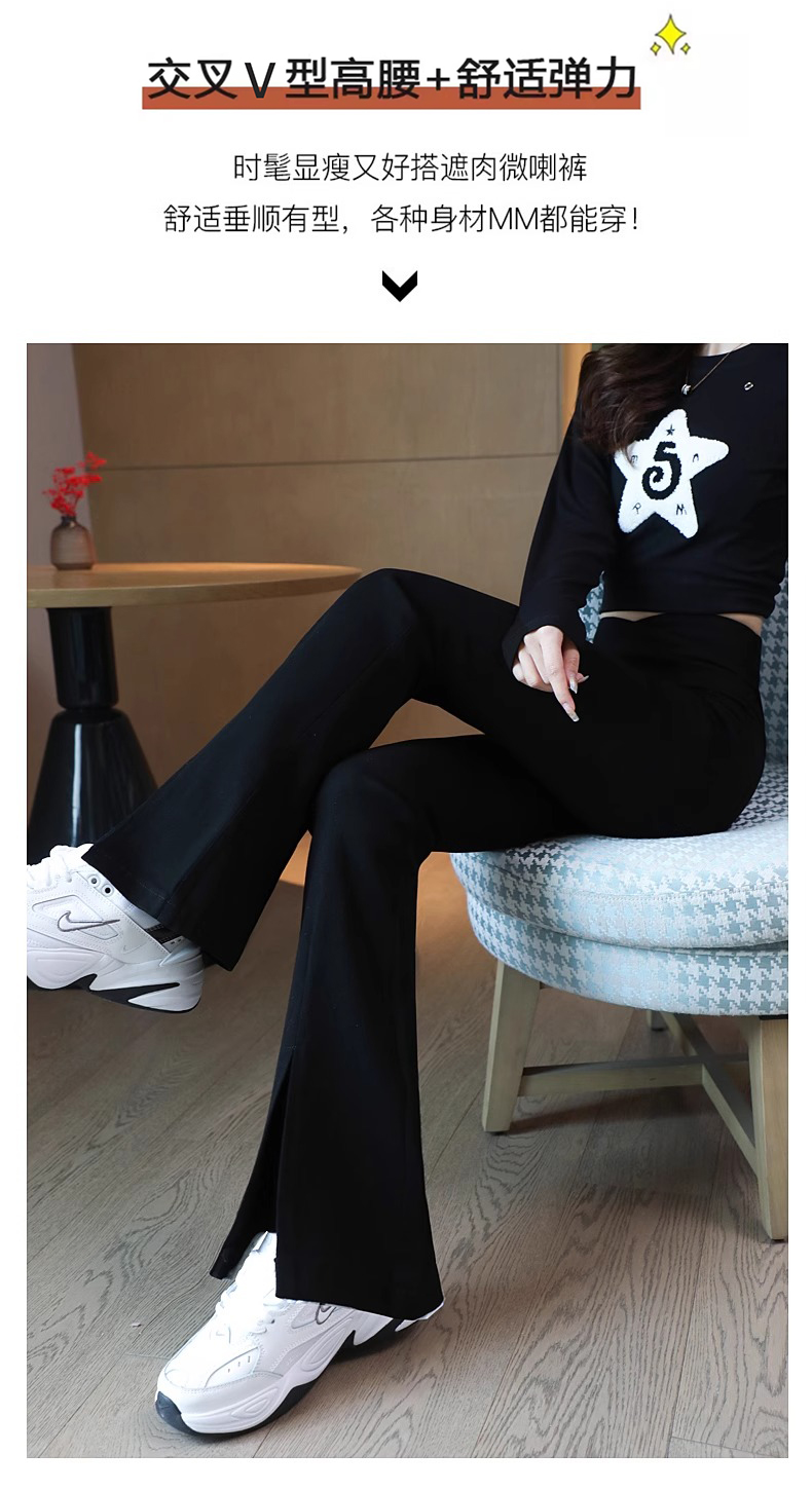 黑色開叉微喇叭褲女秋冬加絨2025新爆款垂感高腰小個子顯瘦休閒褲