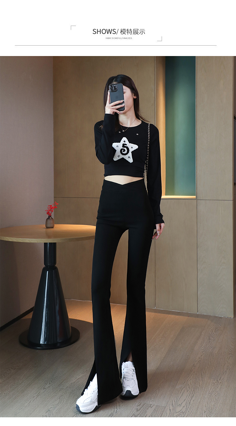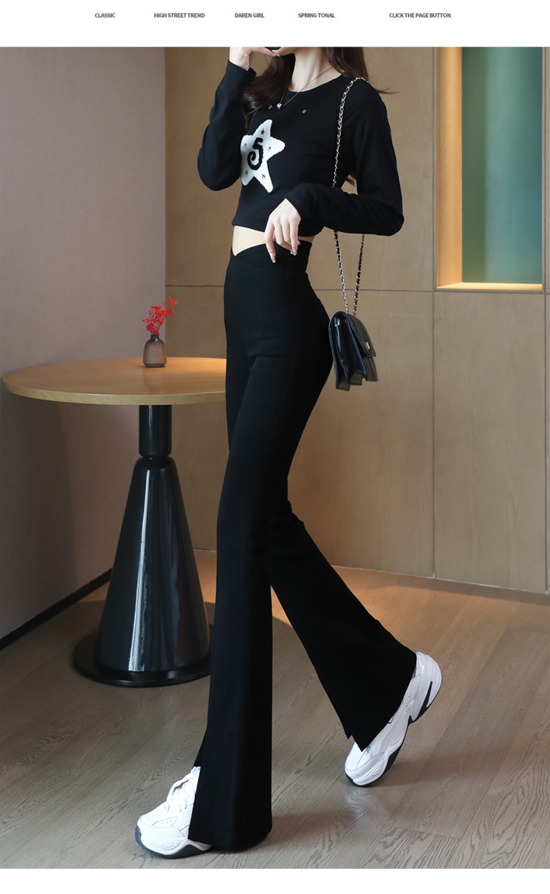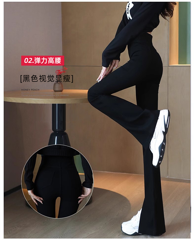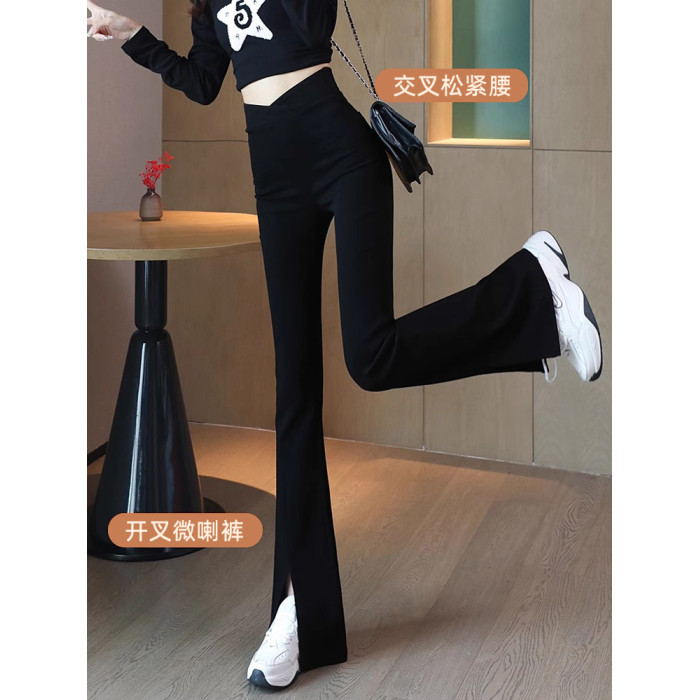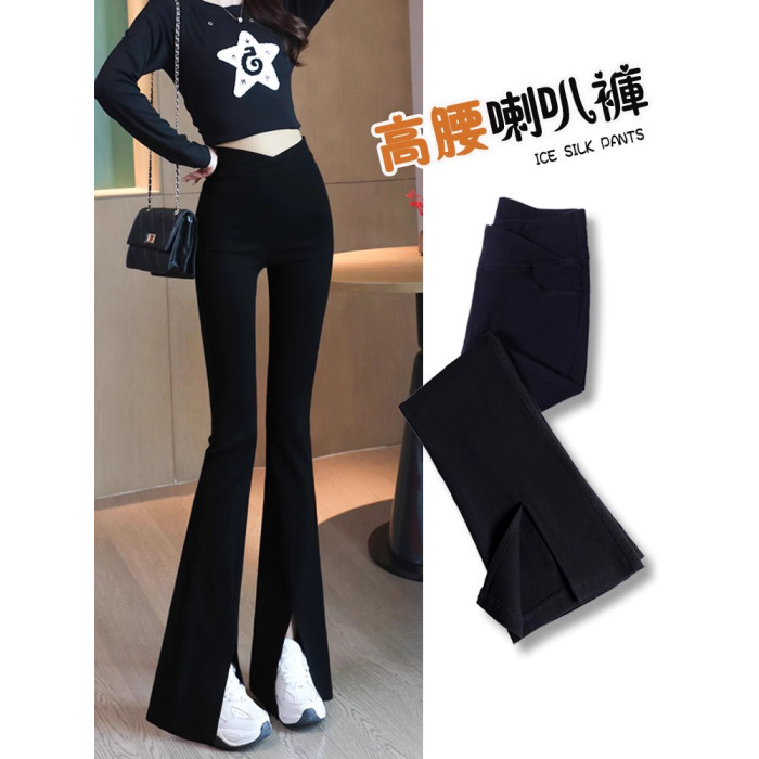 黑色開叉微喇叭褲女秋冬加絨2025新爆款垂感高腰小個子顯瘦休閒褲