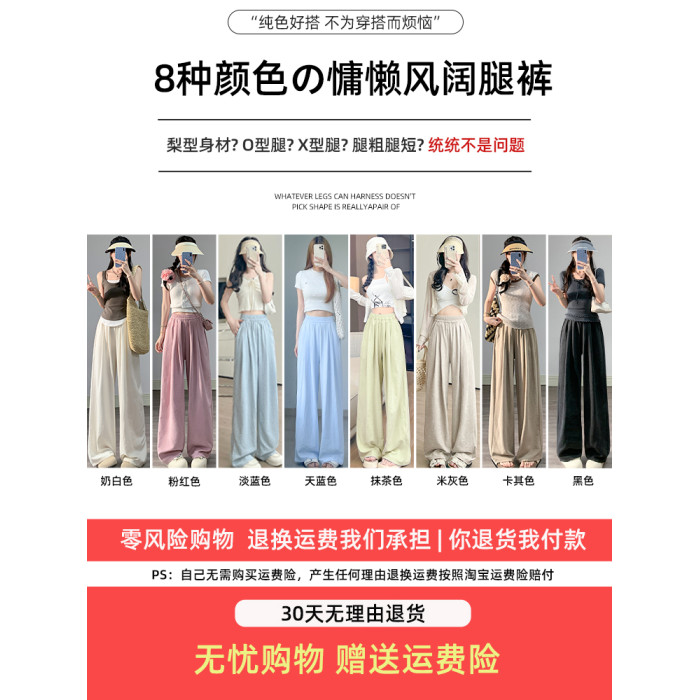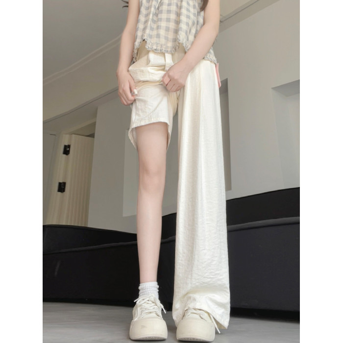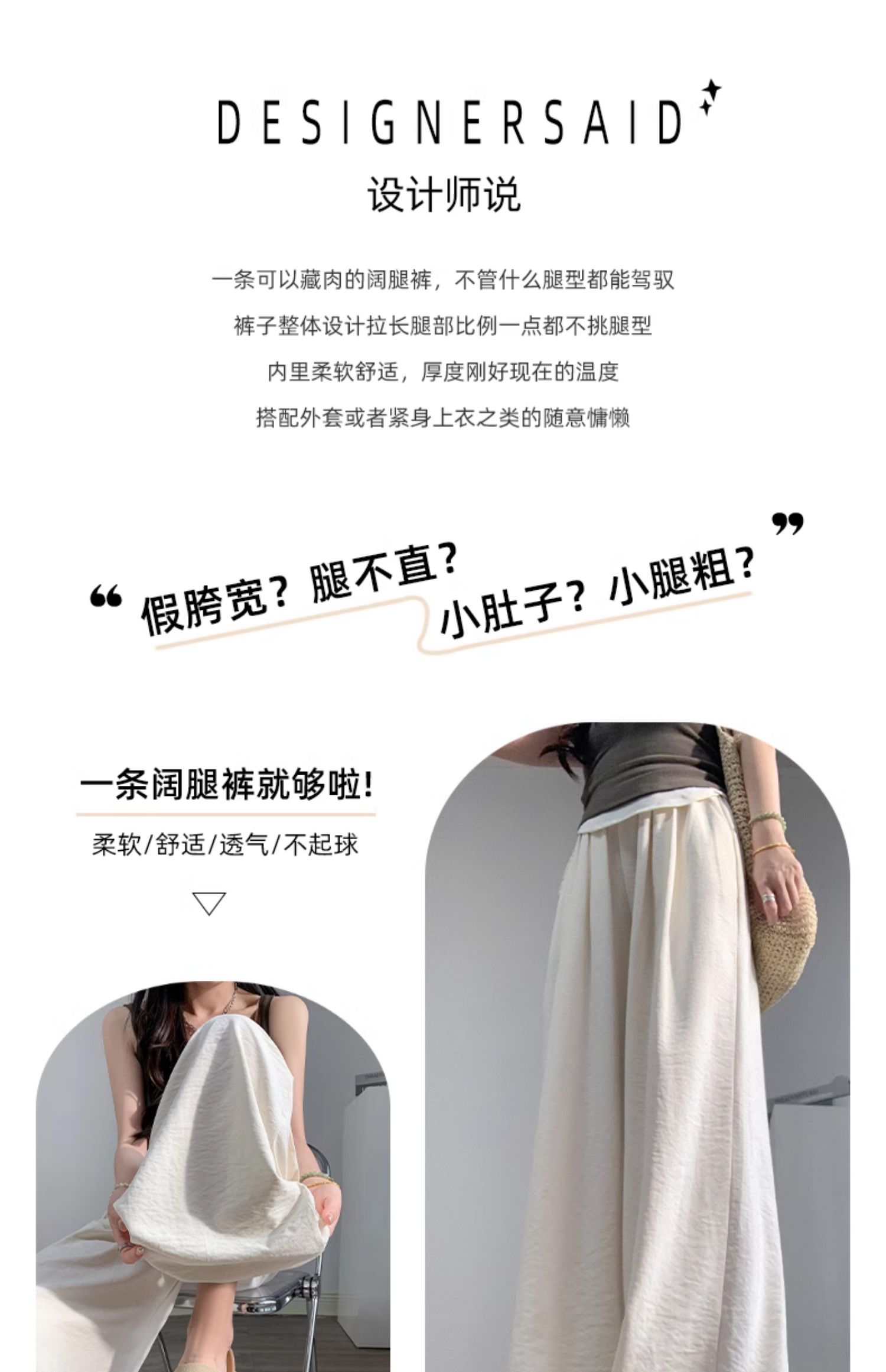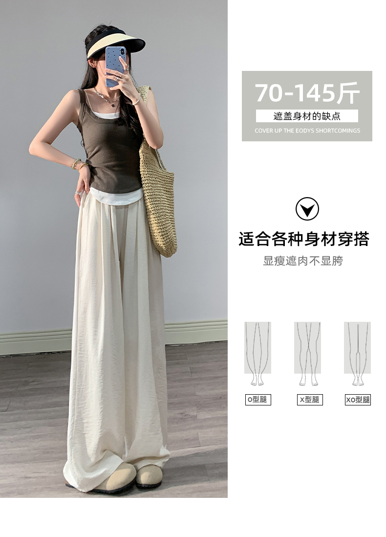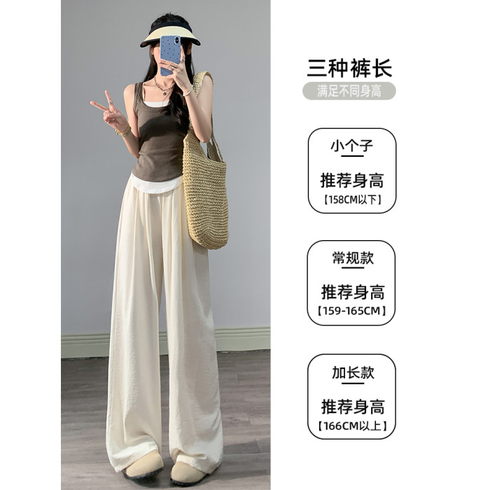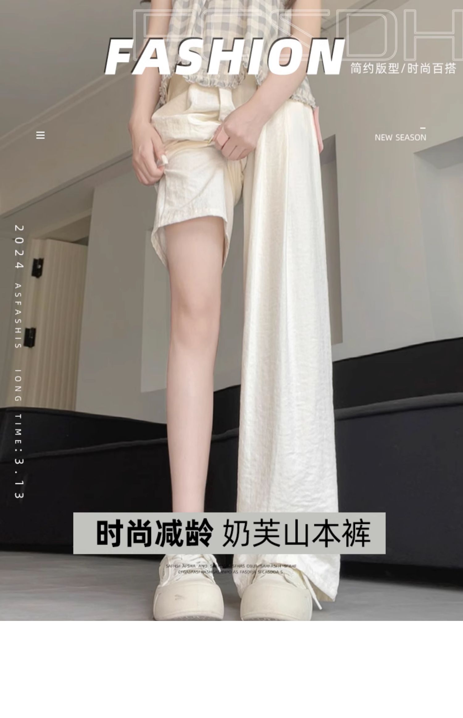 白色日系山本褲女秋季2025新款高腰小個子休閒奶芙冰絲薄款濶腿褲