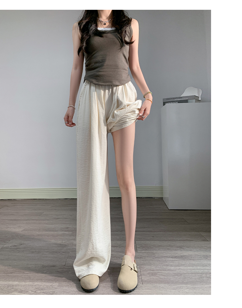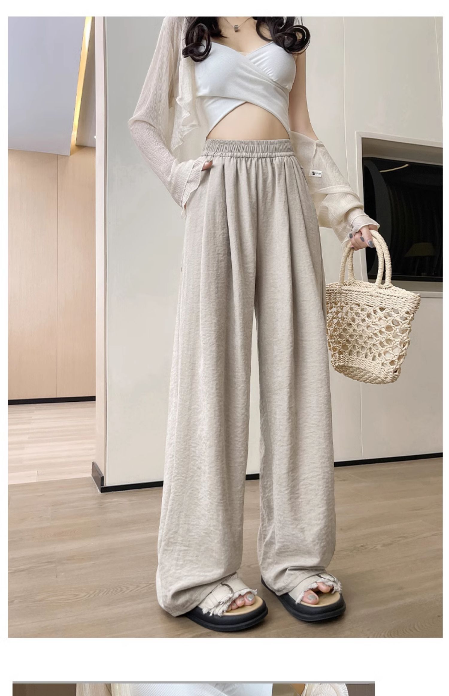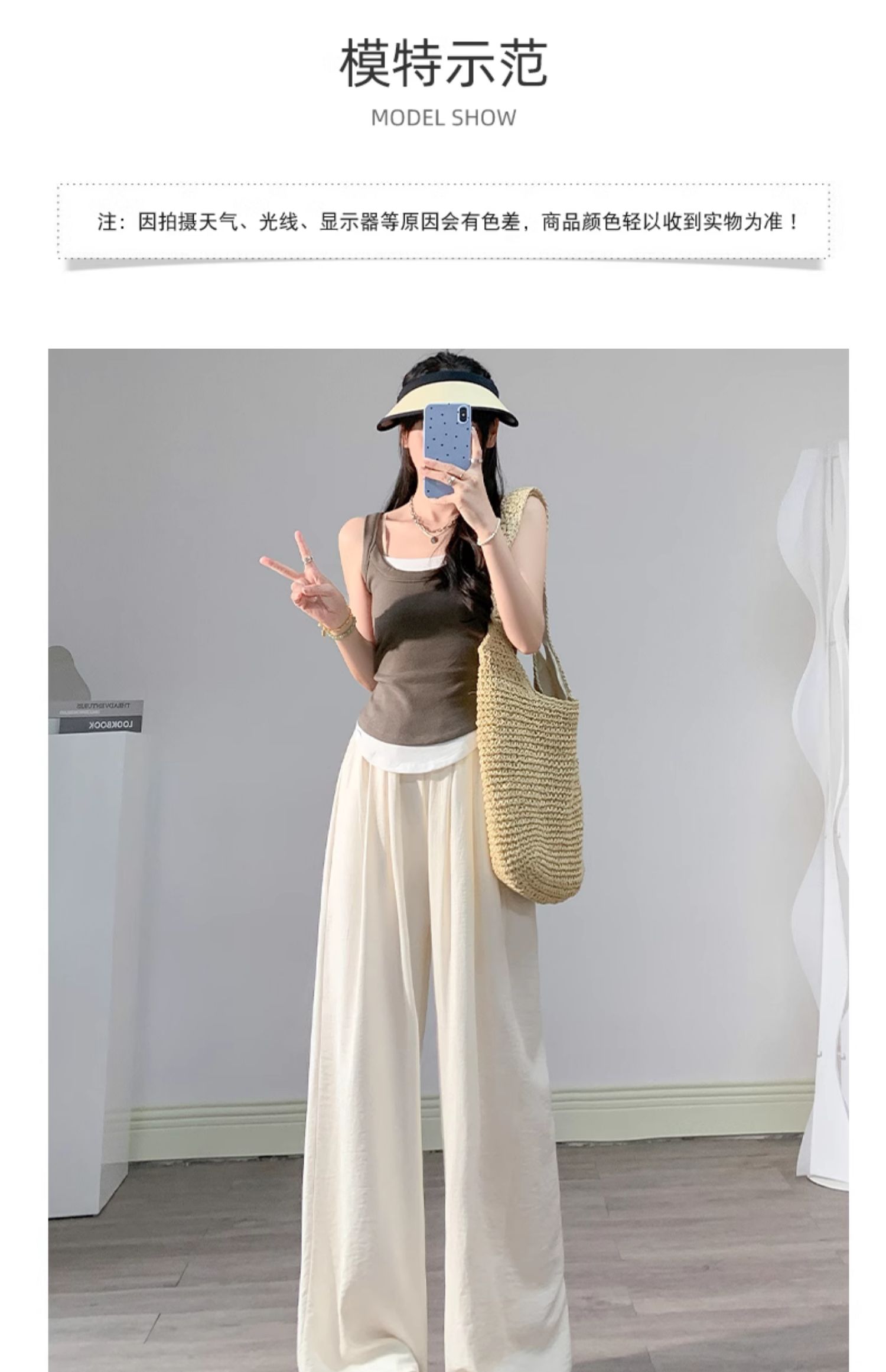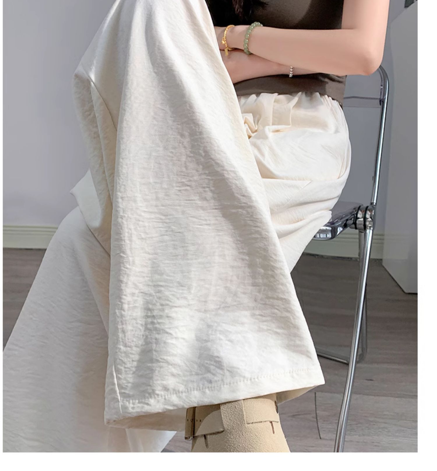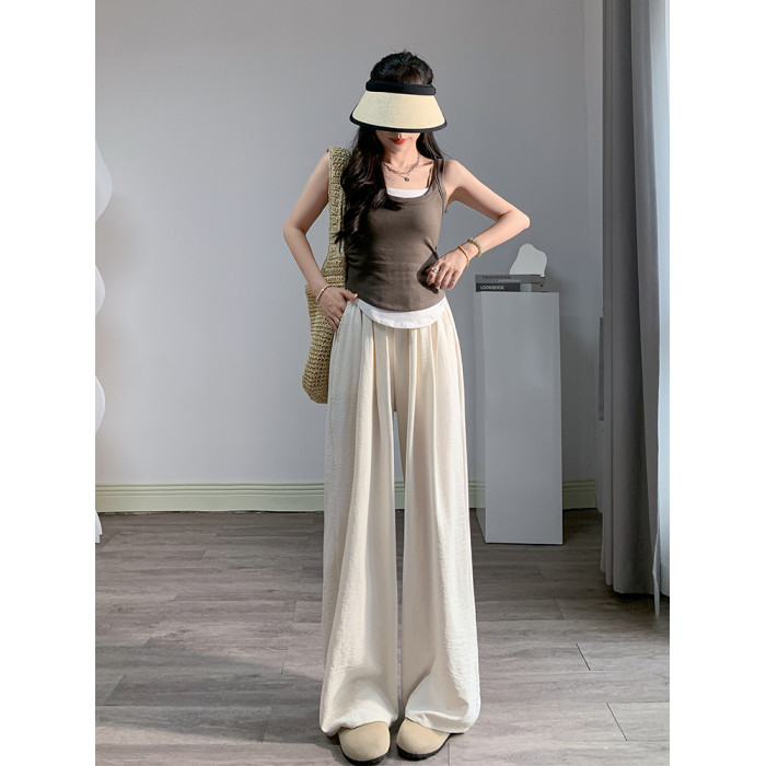 白色日系山本褲女秋季2025新款高腰小個子休閒奶芙冰絲薄款濶腿褲