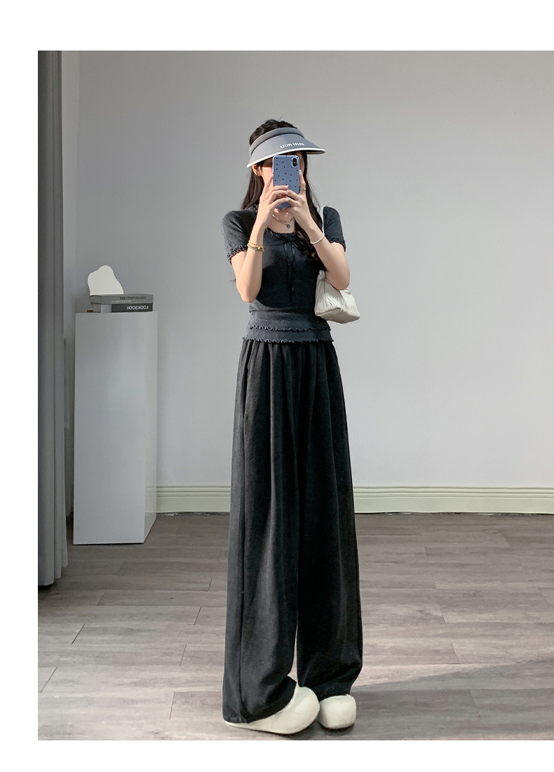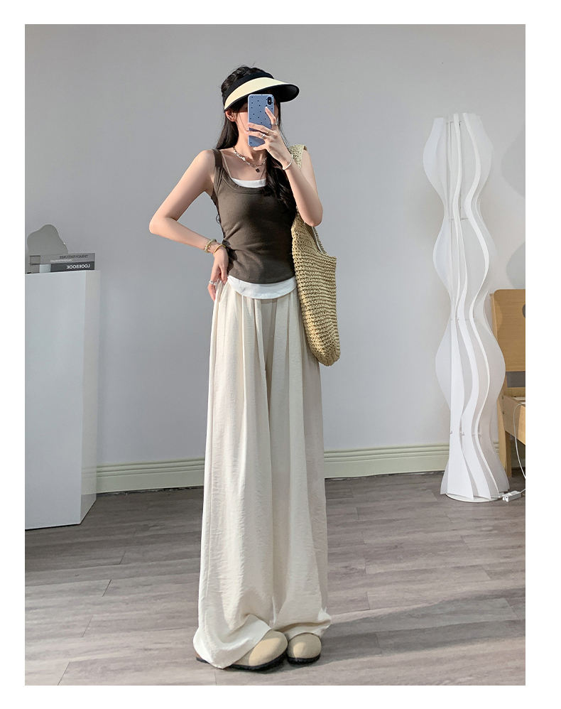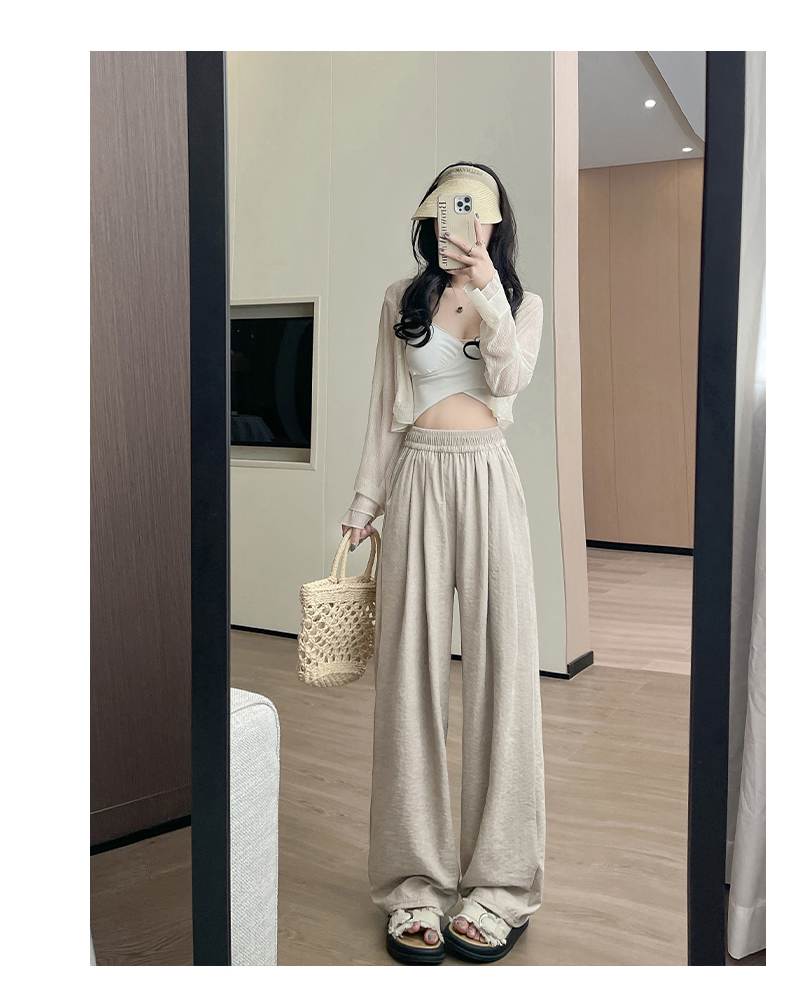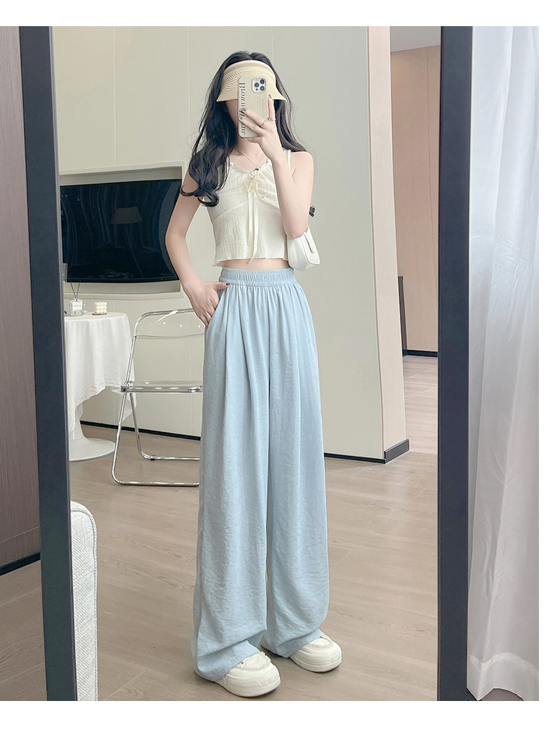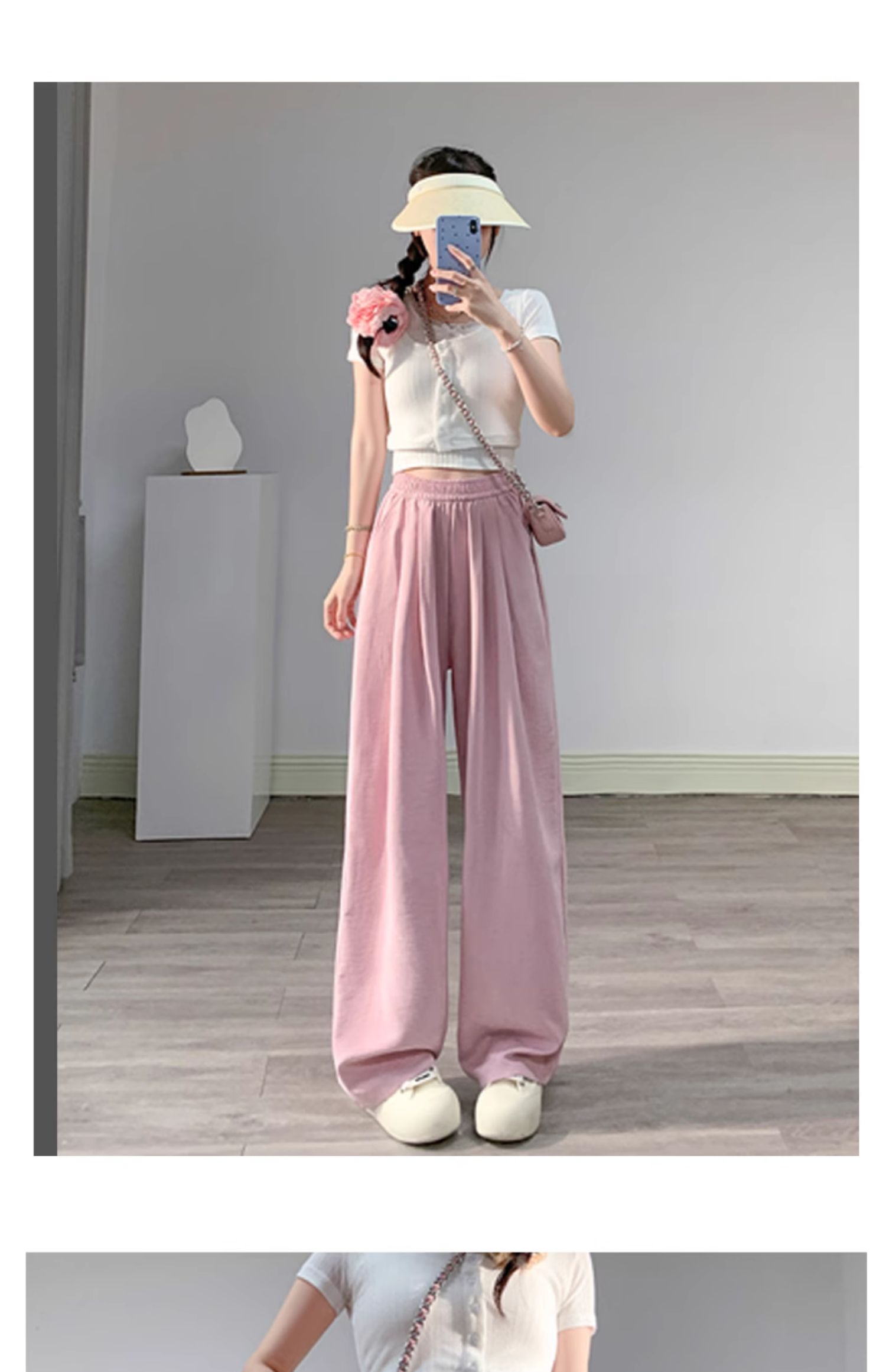 白色日系山本褲女秋季2025新款高腰小個子休閒奶芙冰絲薄款濶腿褲