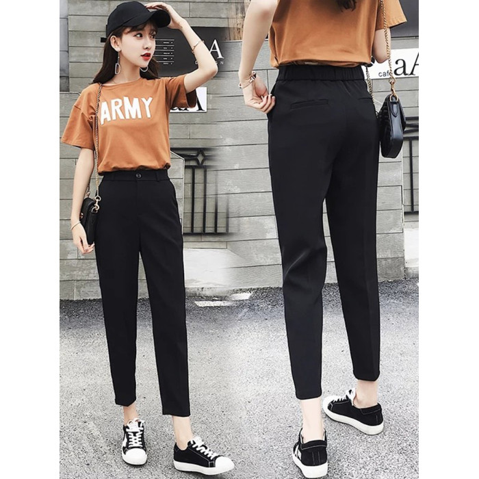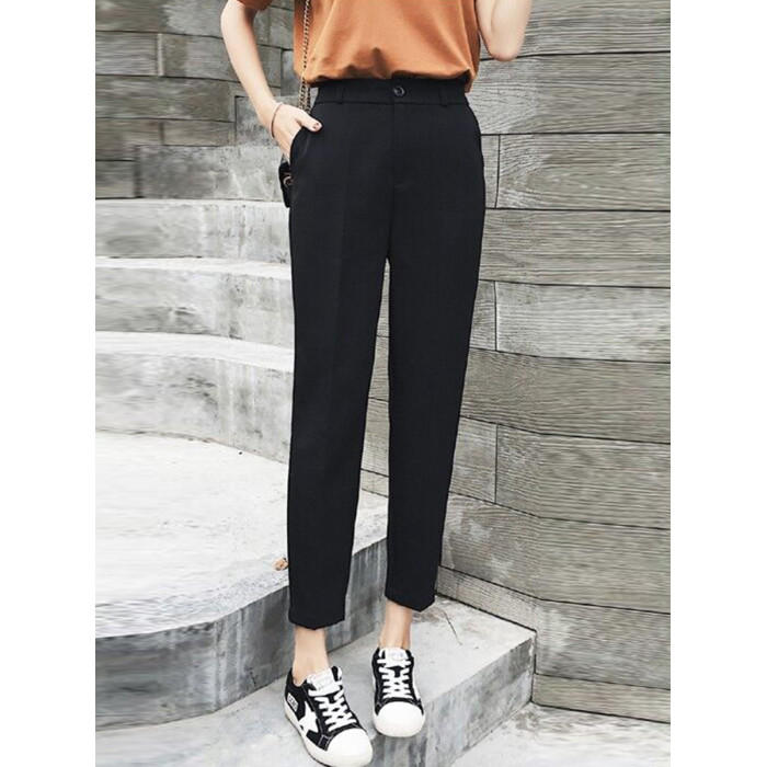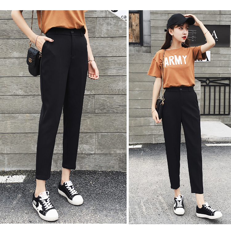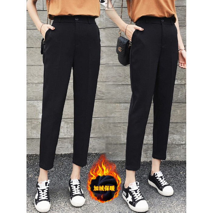 黑色西裝褲女2025秋冬加絨九分毛呢小個子菸管哈倫休閒西褲蘿蔔褲