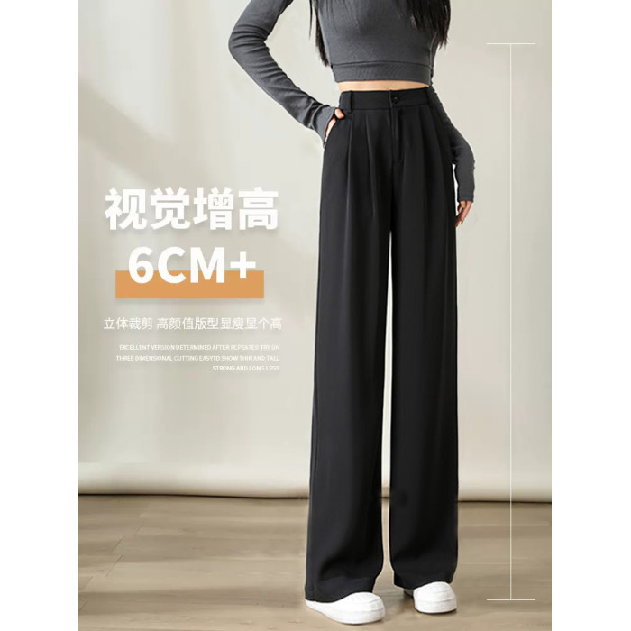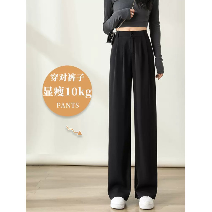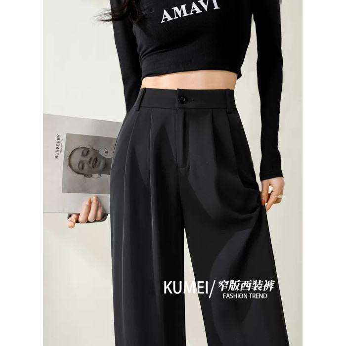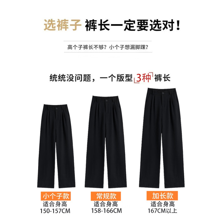 黑色窄版濶腿褲女春秋款高腰垂感直筒拖地褲夏季顯瘦小個子西裝褲
