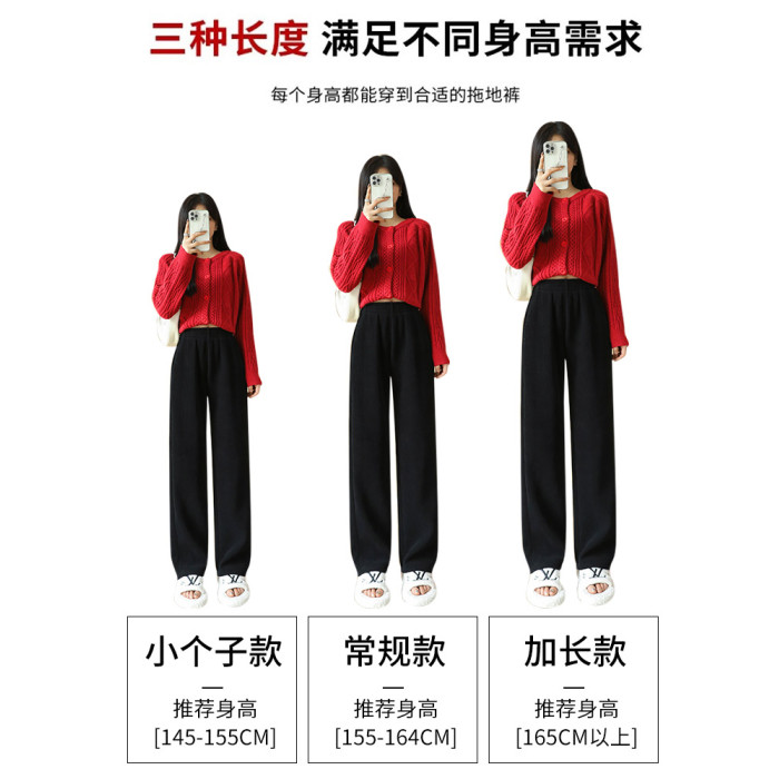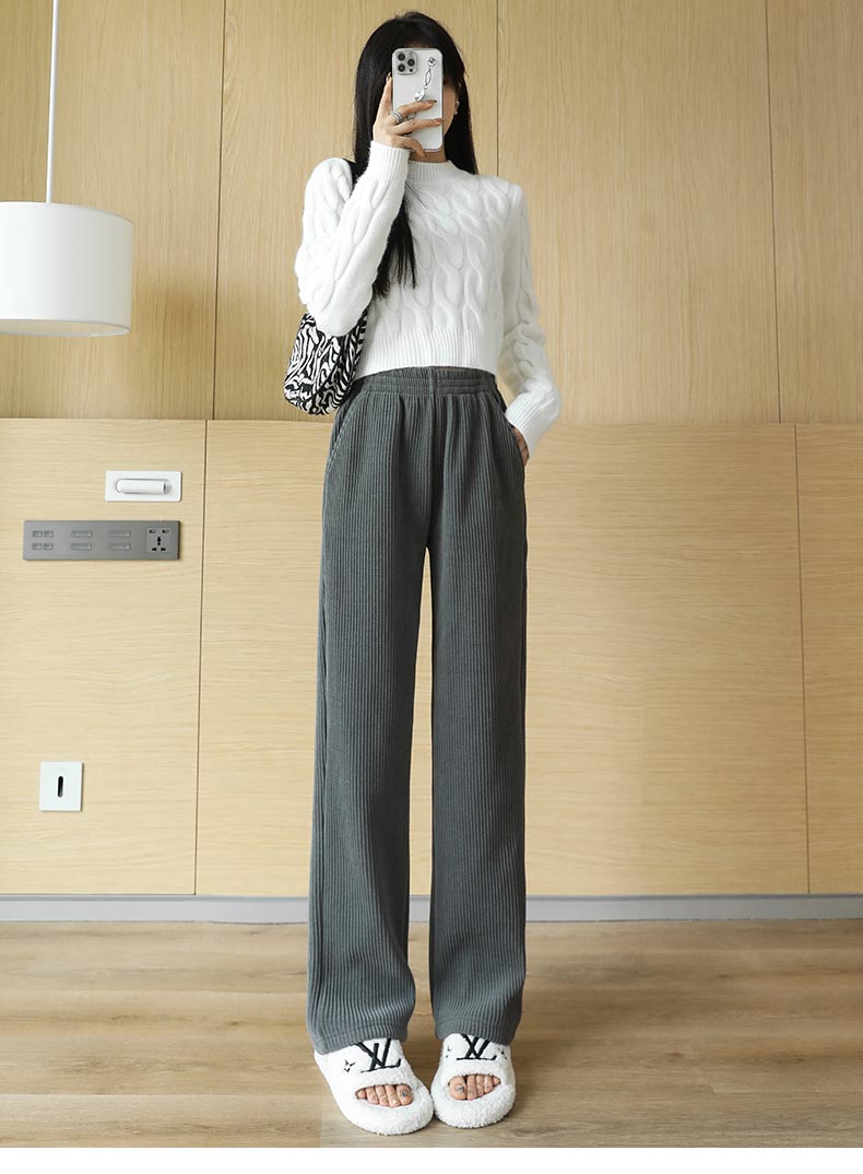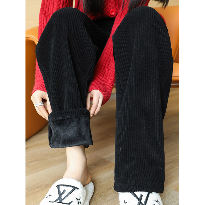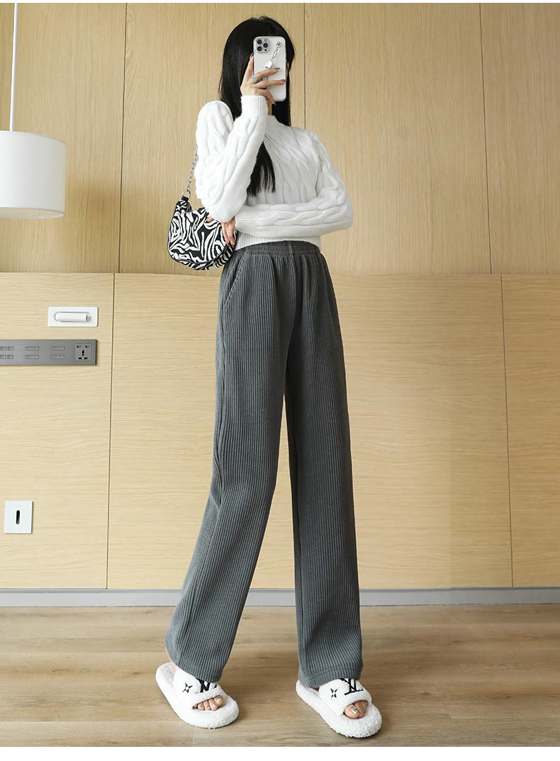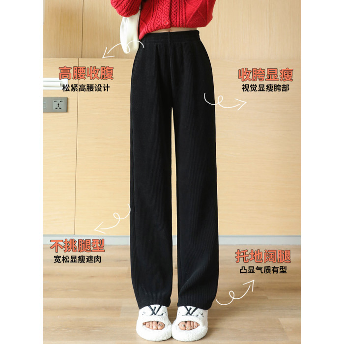 燈芯絨濶腿褲女秋冬季外穿小個子150高腰直筒雪尼爾加厚加絨褲子