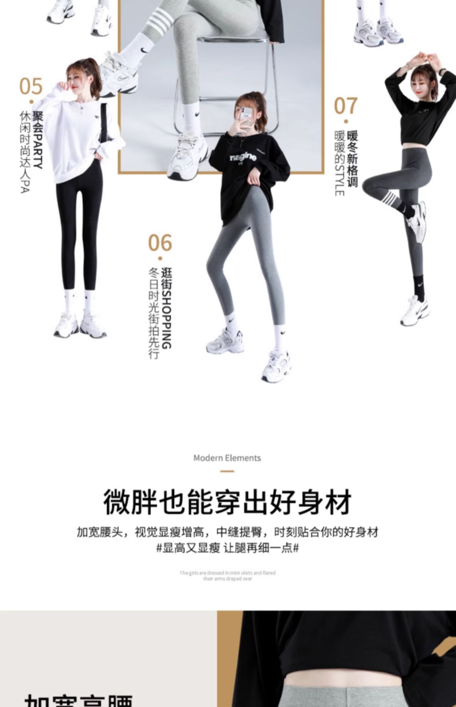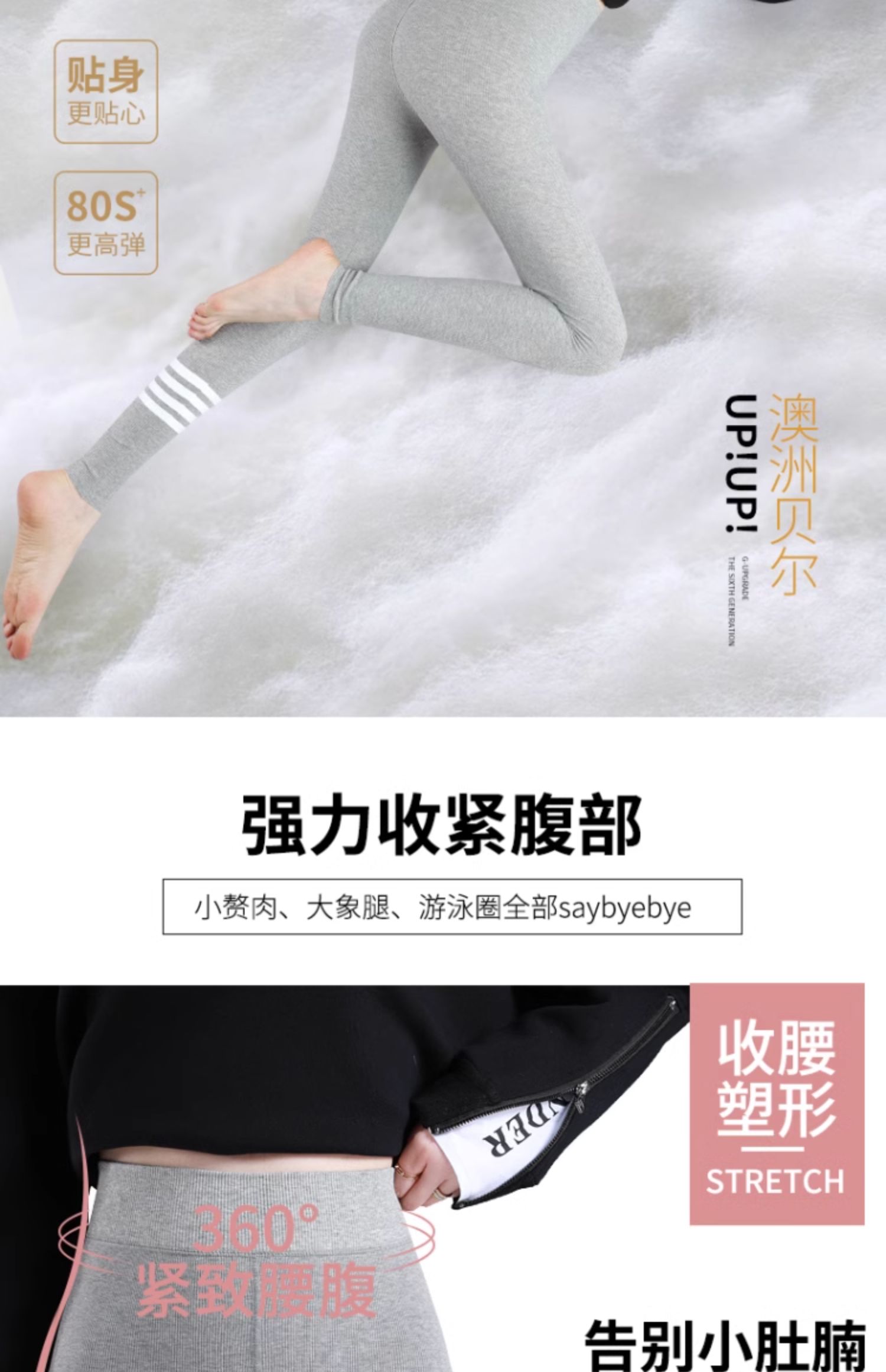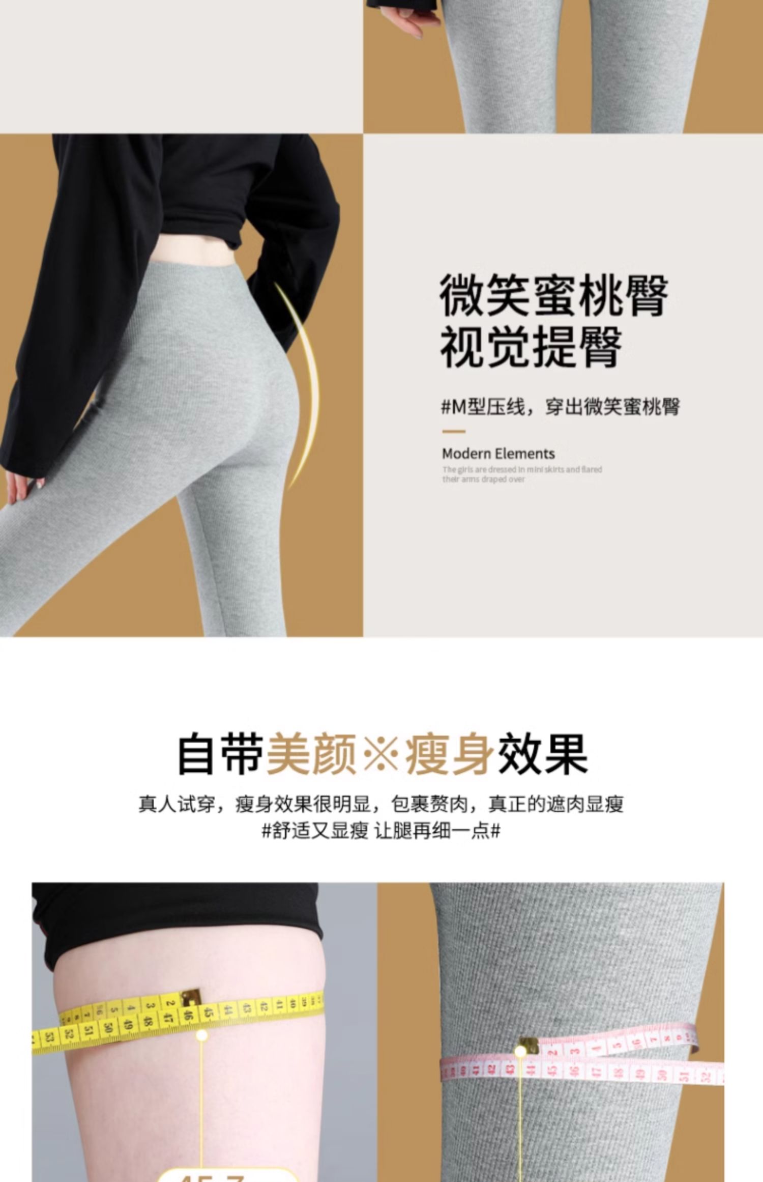 淺灰色打底褲女春秋冬季外穿針織加絨加厚緊身保暖純棉褲襪秋褲子