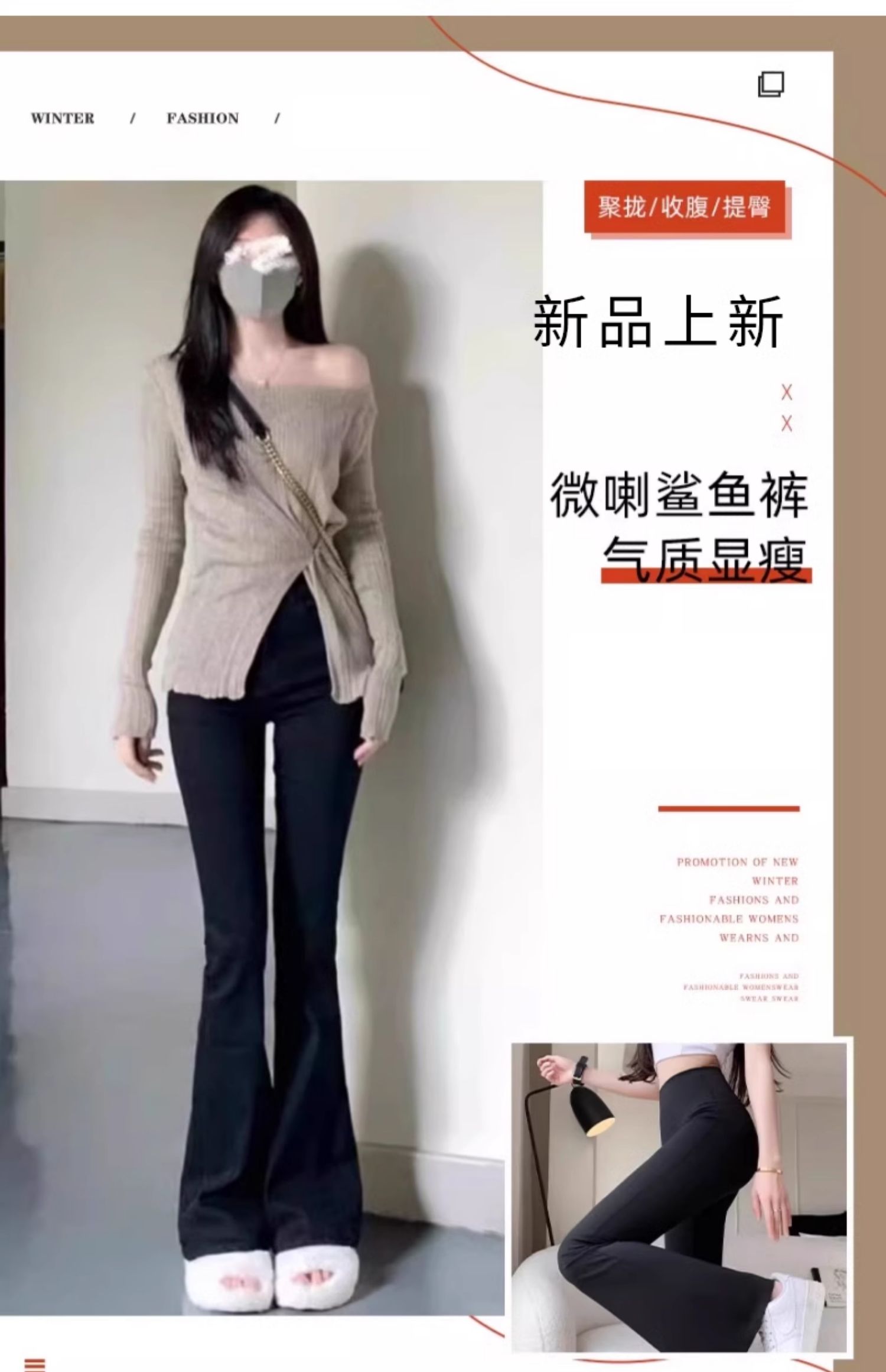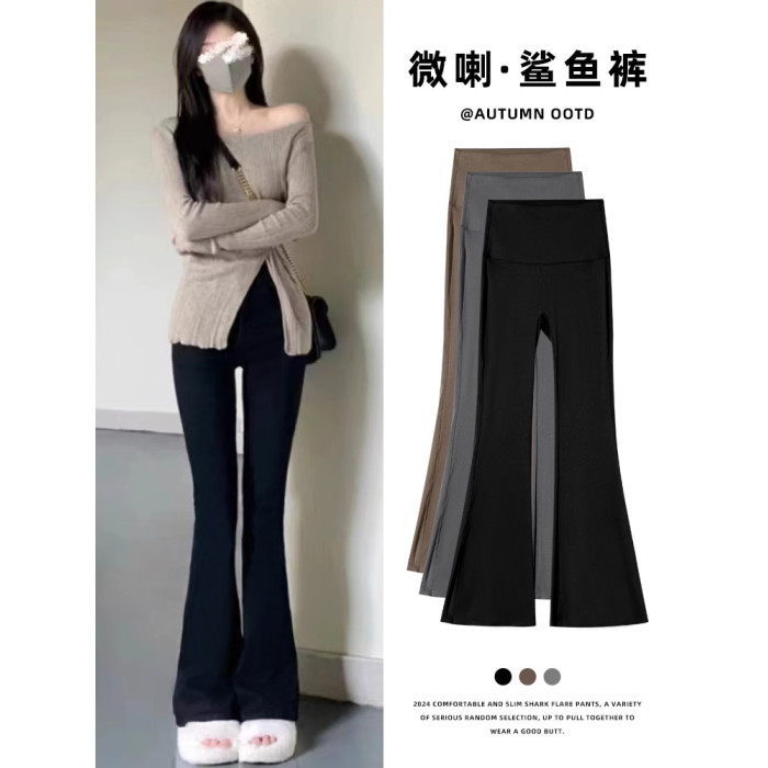 趙露絲同款微喇鯊魚褲女外穿加絨2025新款高腰顯瘦打底瑜珈喇叭褲