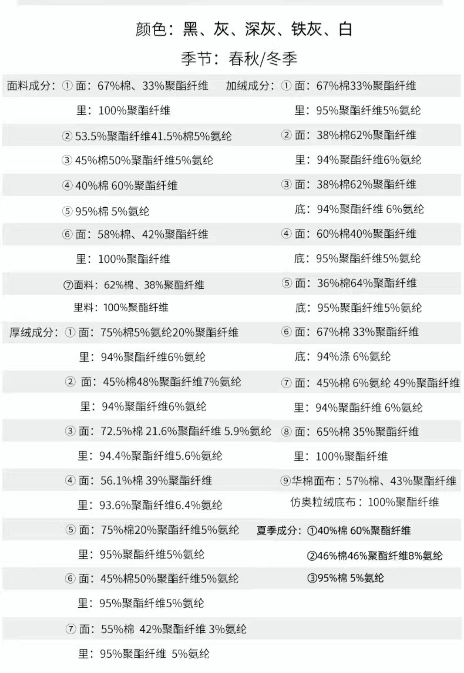 材質成分 棉75% 聚酯纖維20% 聚氨酯彈性纖維(氨綸)5%