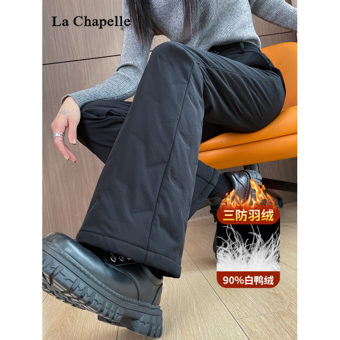 拉夏貝爾三防微喇羽絨褲女外穿冬季哈爾濱滑雪褲加厚防寒保暖棉褲