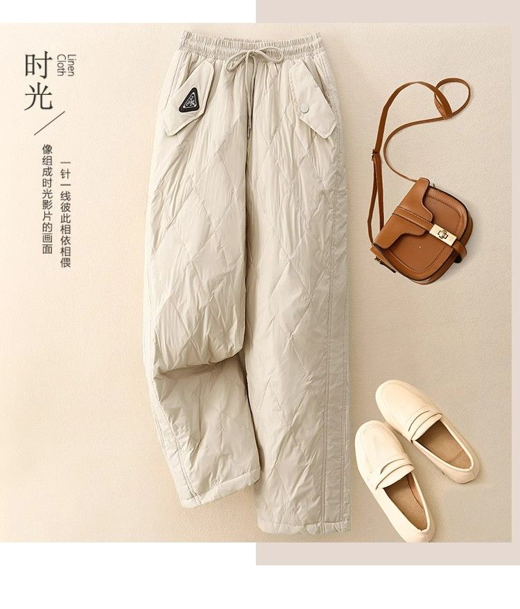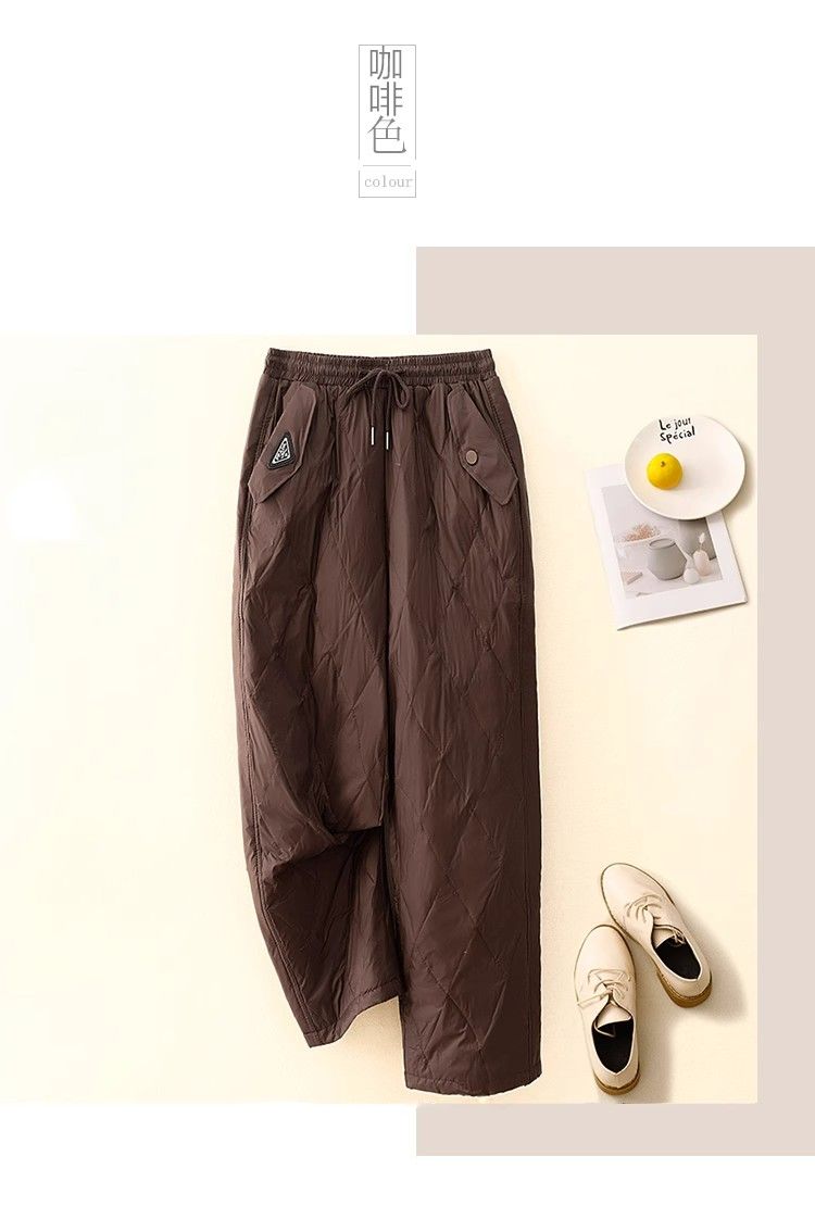 時尚輕便防風羽絨棉褲女士冬季新款高腰顯瘦洋氣休閒直筒加棉長褲