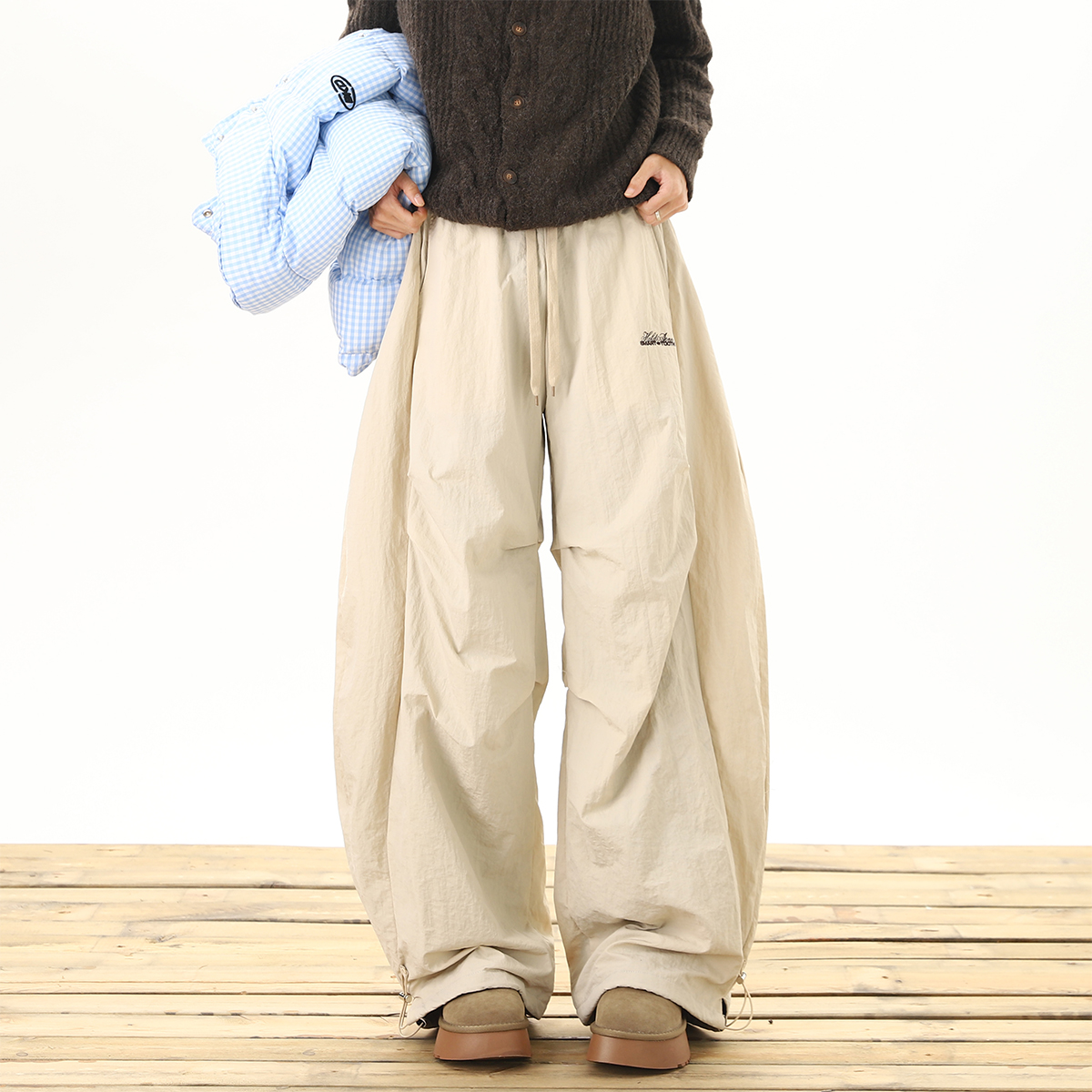 美式褶皺繖兵棉褲女男冬季夾棉加厚保暖沖鋒褲防風防寒濶腿彎刀褲