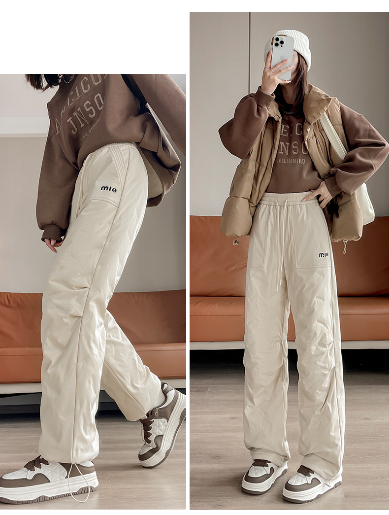 白鴨絨窄版羽絨褲女冬季外穿防寒加厚保暖哈爾濱滑雪防風工裝棉褲